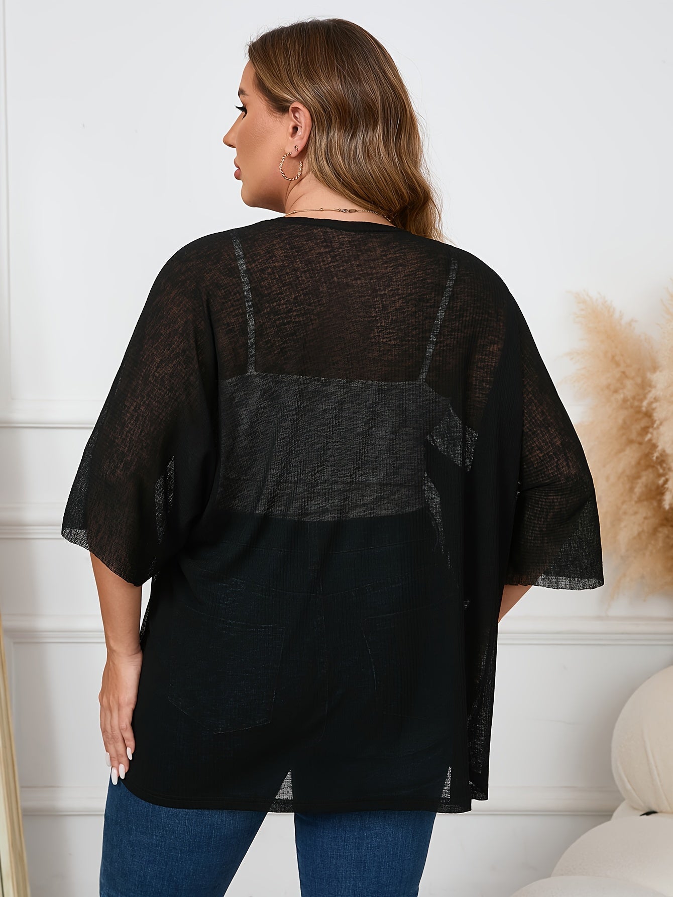 Кимоно с полупрозрачным открытым передом и рукавами батигвин для полных размеров, весна-лето