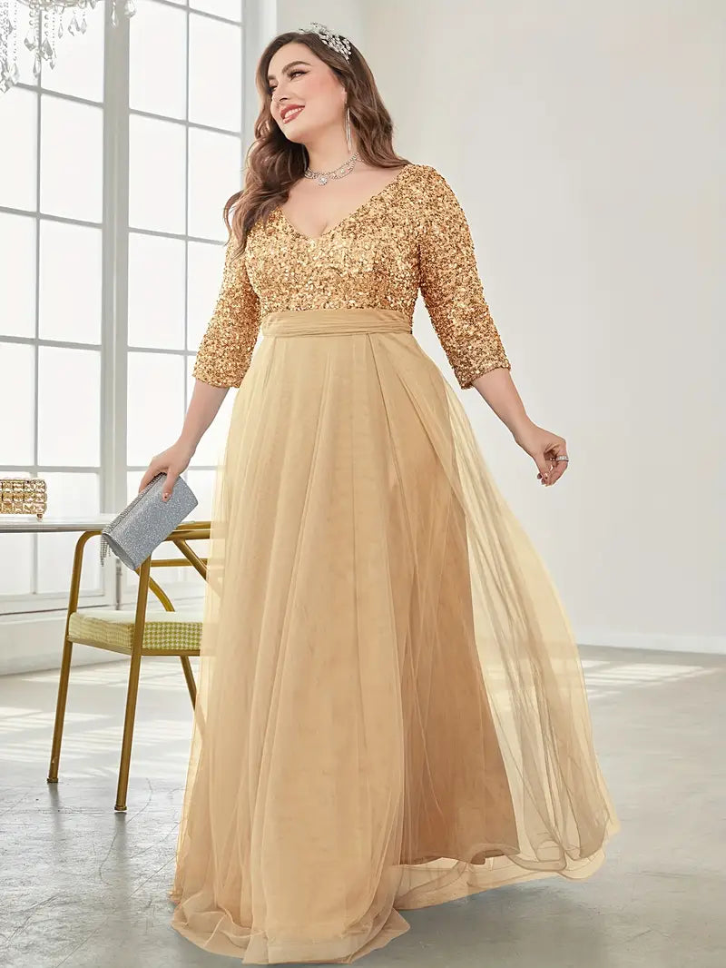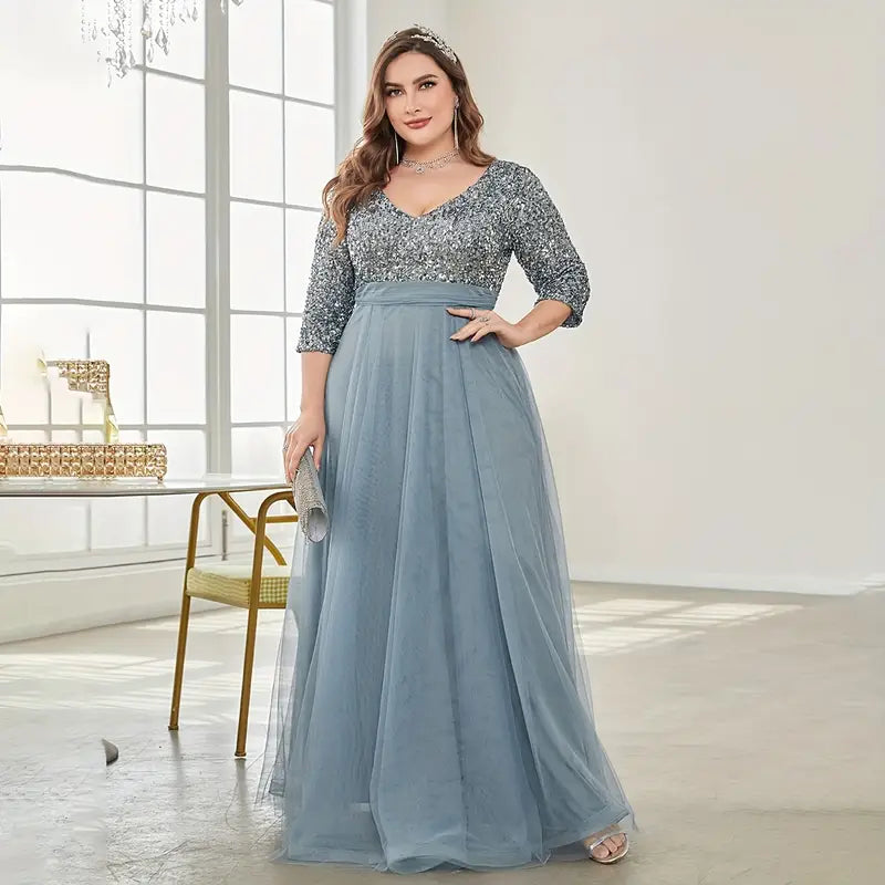 Plus Size Sequin Stitching Wedding Bridesmaid Long Dress Tulle Skirt