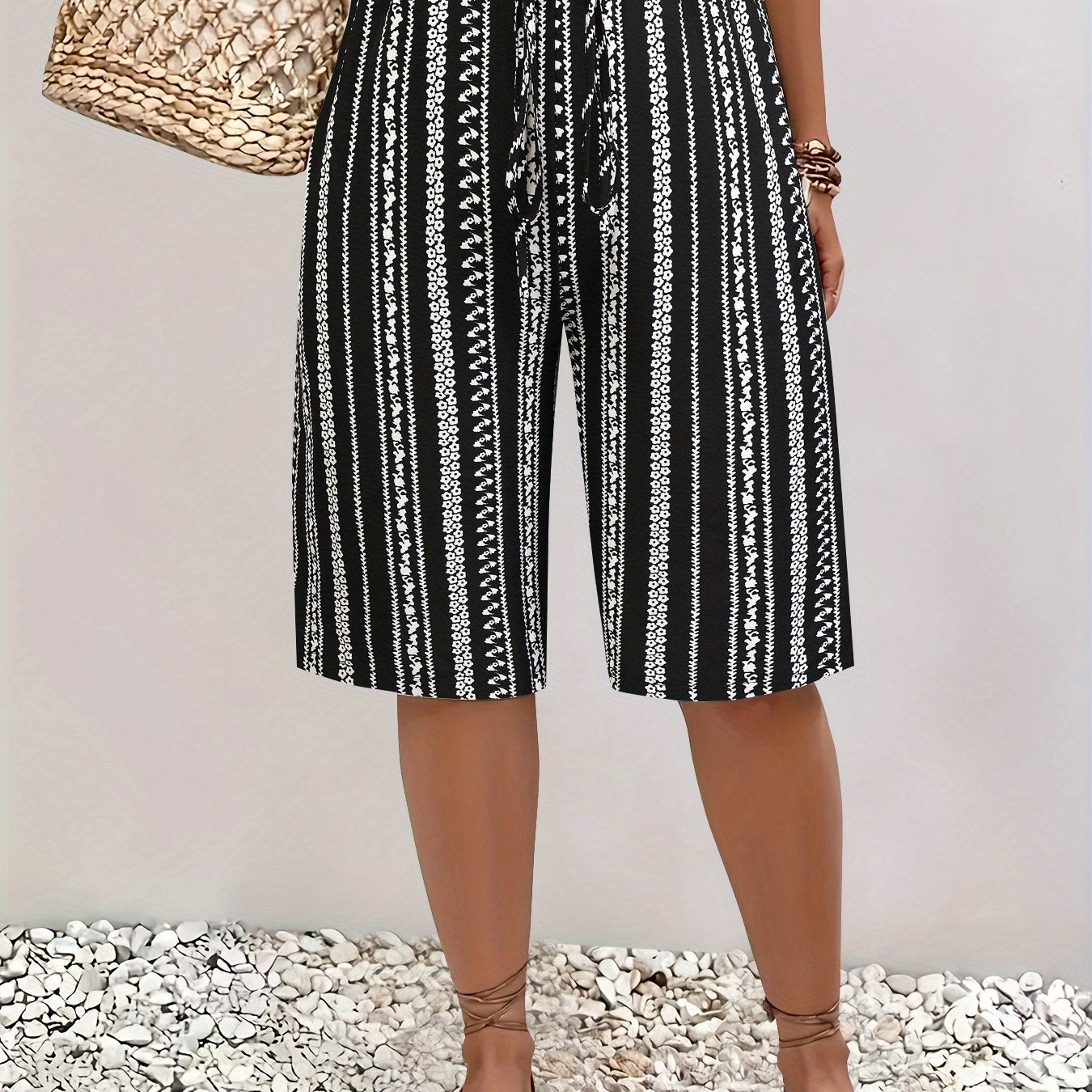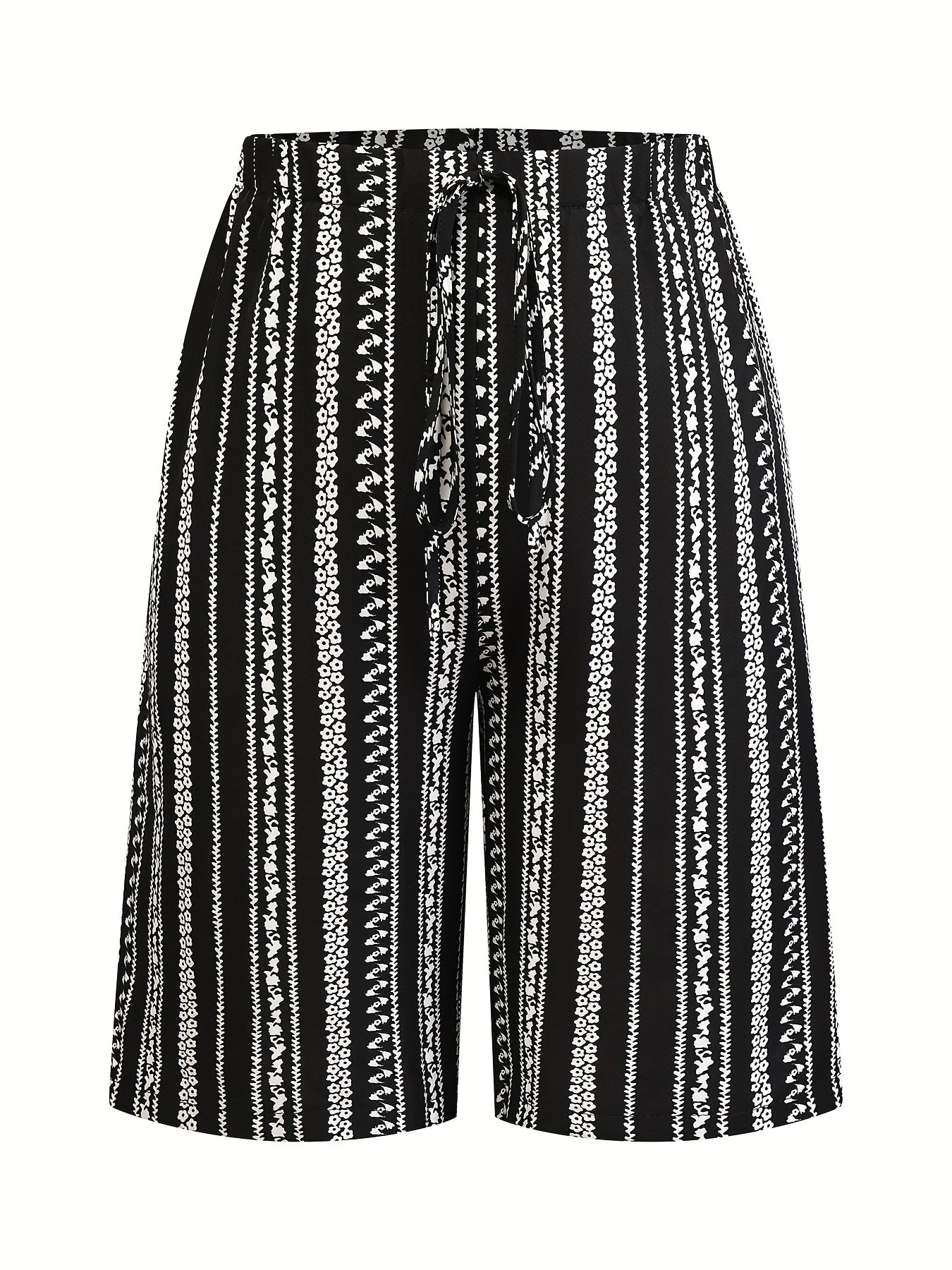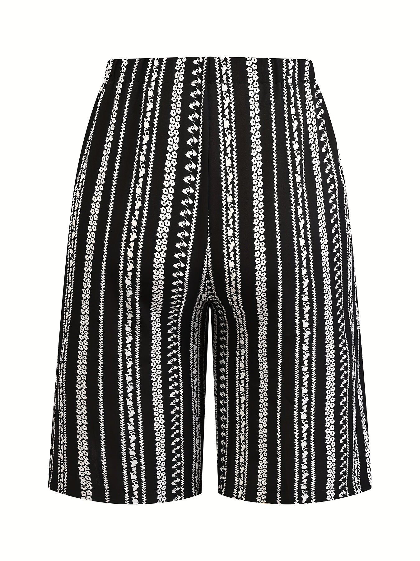 Шорты для женщин больших размеров с черно-белым геометрическим принтом, повседневные, средней длины