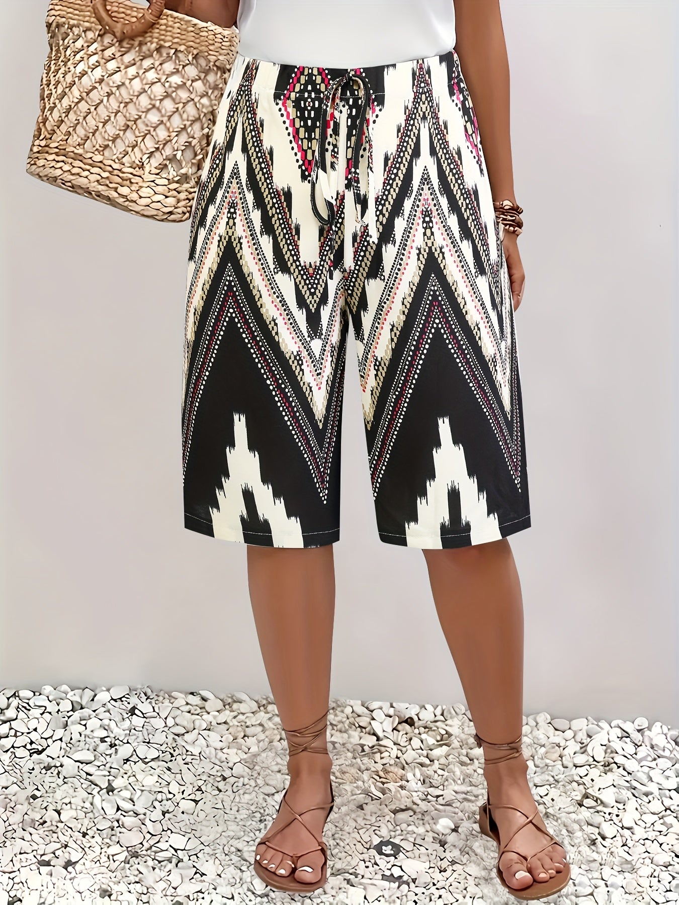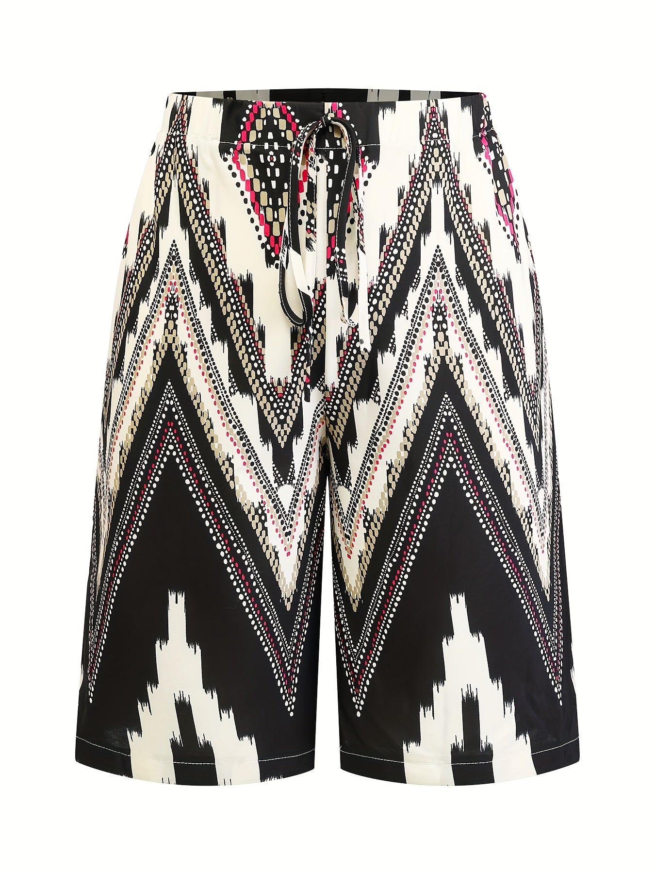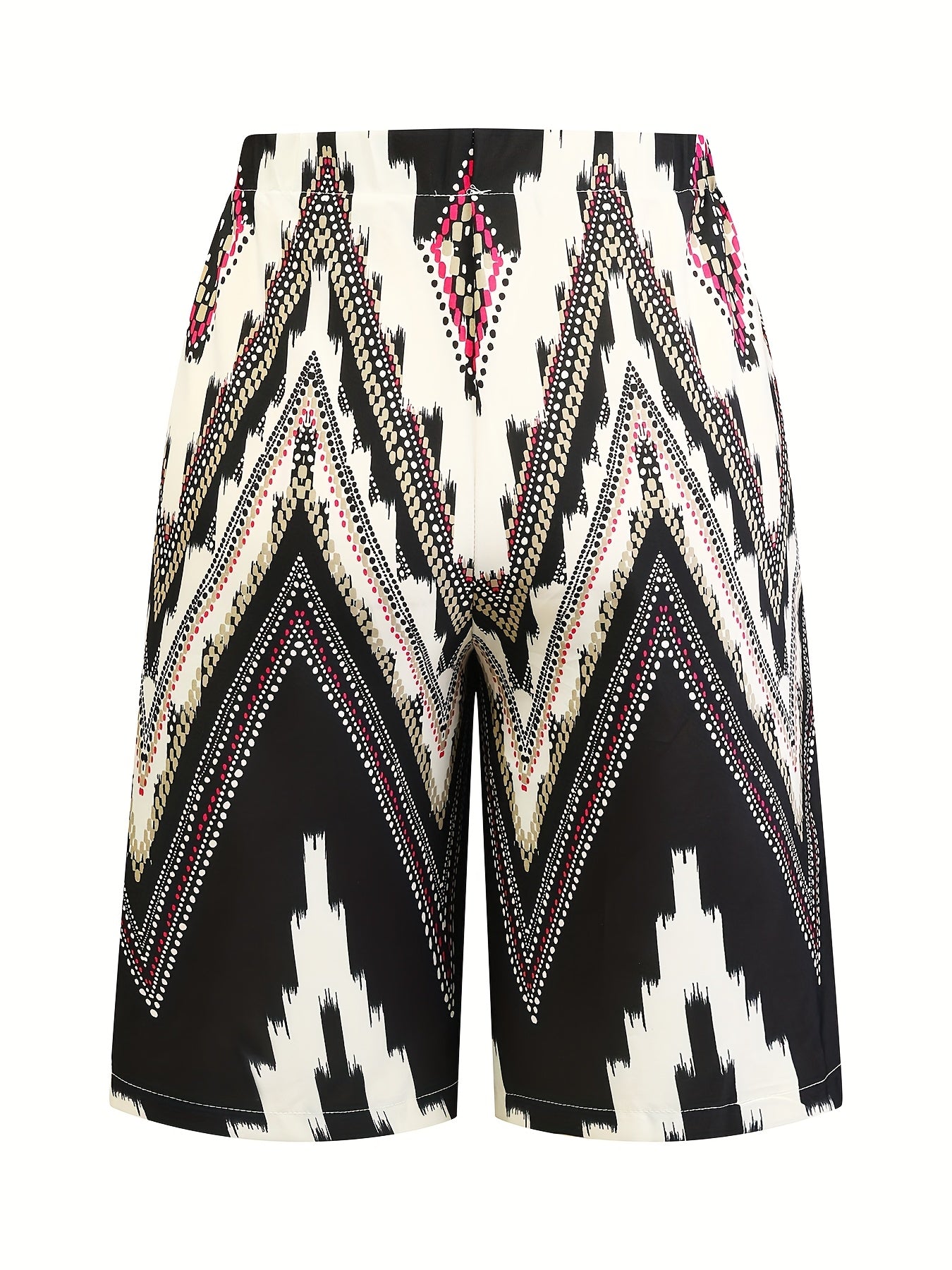Брюки для женщин больших размеров повседневные средней длины с цветными блоками и геометрическим принтом