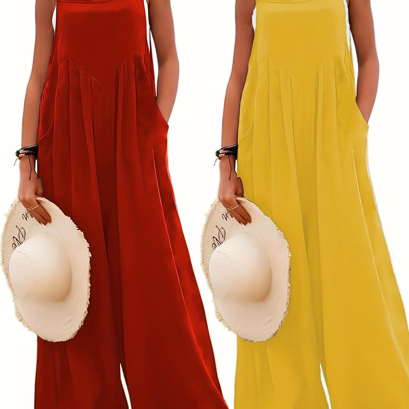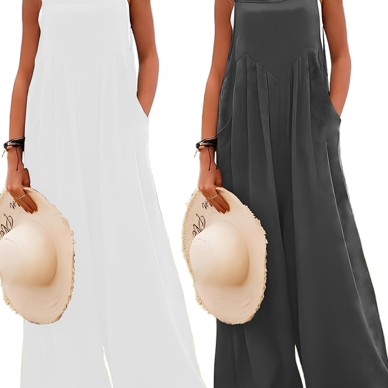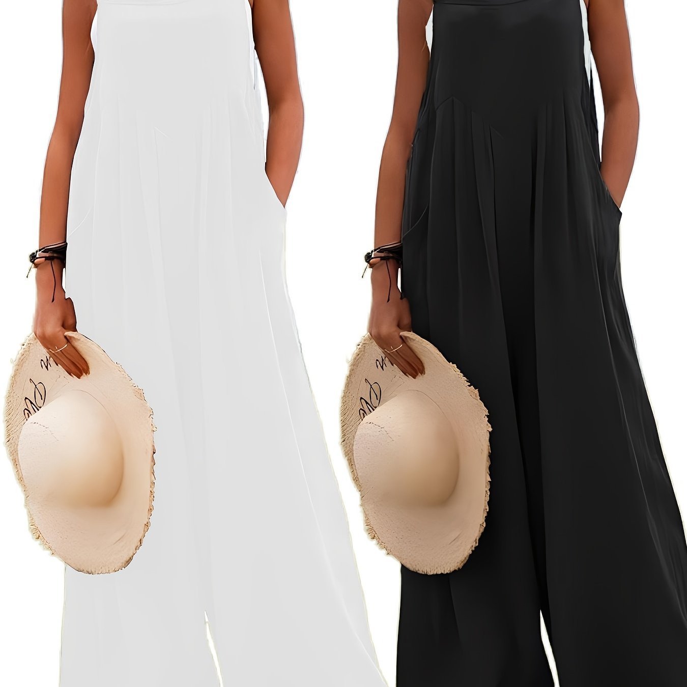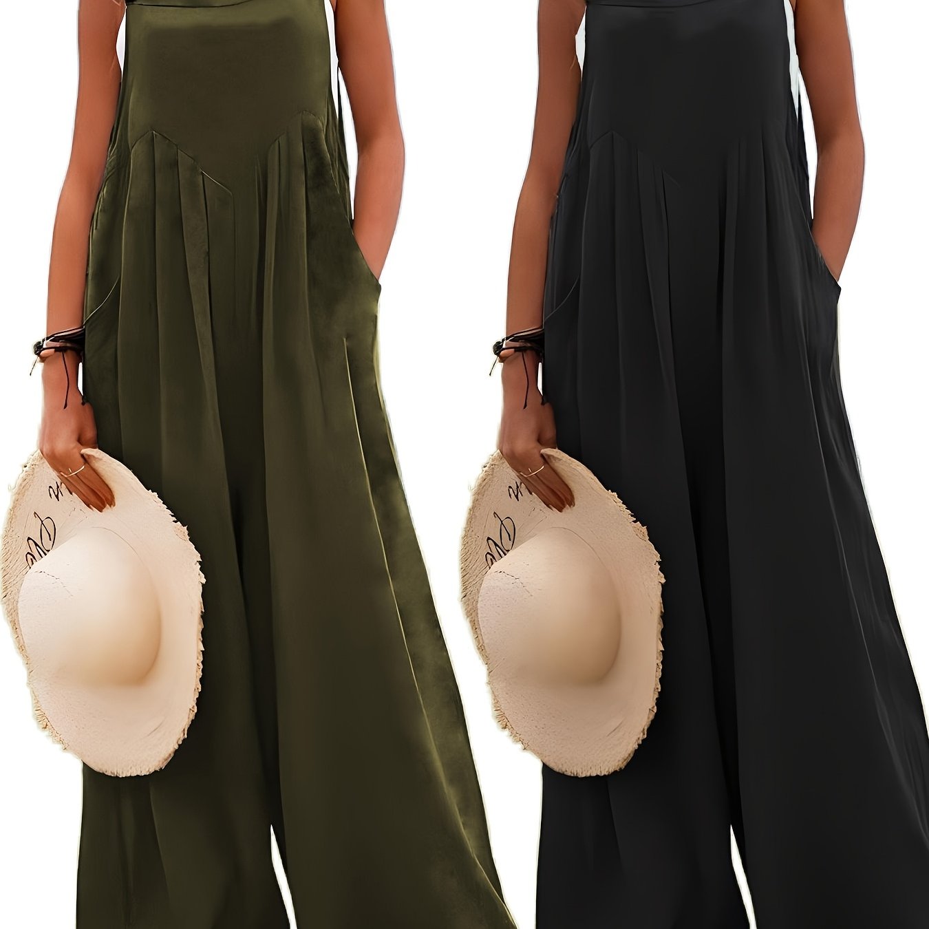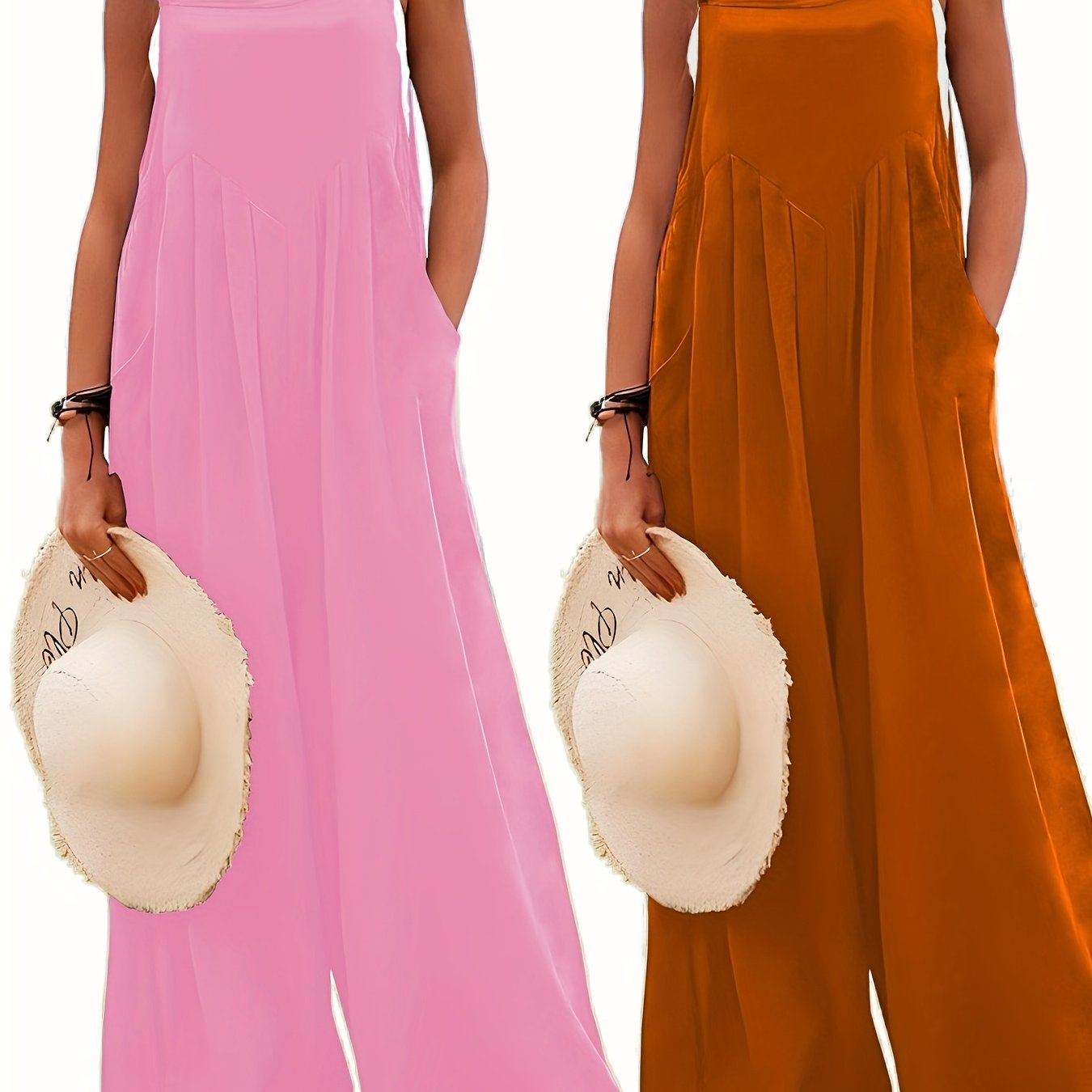Костюм-комбинезон для женщин больших размеров на лето без рукавов с карманами