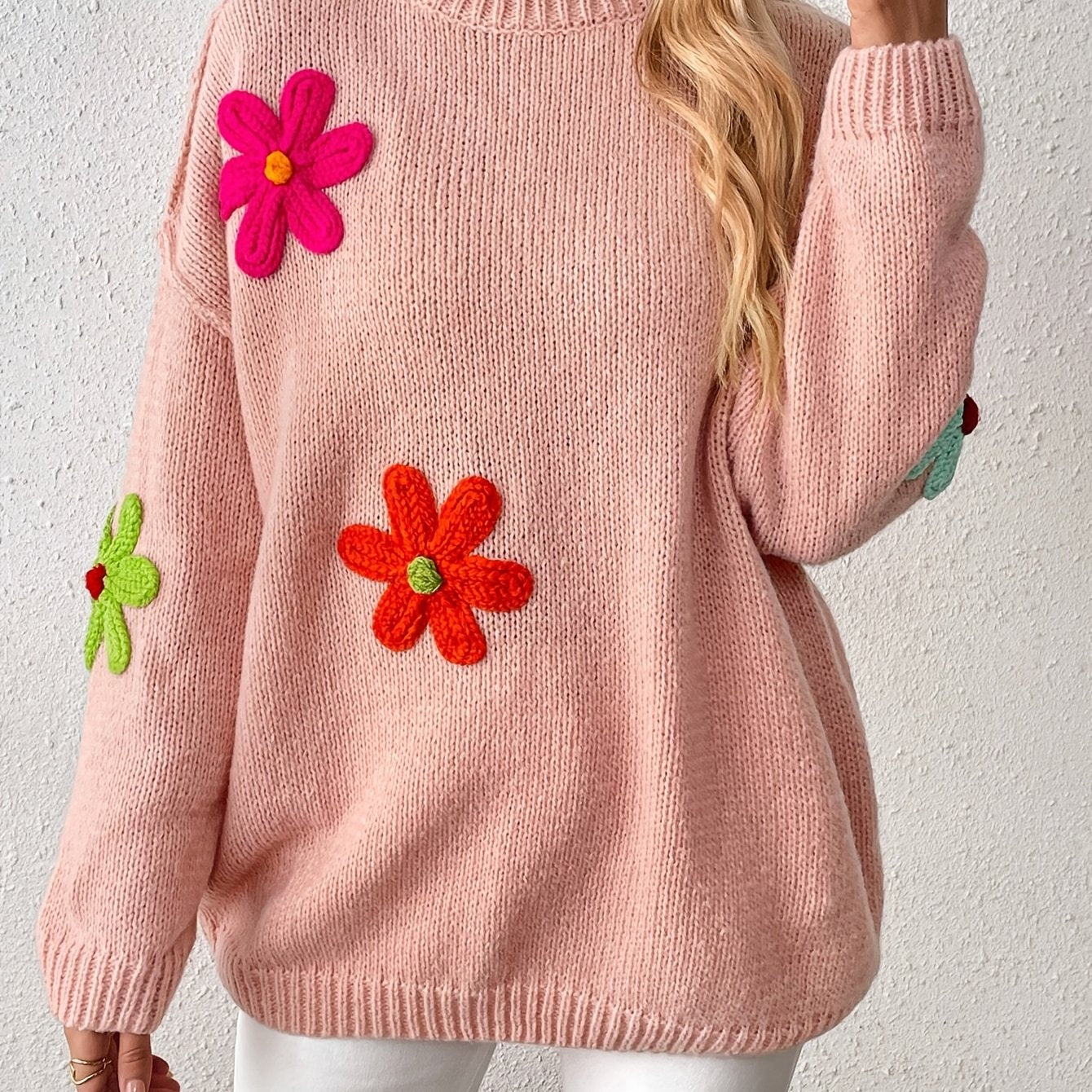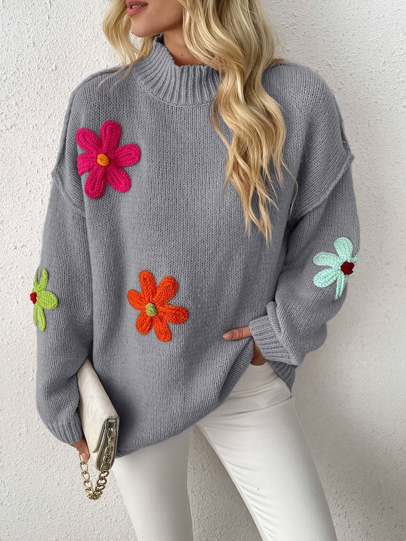 Plus Size Women's Color Block Sweater Asymmetrical Round Neck Pullover