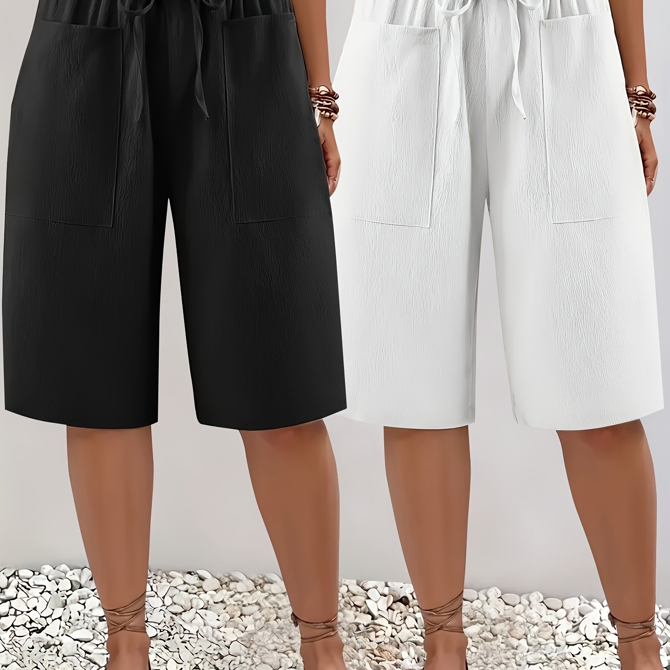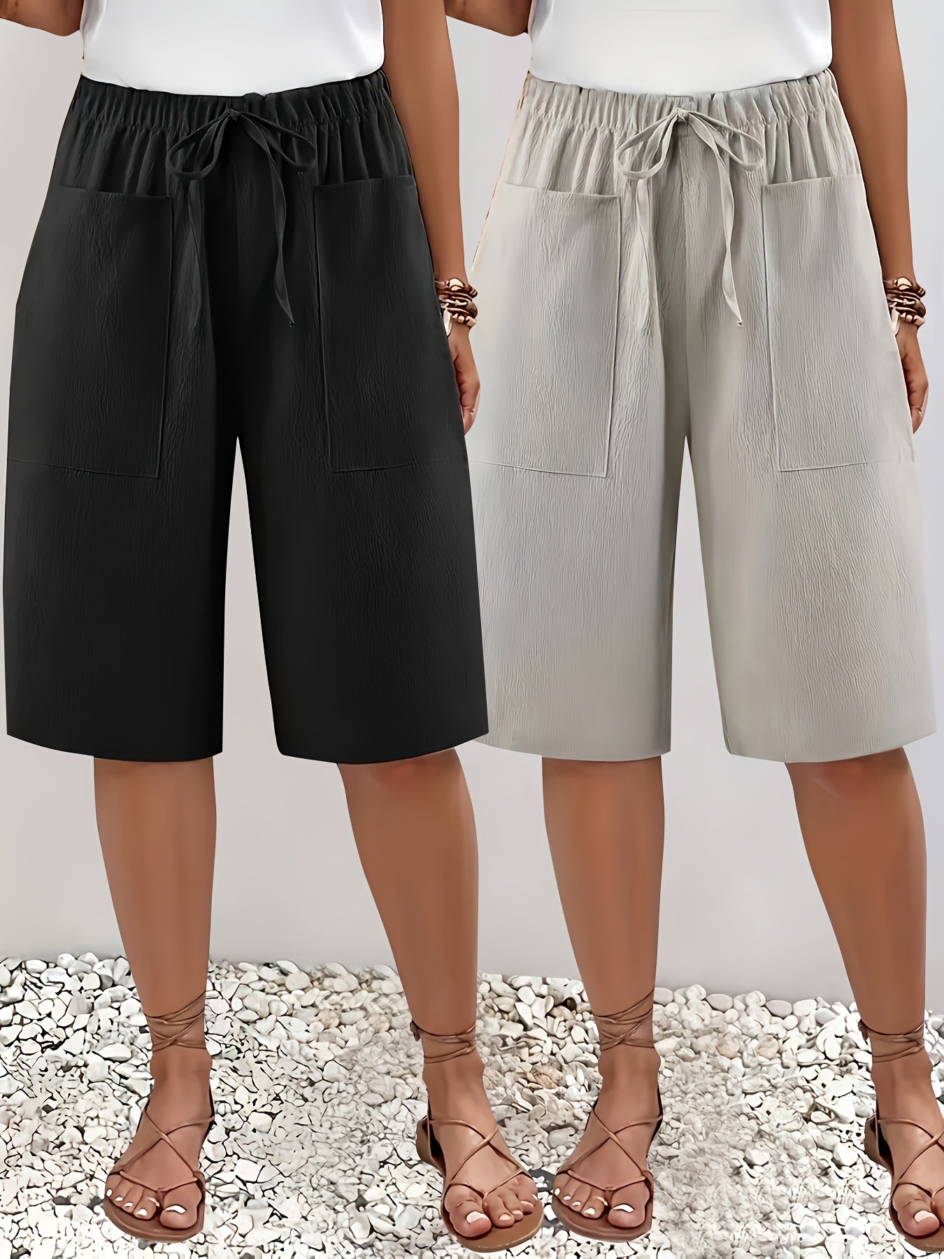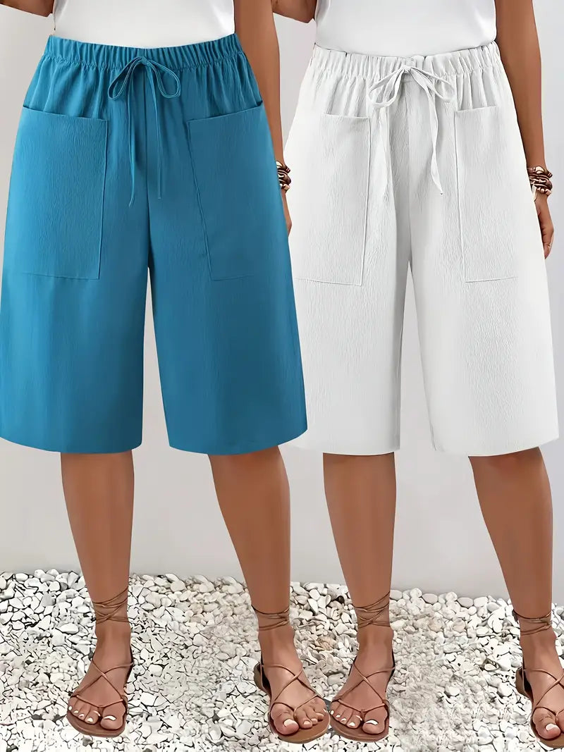 Комплект из двух предметов: укороченные брюки с карманами и шнуровкой из хлопка для женщин plus size