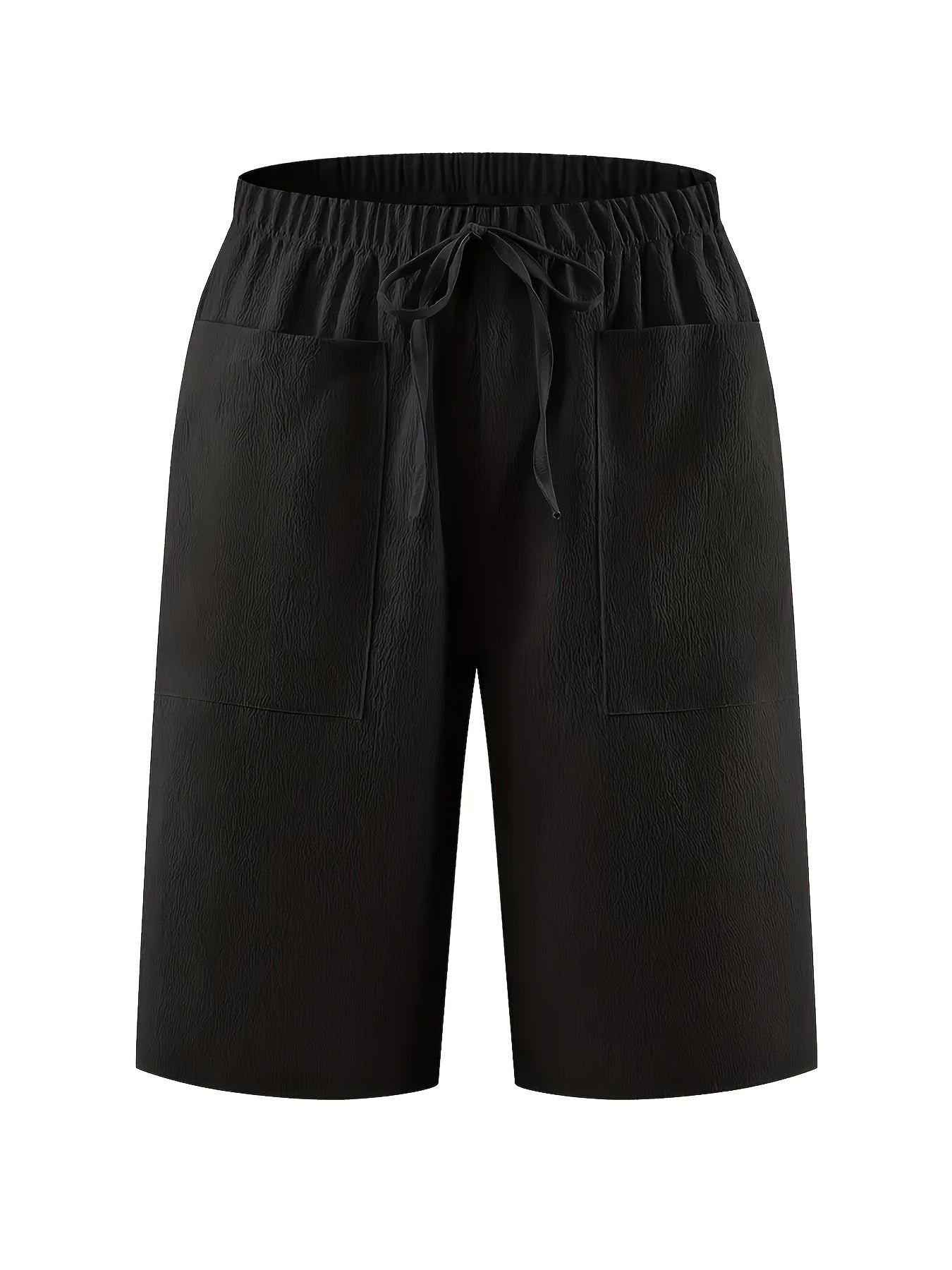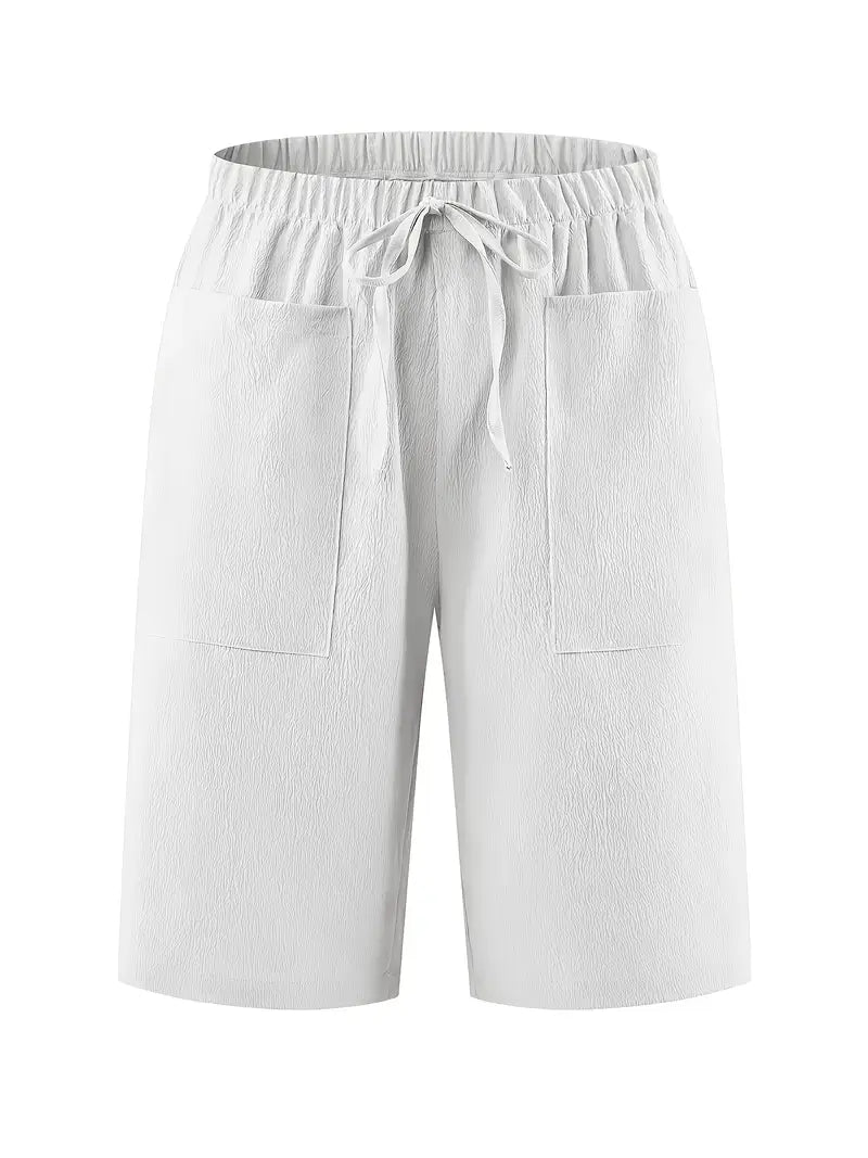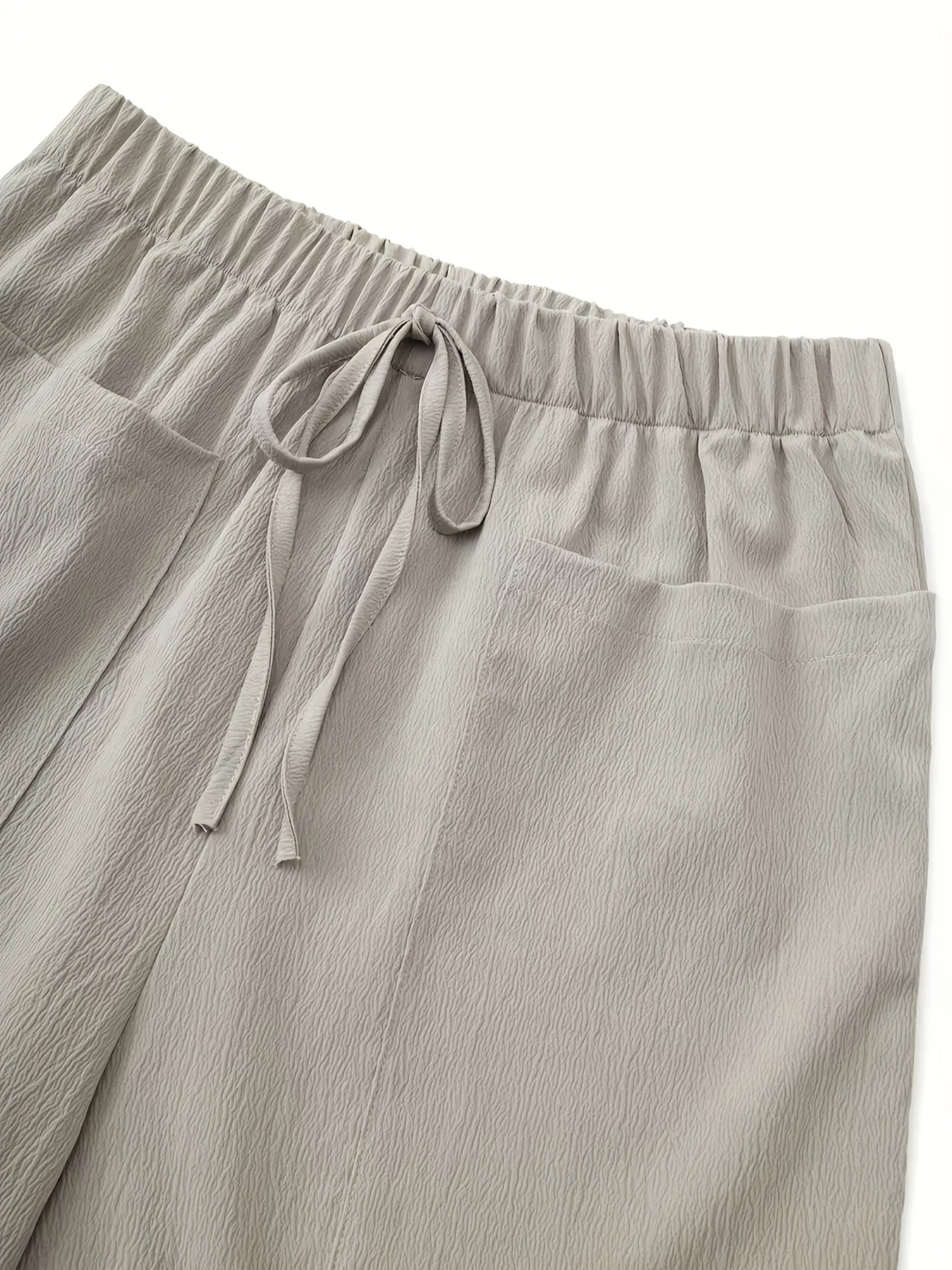 Комплект из двух предметов: укороченные брюки с карманами и шнуровкой из хлопка для женщин plus size