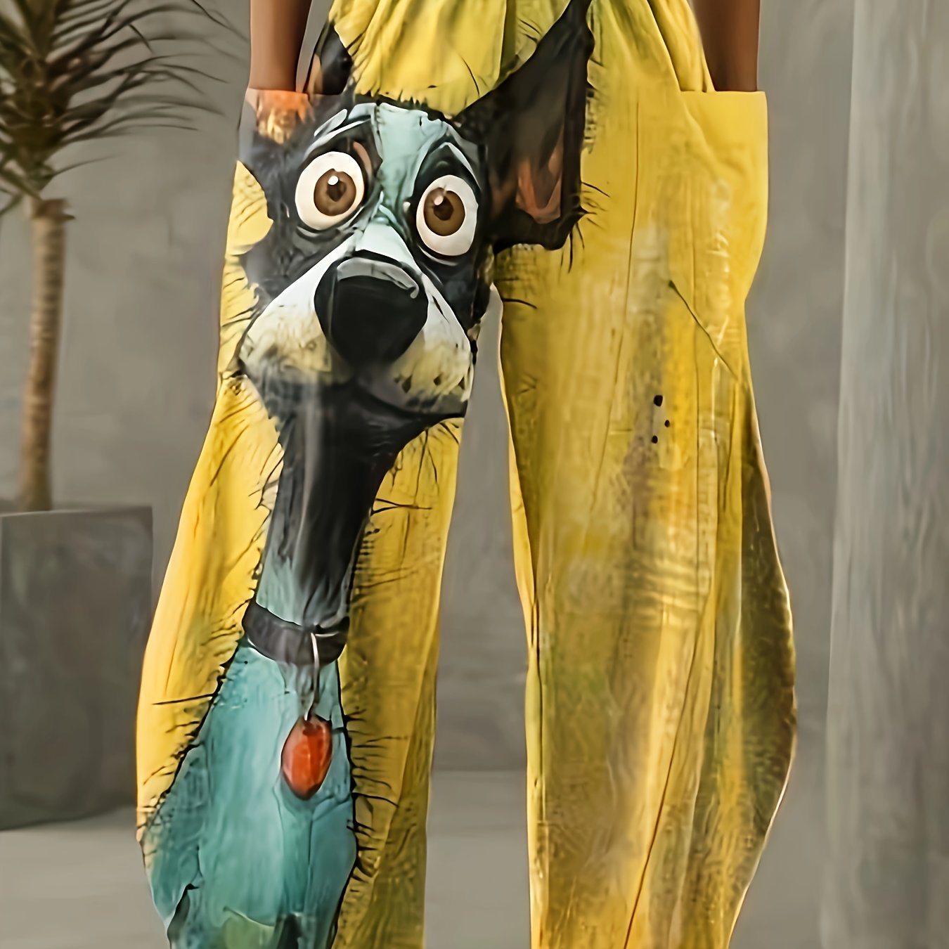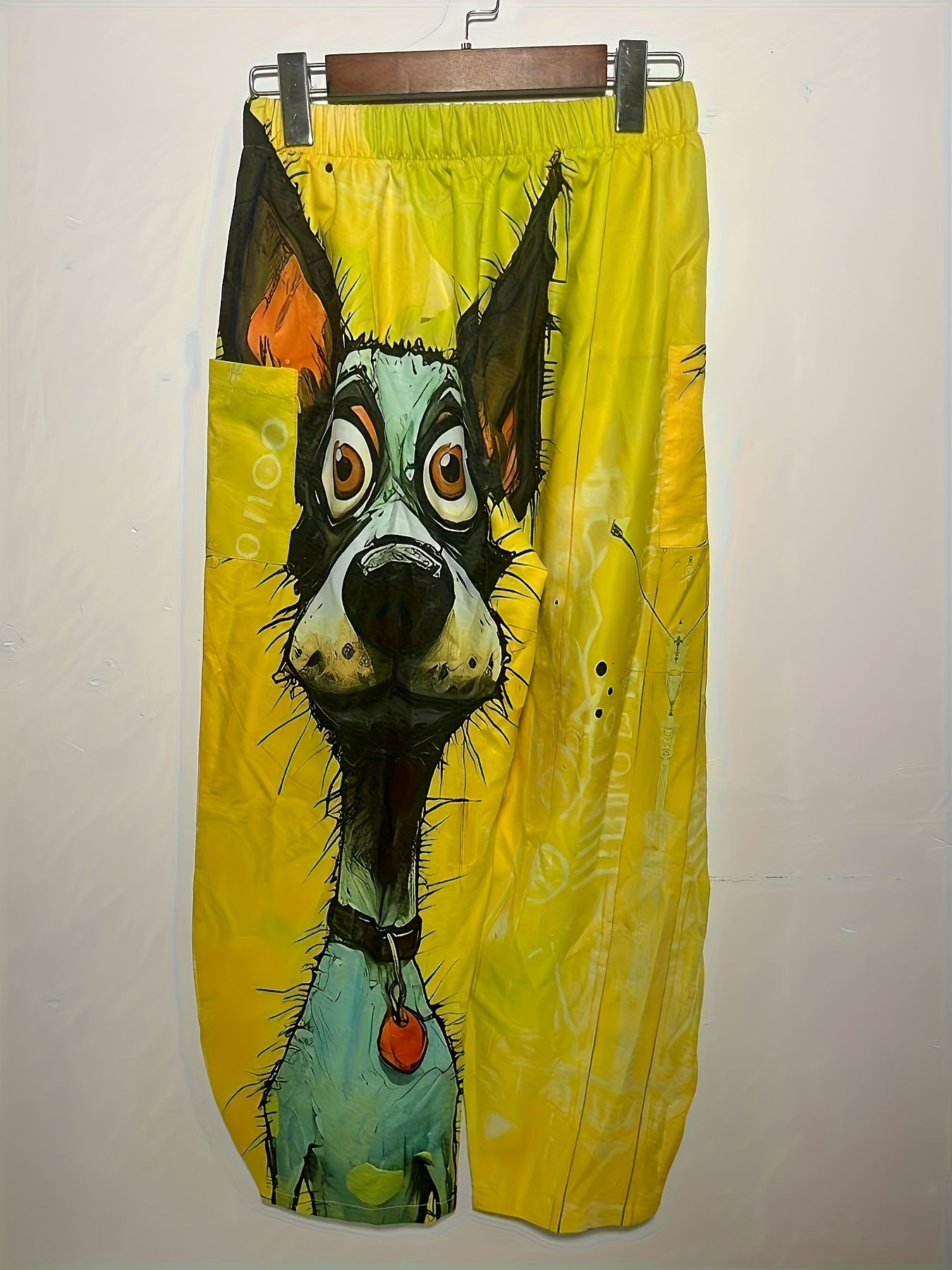 Plus Size Women's Dog Print Baggy Pants Casual Elastic Waist Trousers