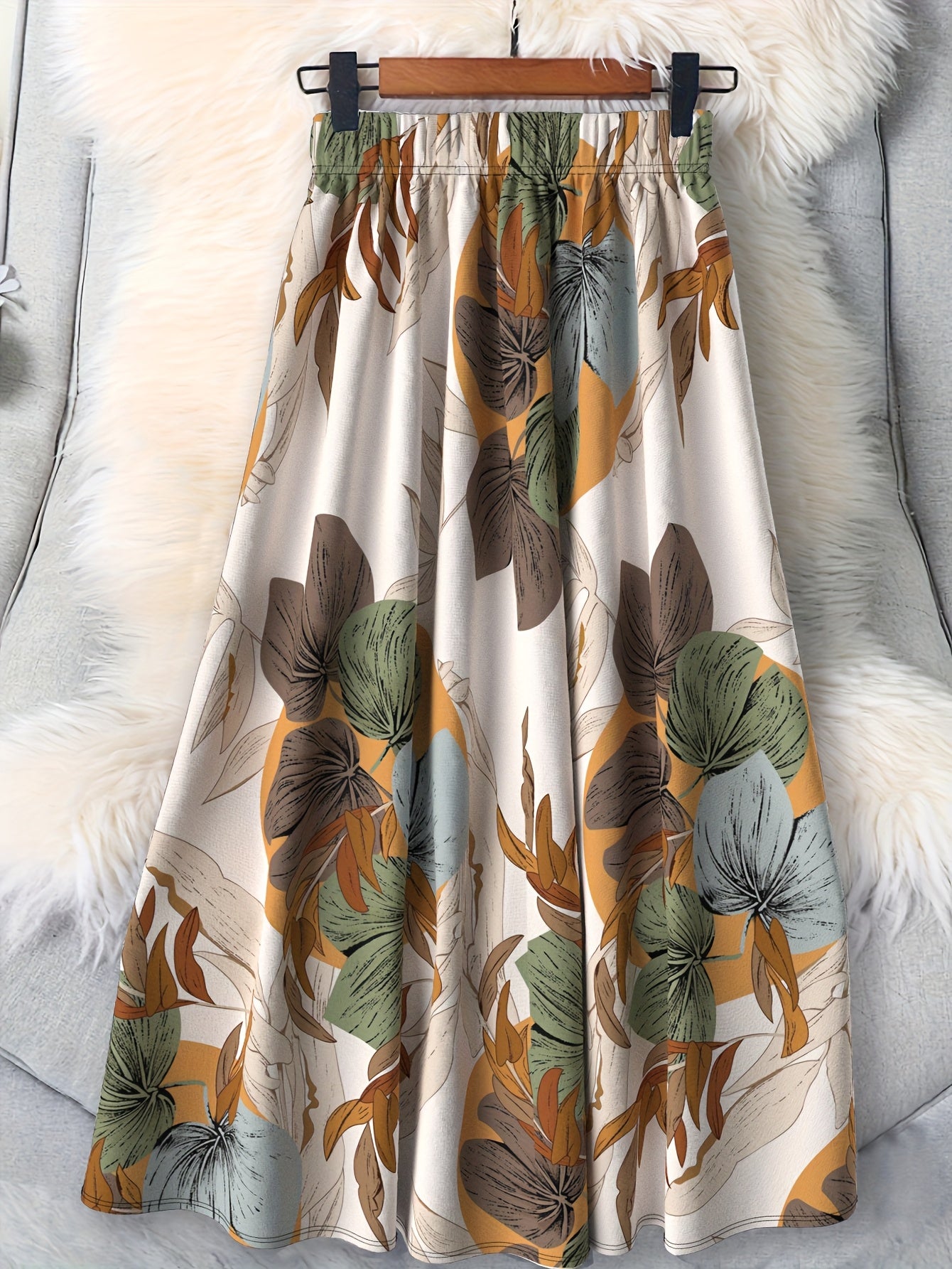 Plus Size Women's Elegant Mid-Length Vacation Skirt Printed Fabric Elastic Waist