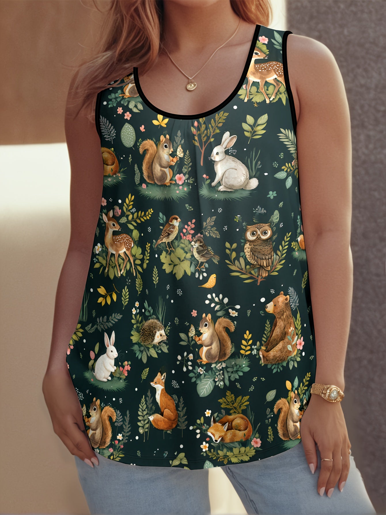 Топ без рукавов для женщин больших размеров с принтом лесных животных, летний повседневный