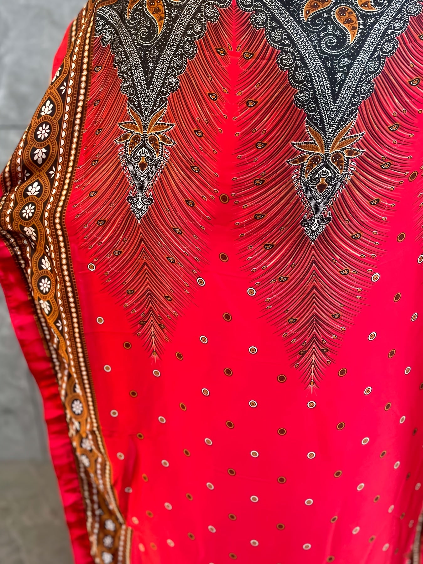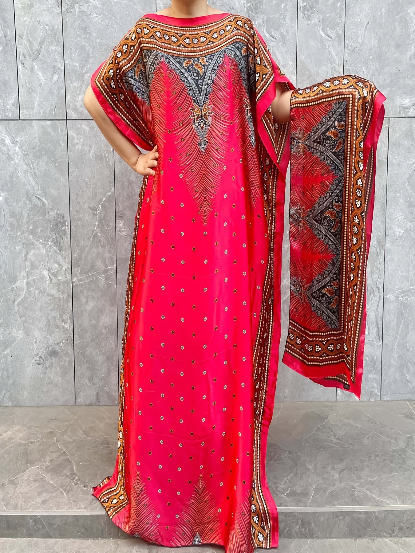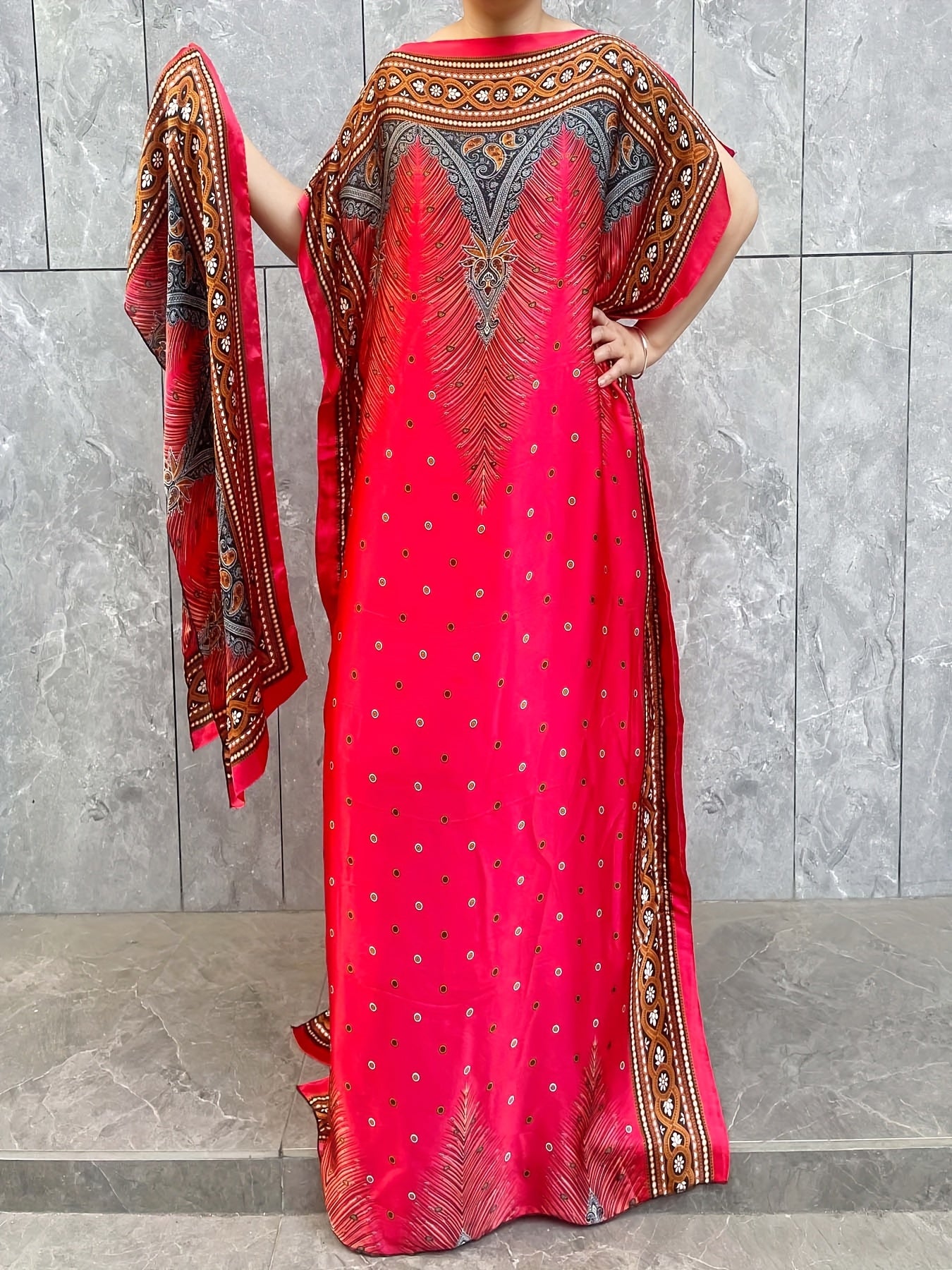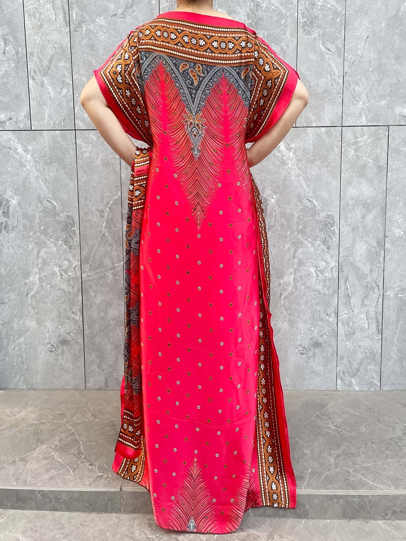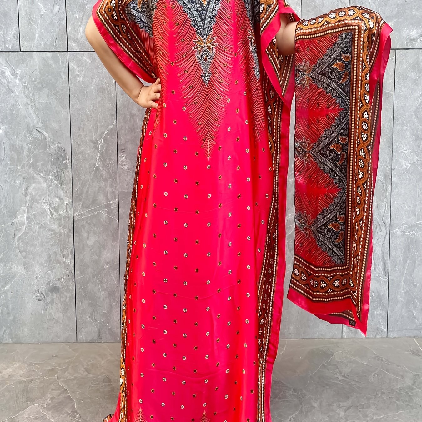 Платье макси для женщин больших размеров с геометрическим принтом, рукав-крыло и свободным кроем, красно-черное