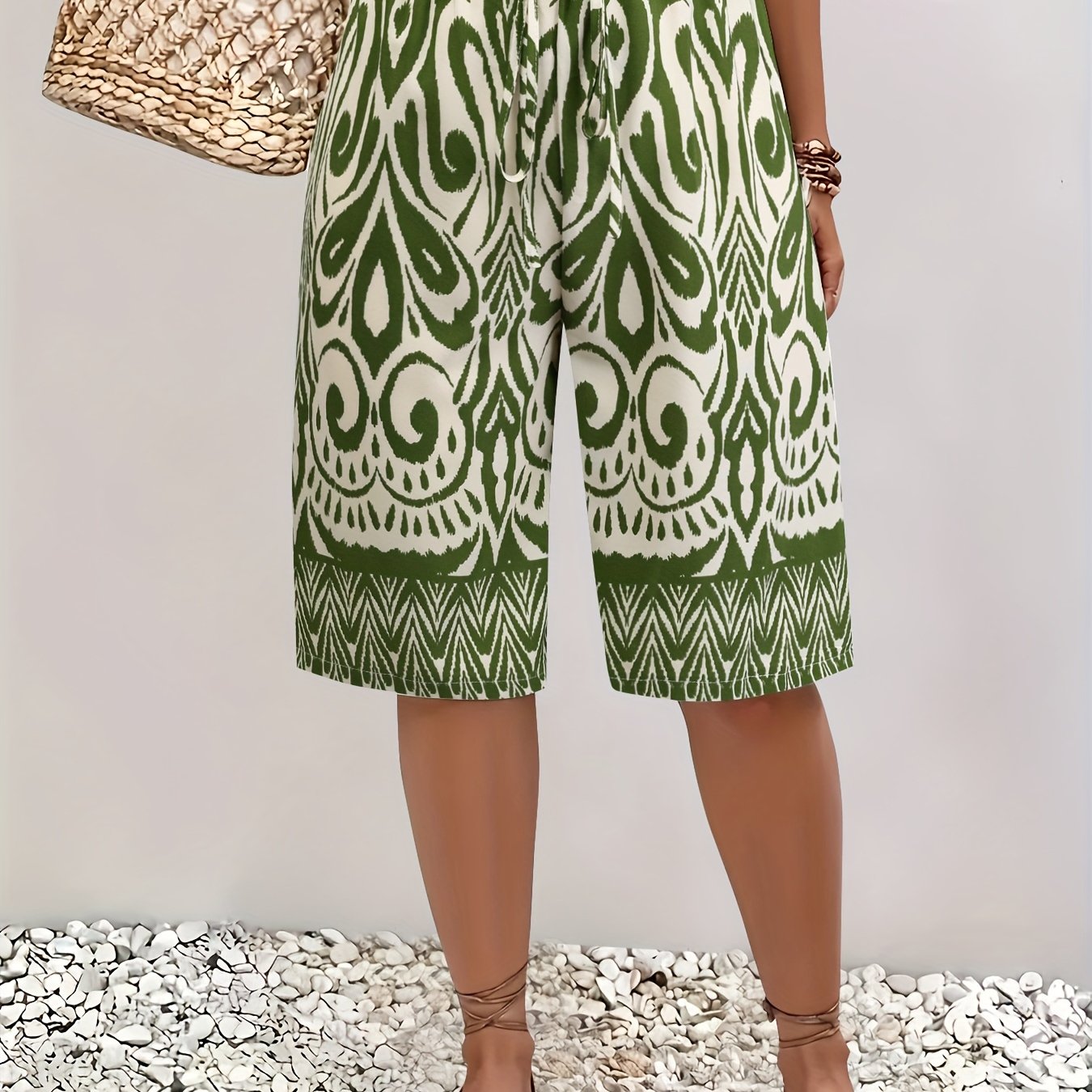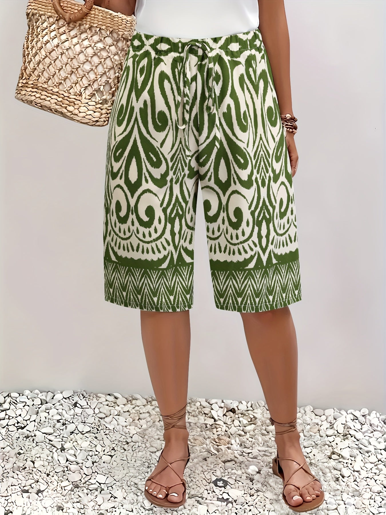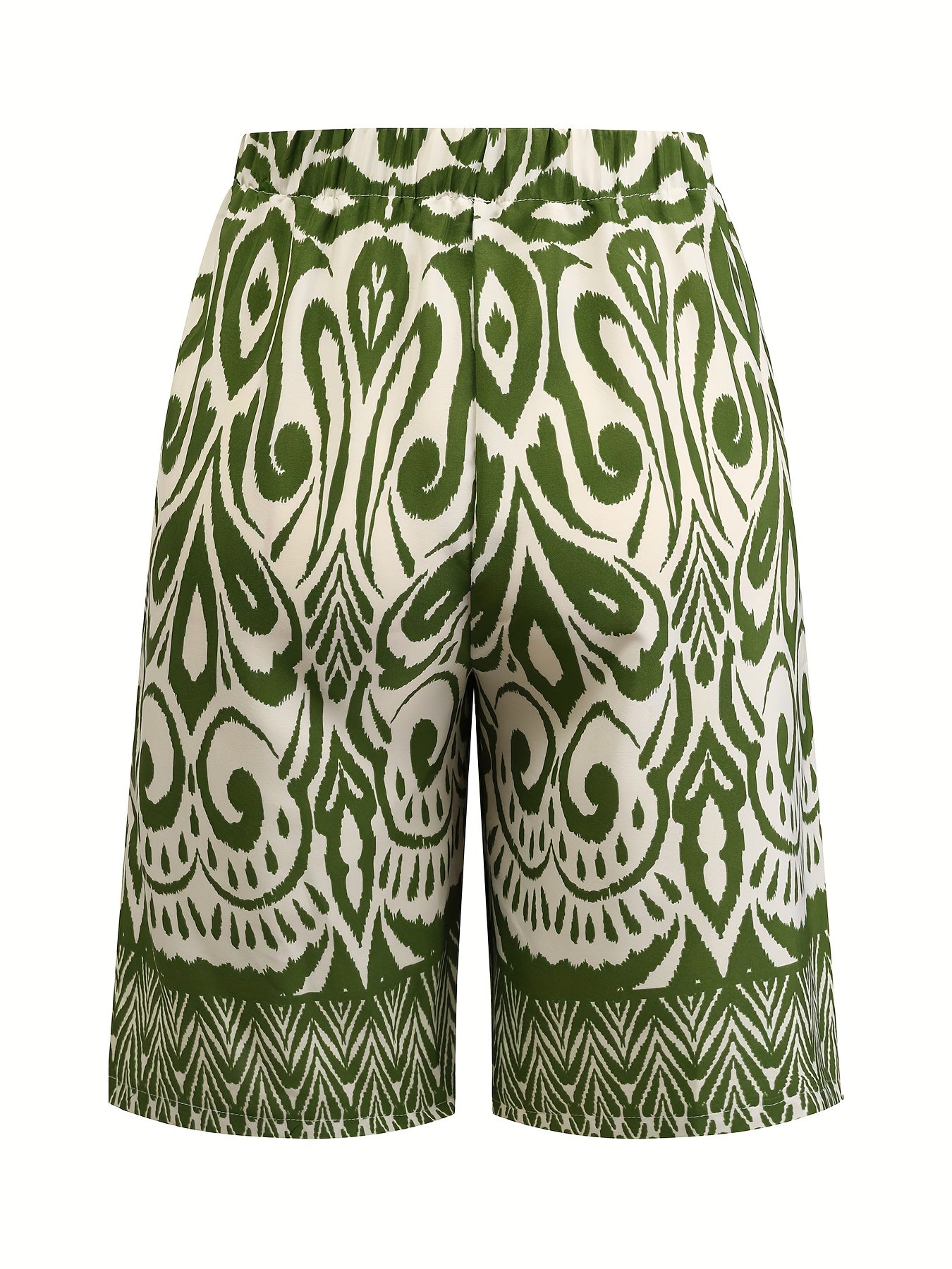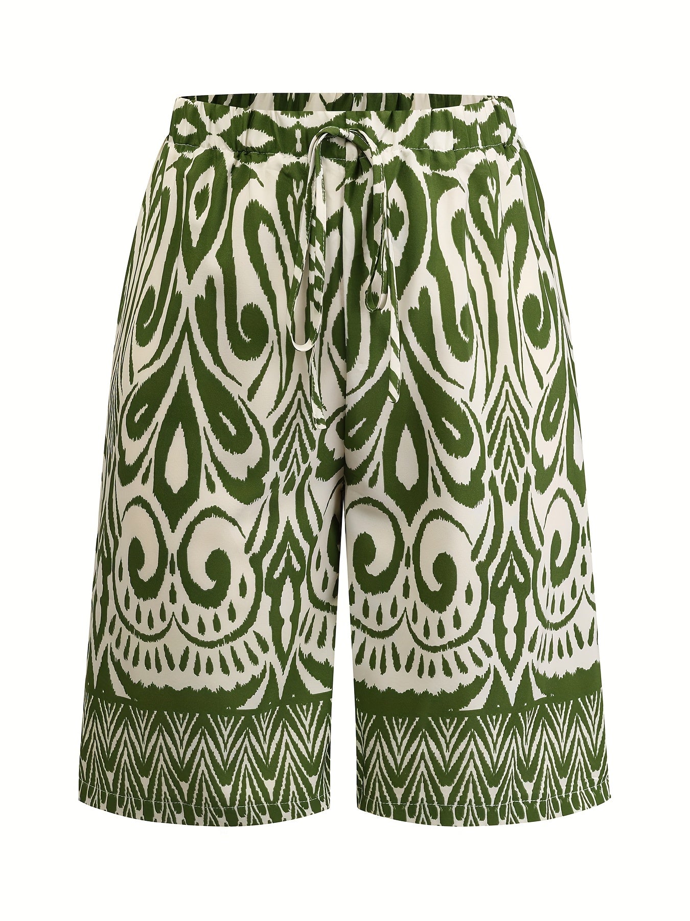 Бермуды для женщин больших размеров с зеленым и белым принтом, повседневные летние шорты
