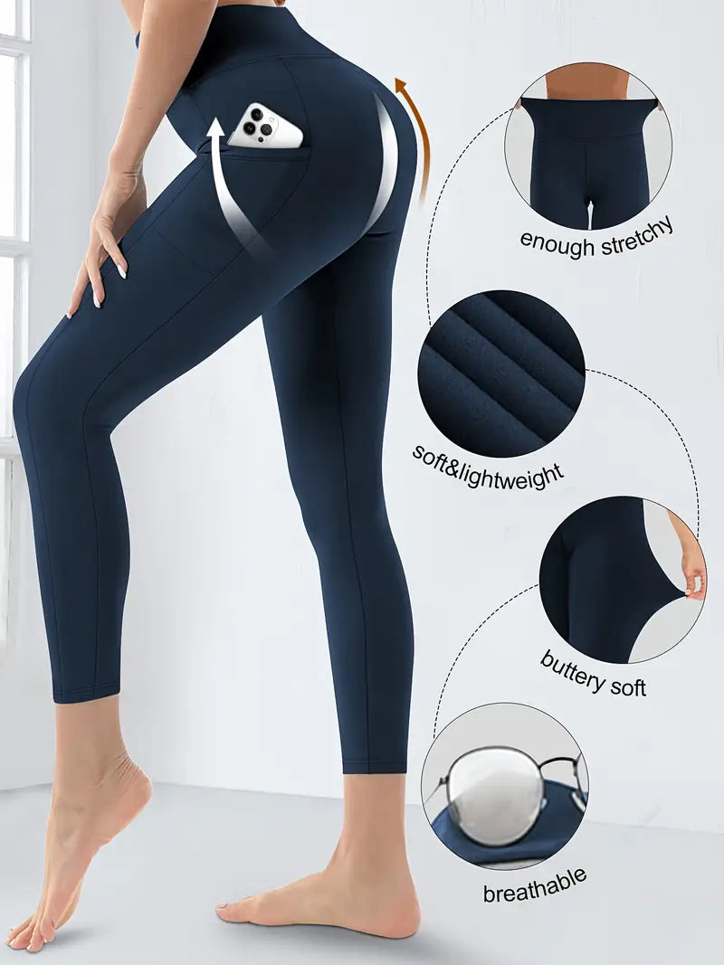 Plus Size Women's High-Waist 9/3 Length Leggings with Pockets Casual Stretchy