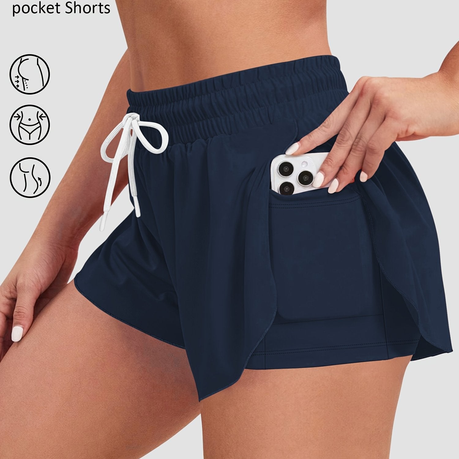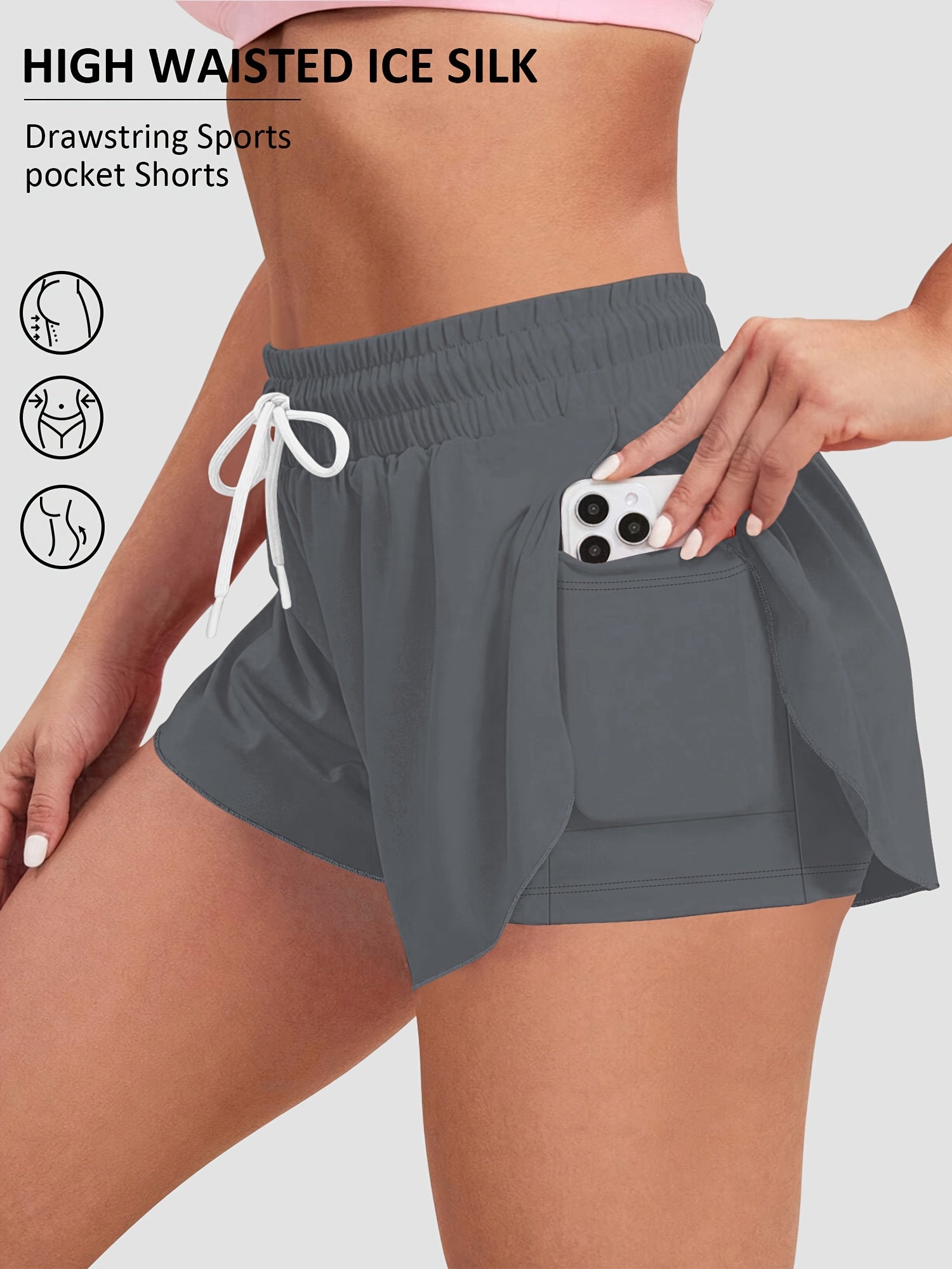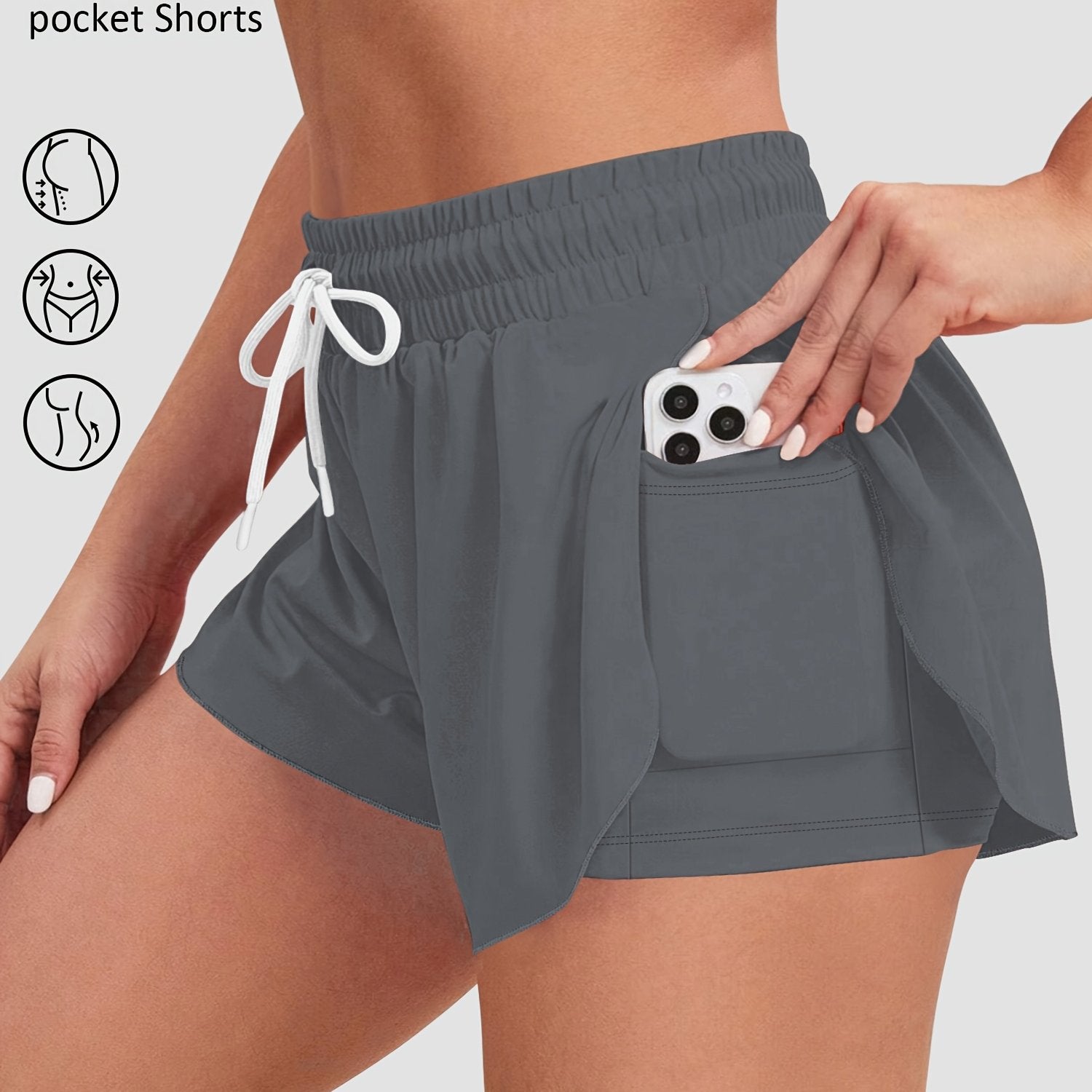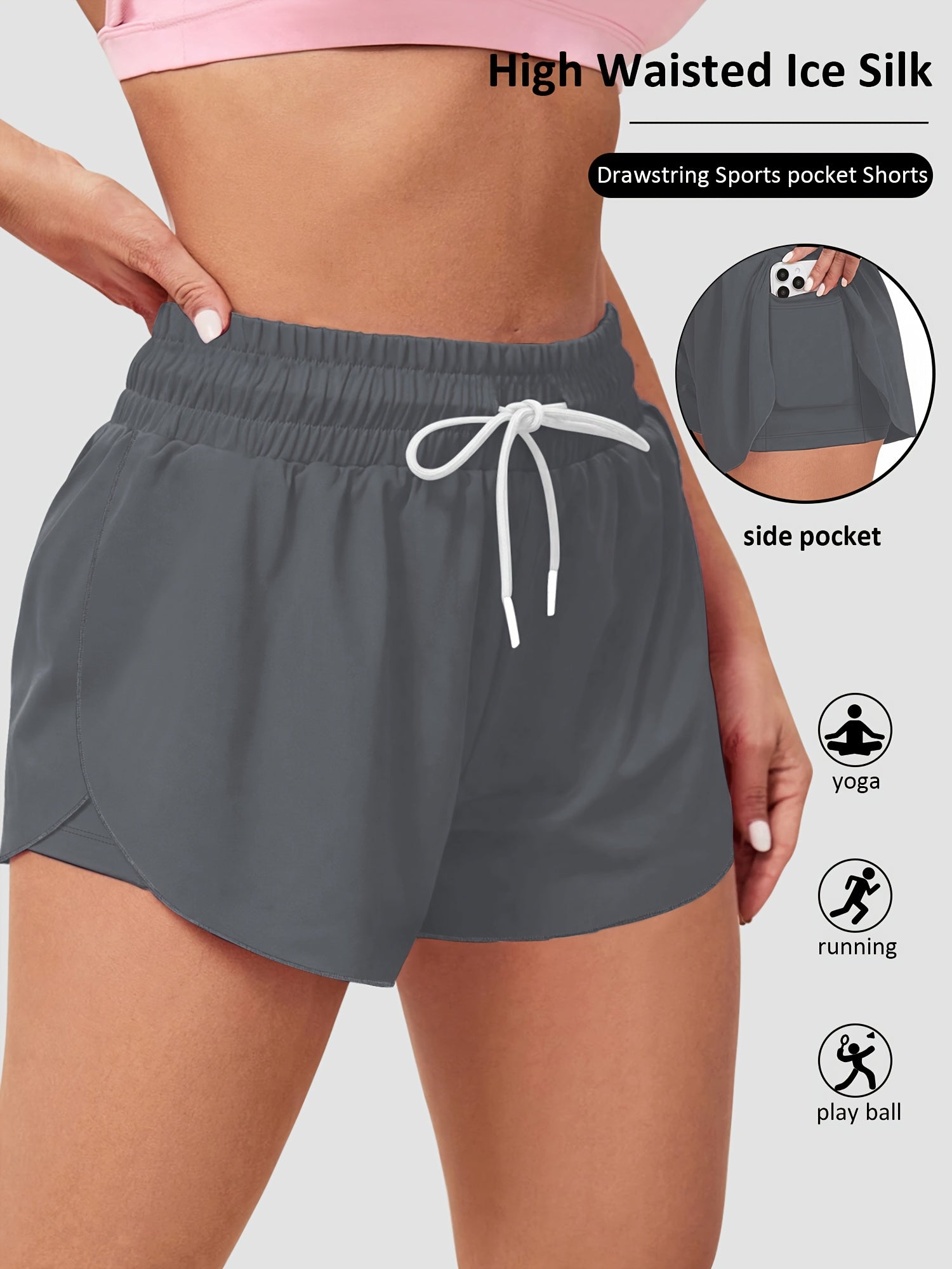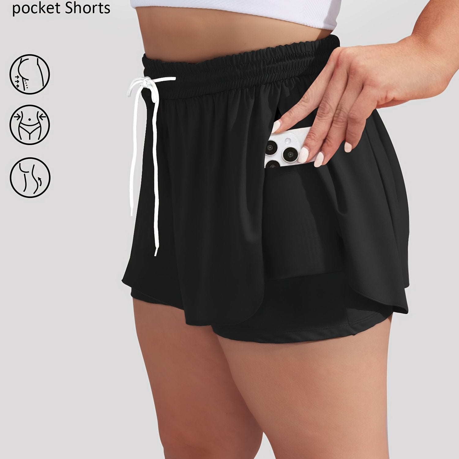 Шорты для бега женские больших размеров с высокой талией, непрозрачные, с карманами
