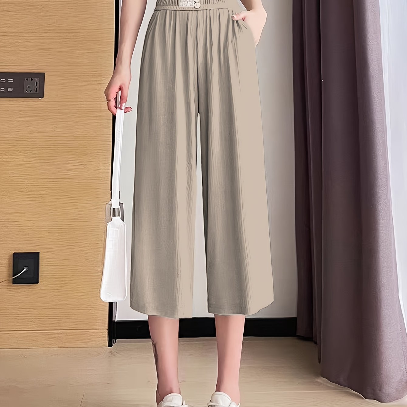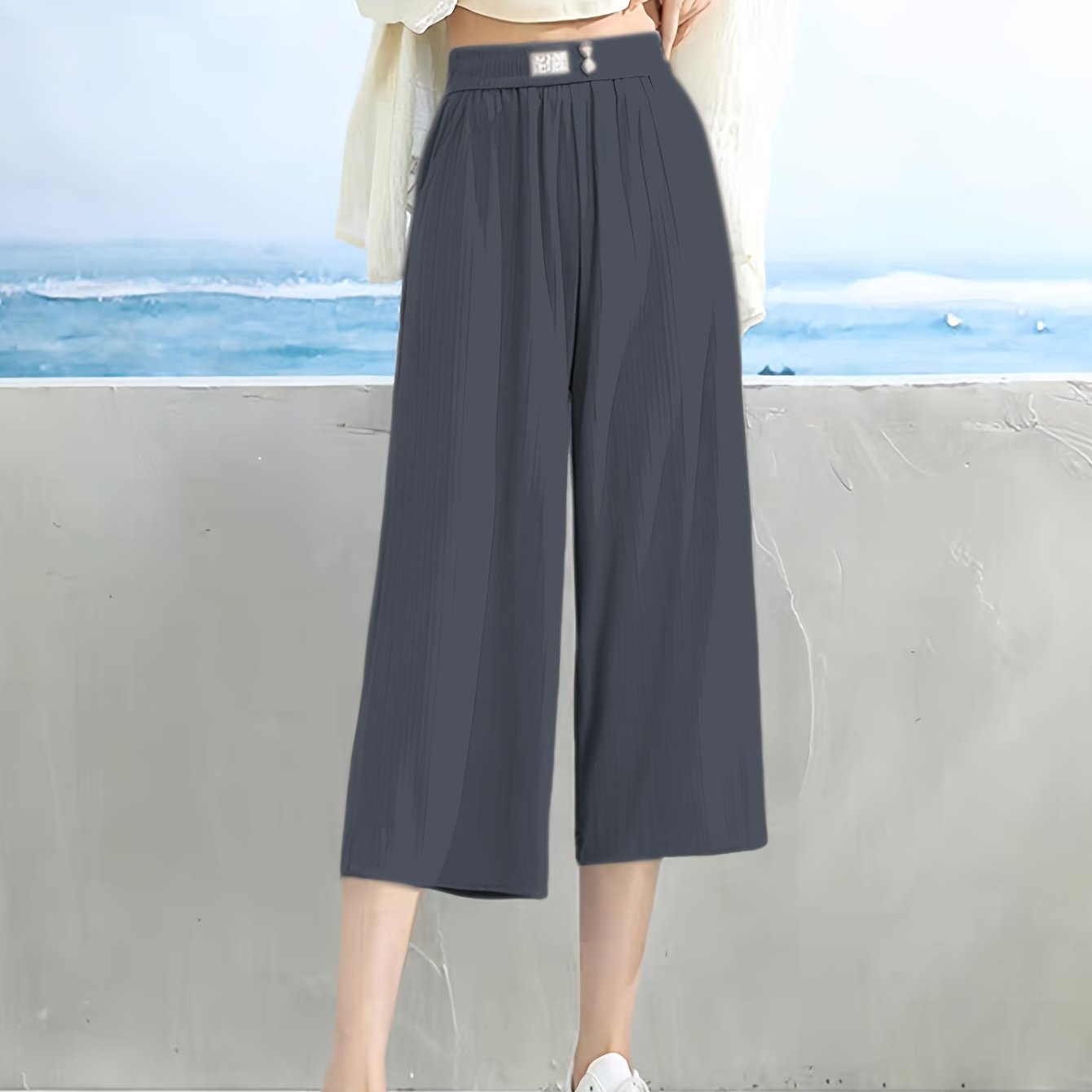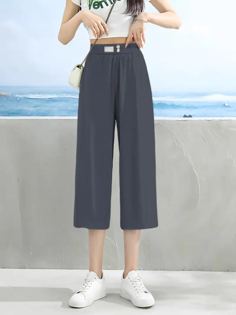 Капри женские большого размера из ледяного шелка с высокой талией и широкими штанинами, дышащие летние брюки для отдыха
