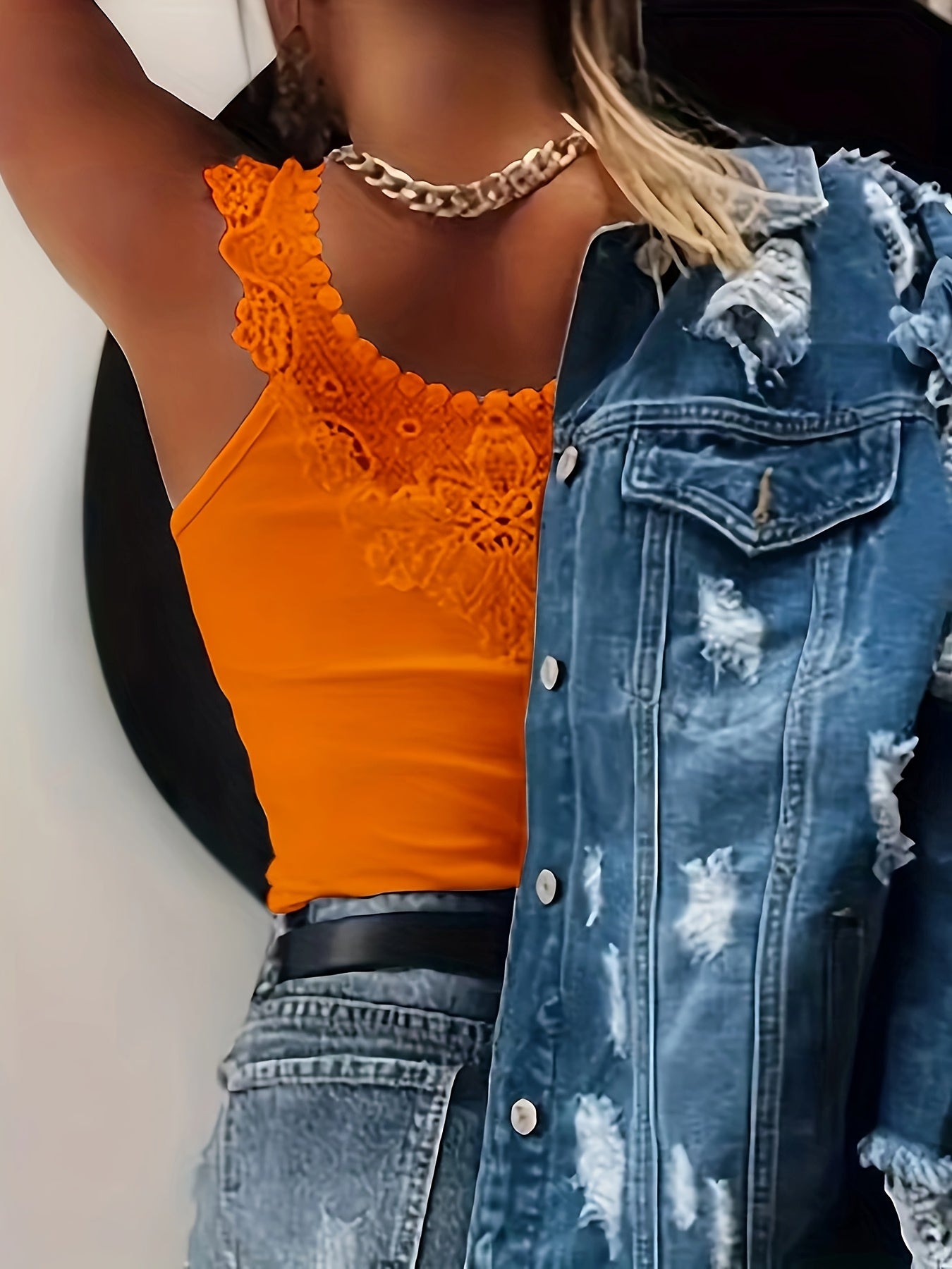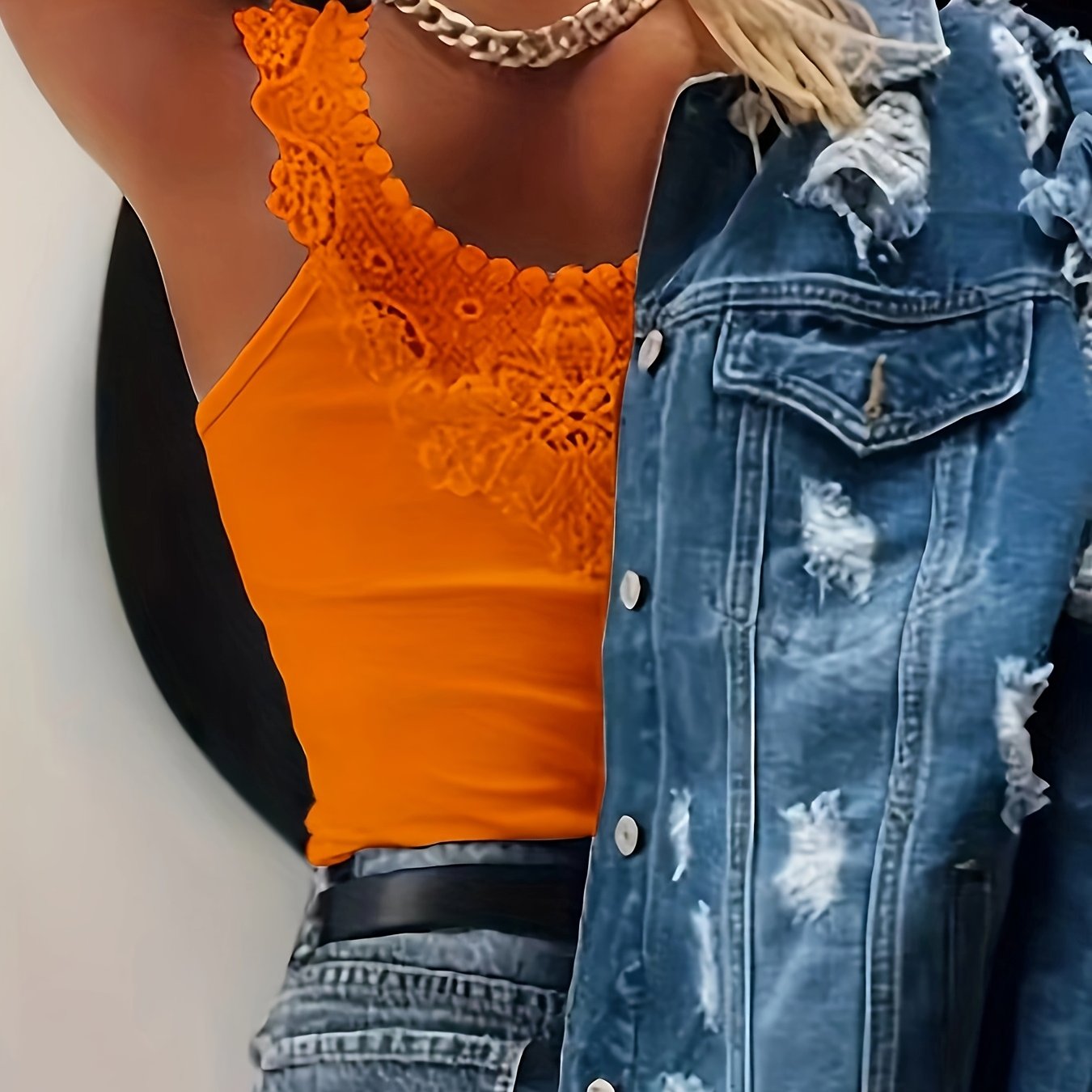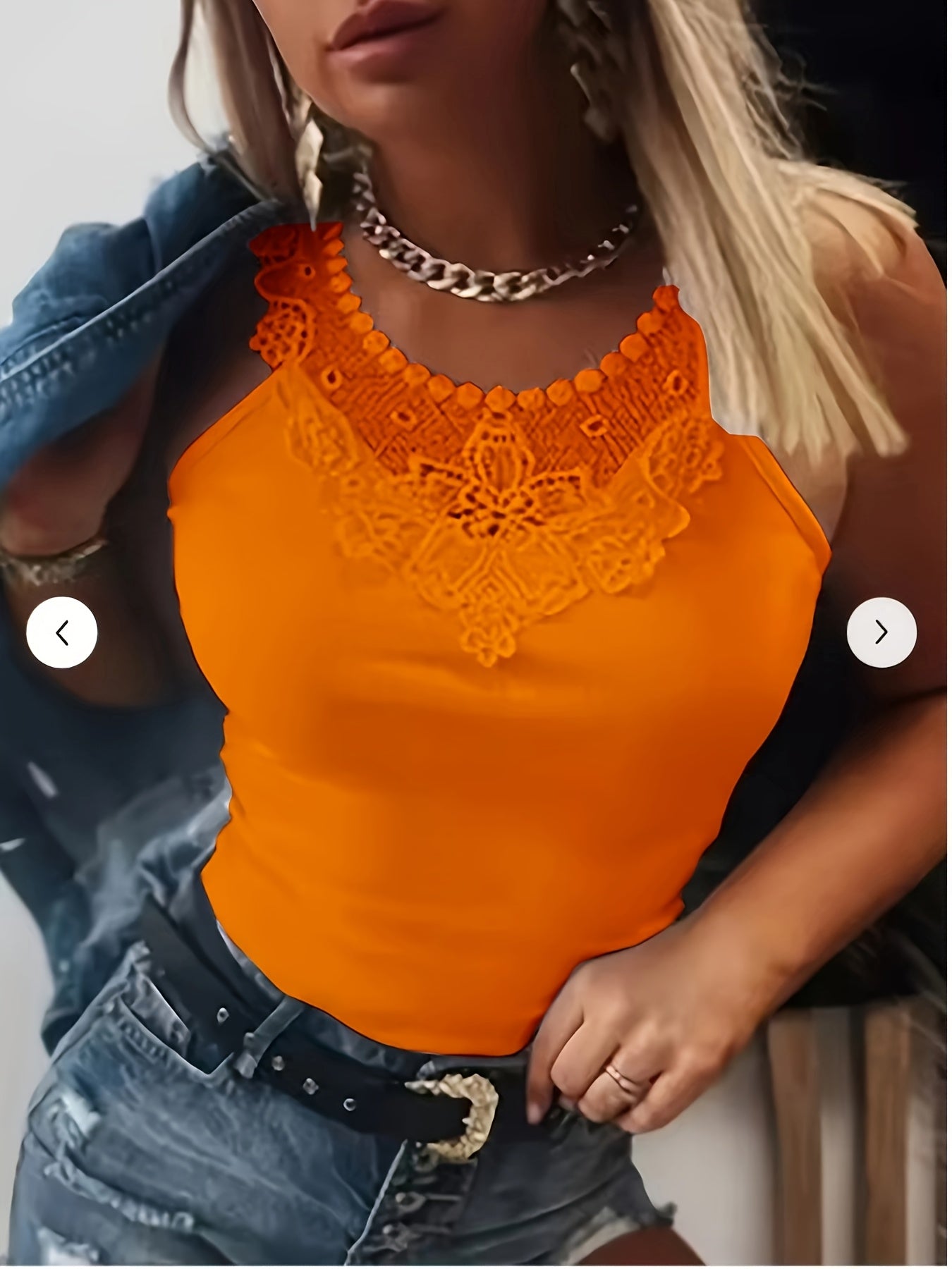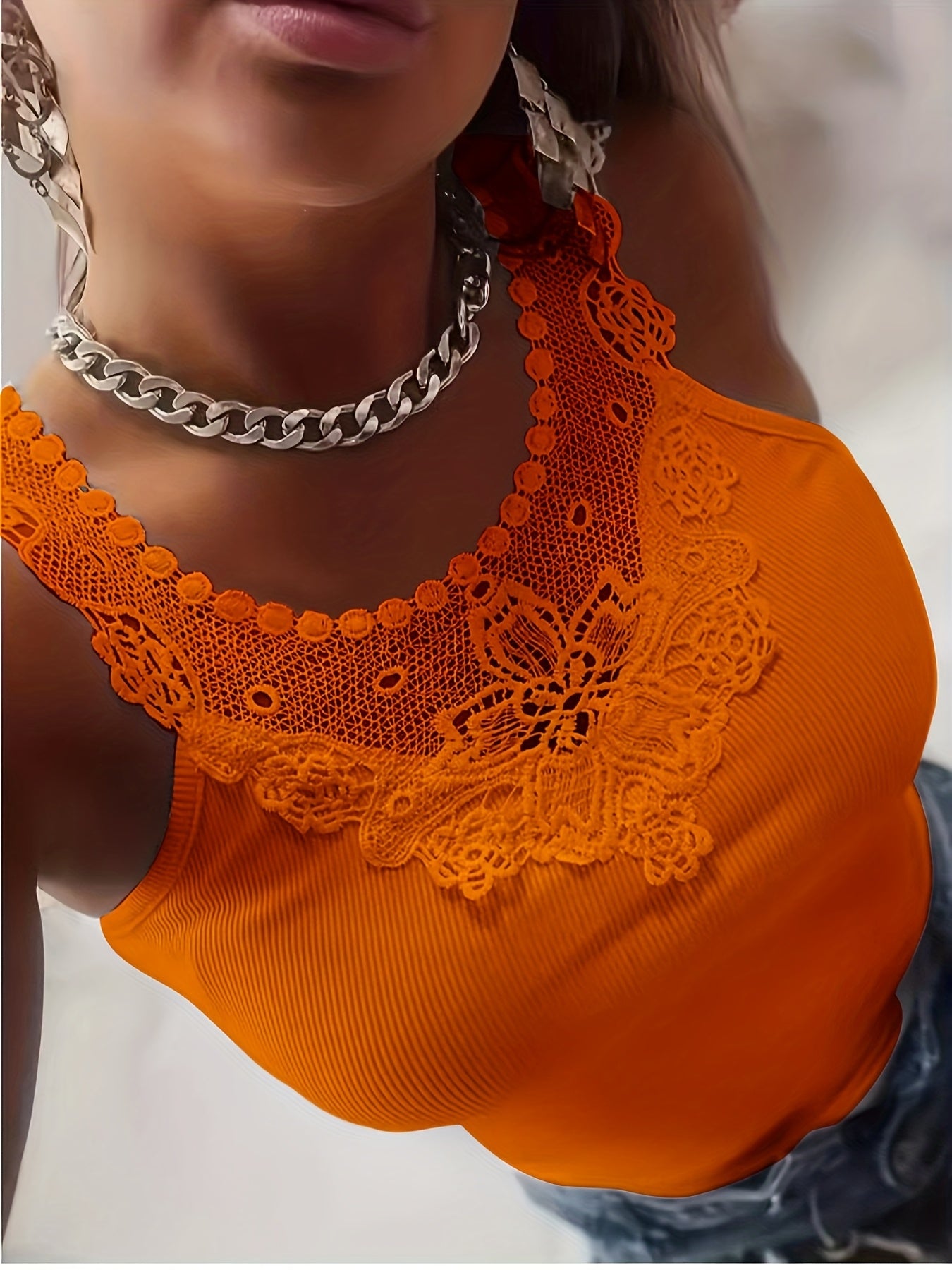 Топ без рукавов для женщин больших размеров с кружевной отделкой, полупрозрачная летняя блузка