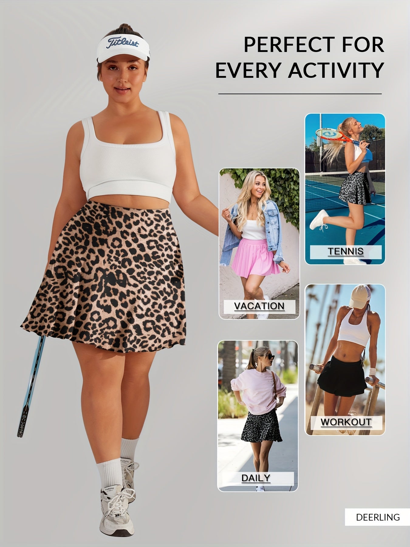 Plus Size Women's Leopard Print High-Waist Skort with Pockets Athletic Shorts