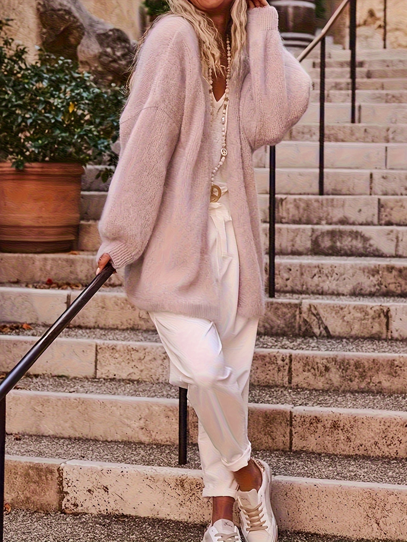 Кардиган для женщин больших размеров светло-голубой с открытой передней частью, длинные рукава, повседневный стиль, шик