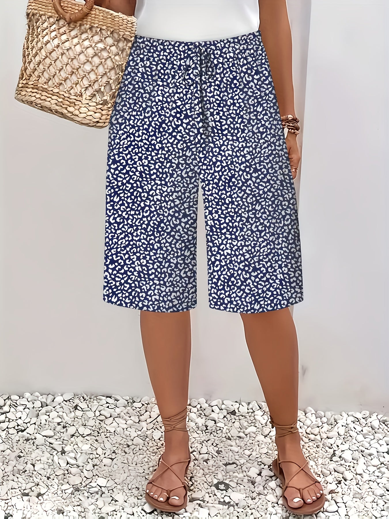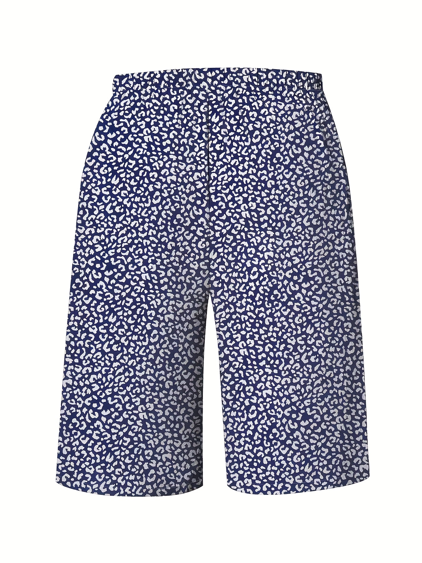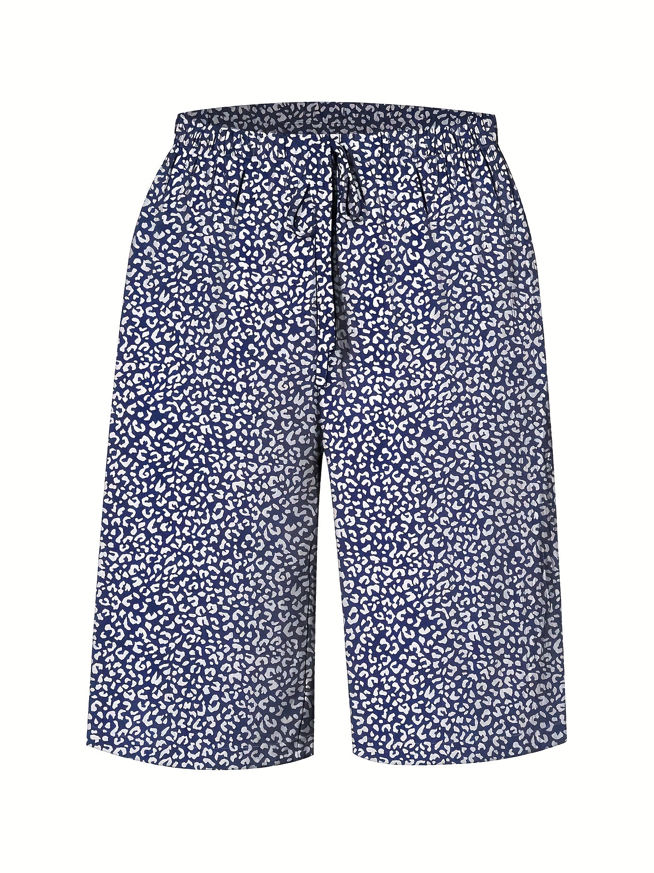 Шорты для женщин больших размеров из легкого полиэстера для пляжа, синий и белый с цветочным принтом, длина до колен, карманы