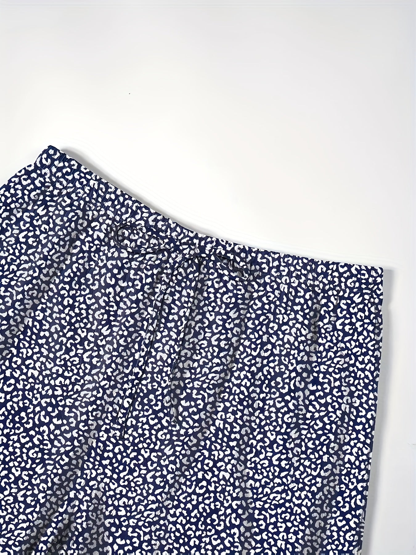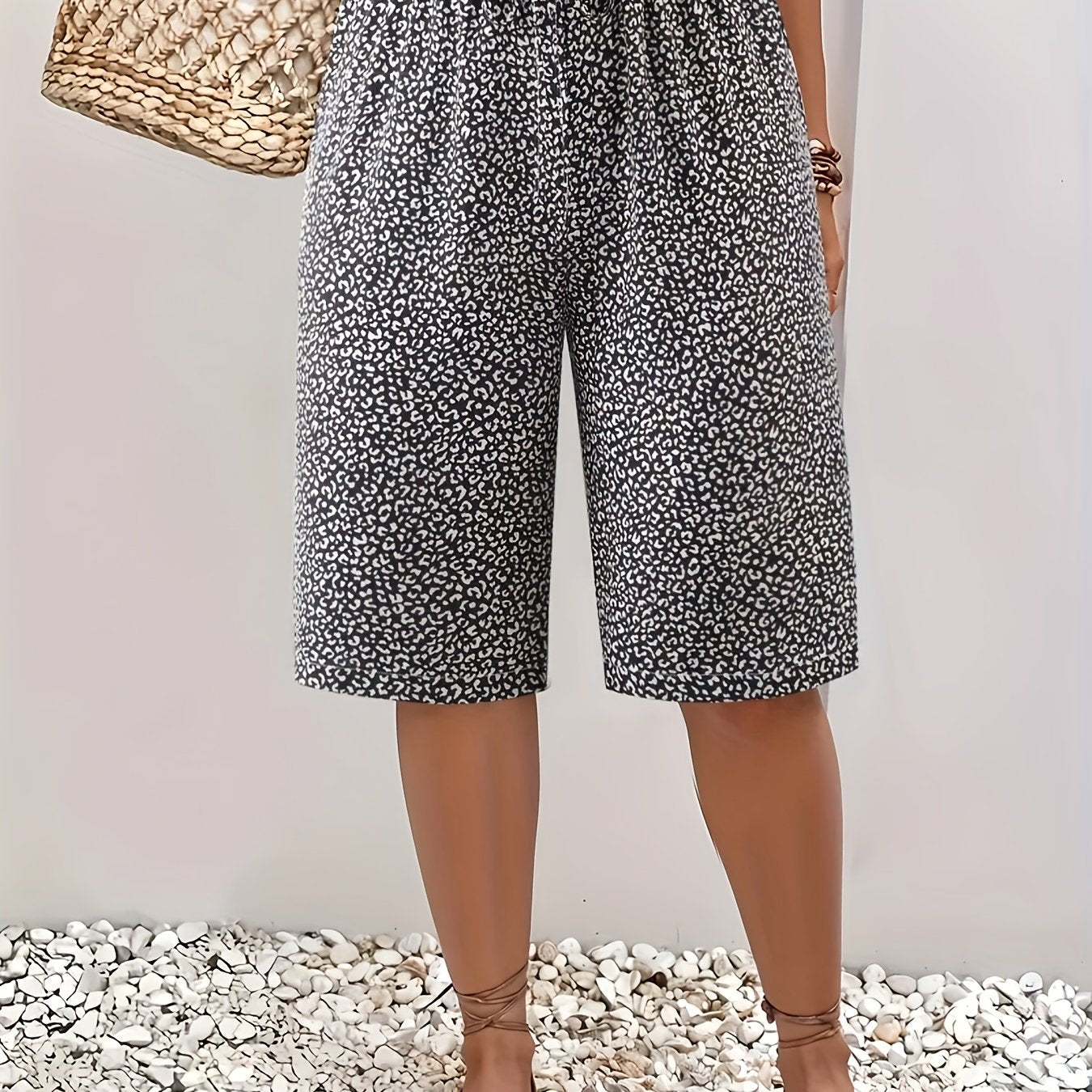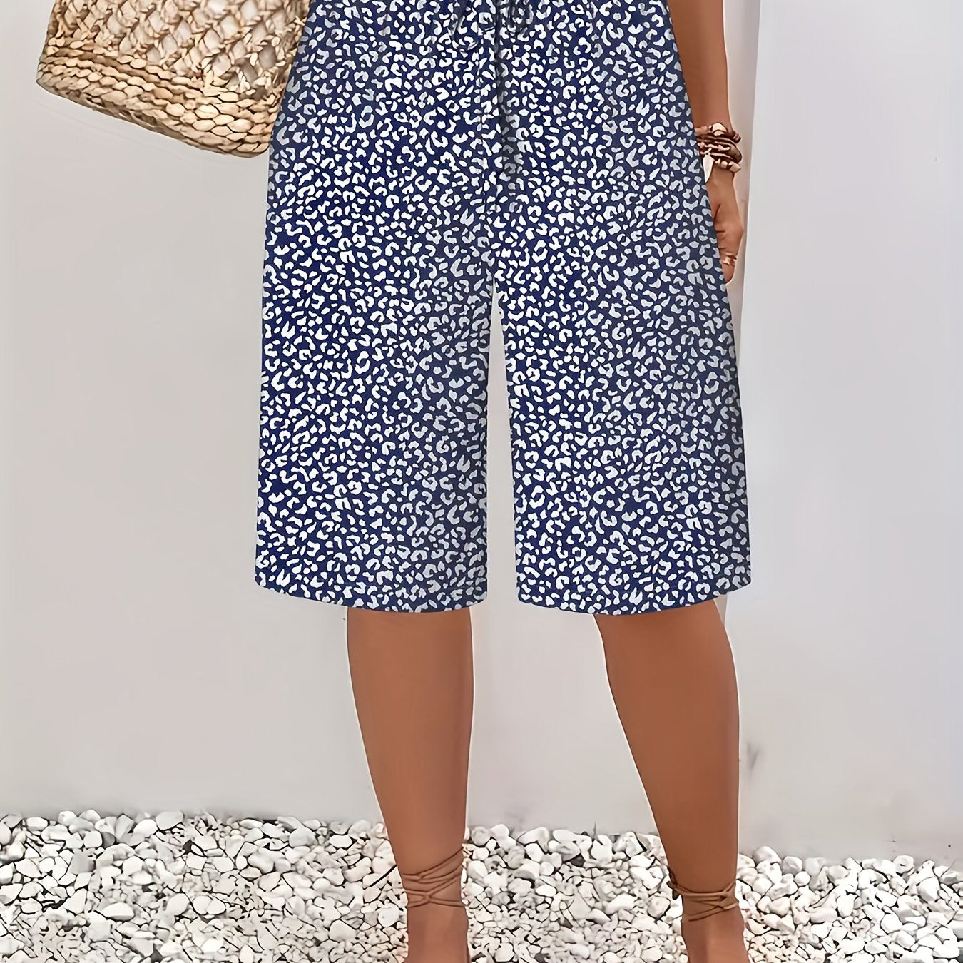 Шорты для женщин больших размеров из легкого полиэстера для пляжа, синий и белый с цветочным принтом, длина до колен, карманы