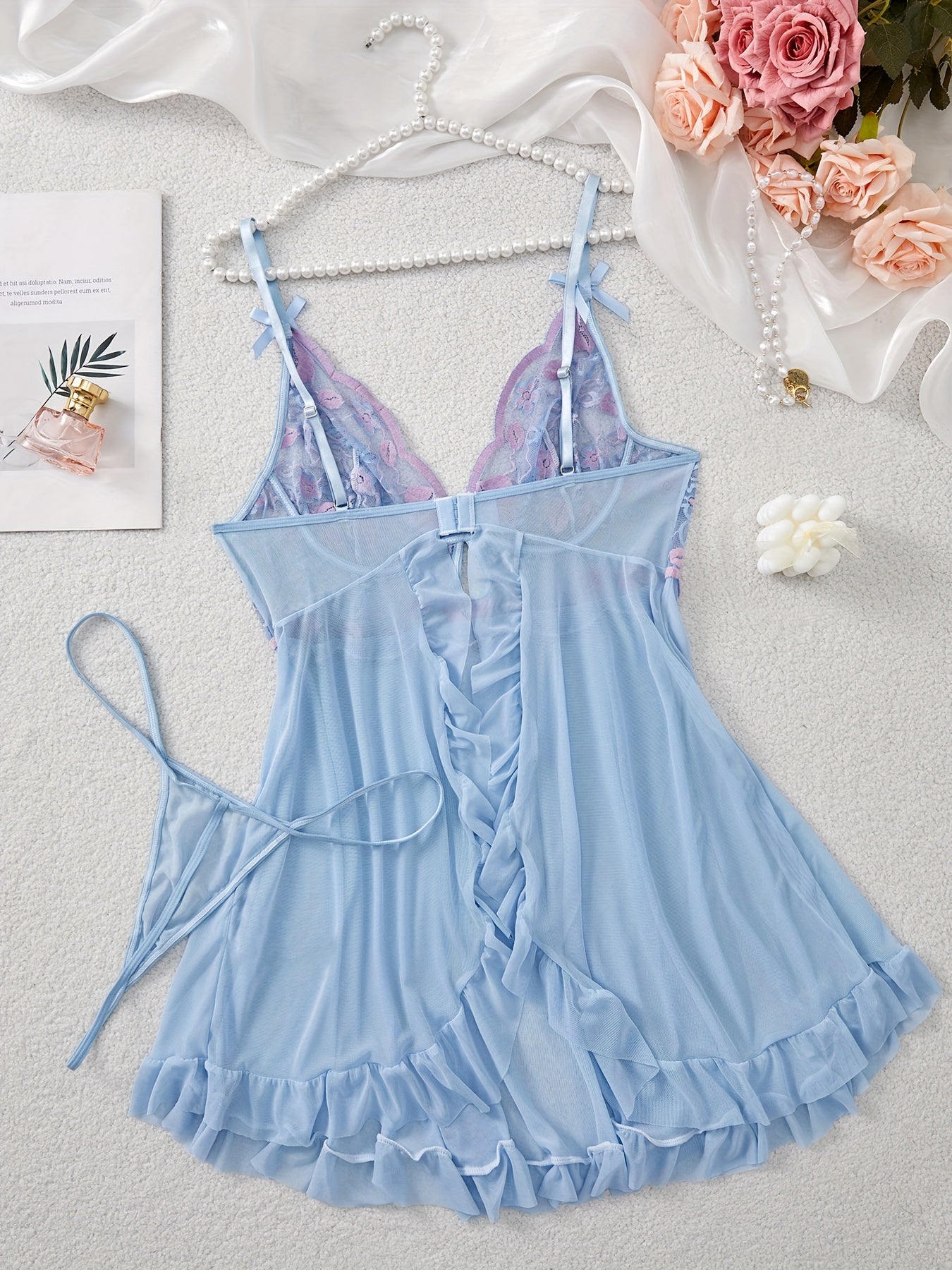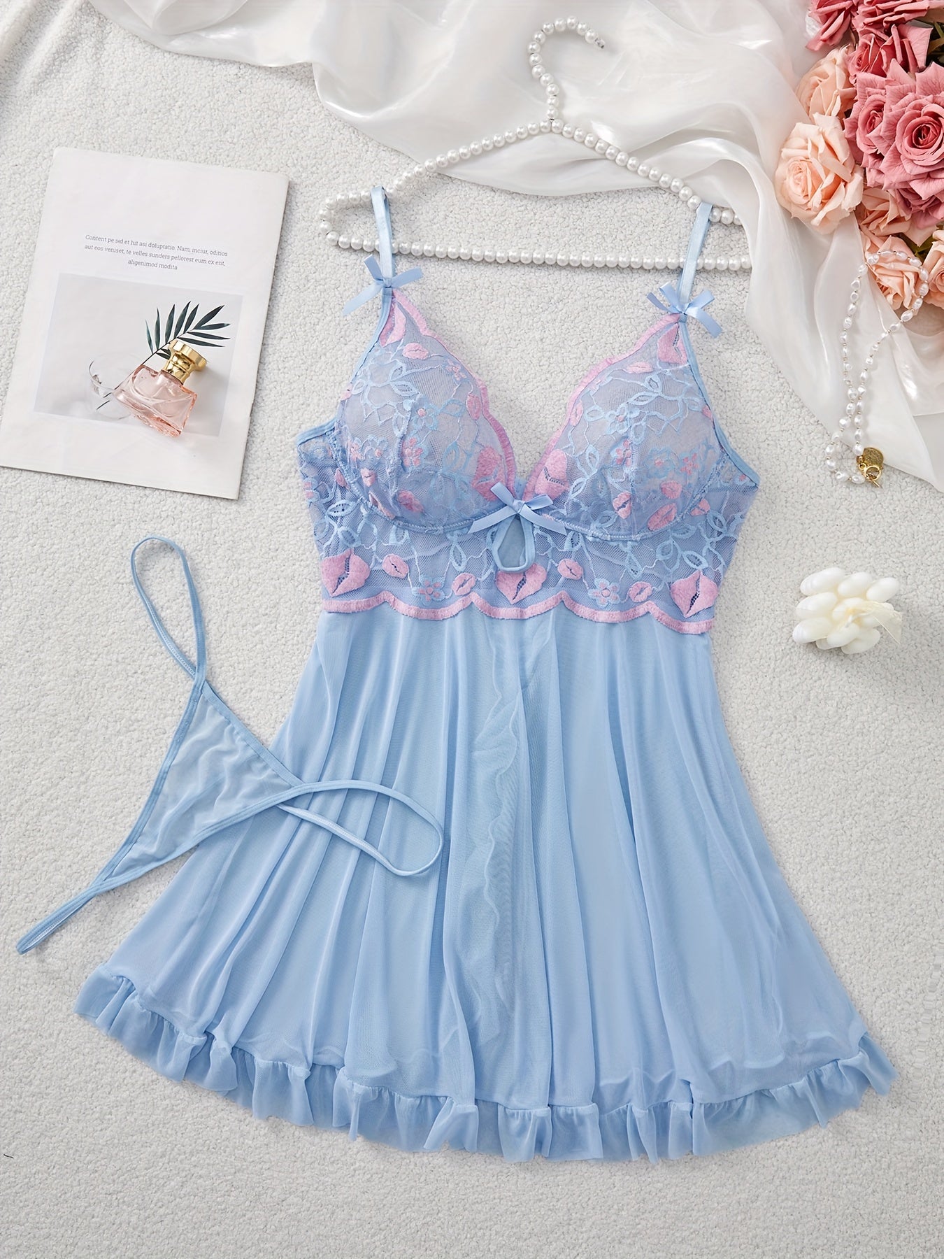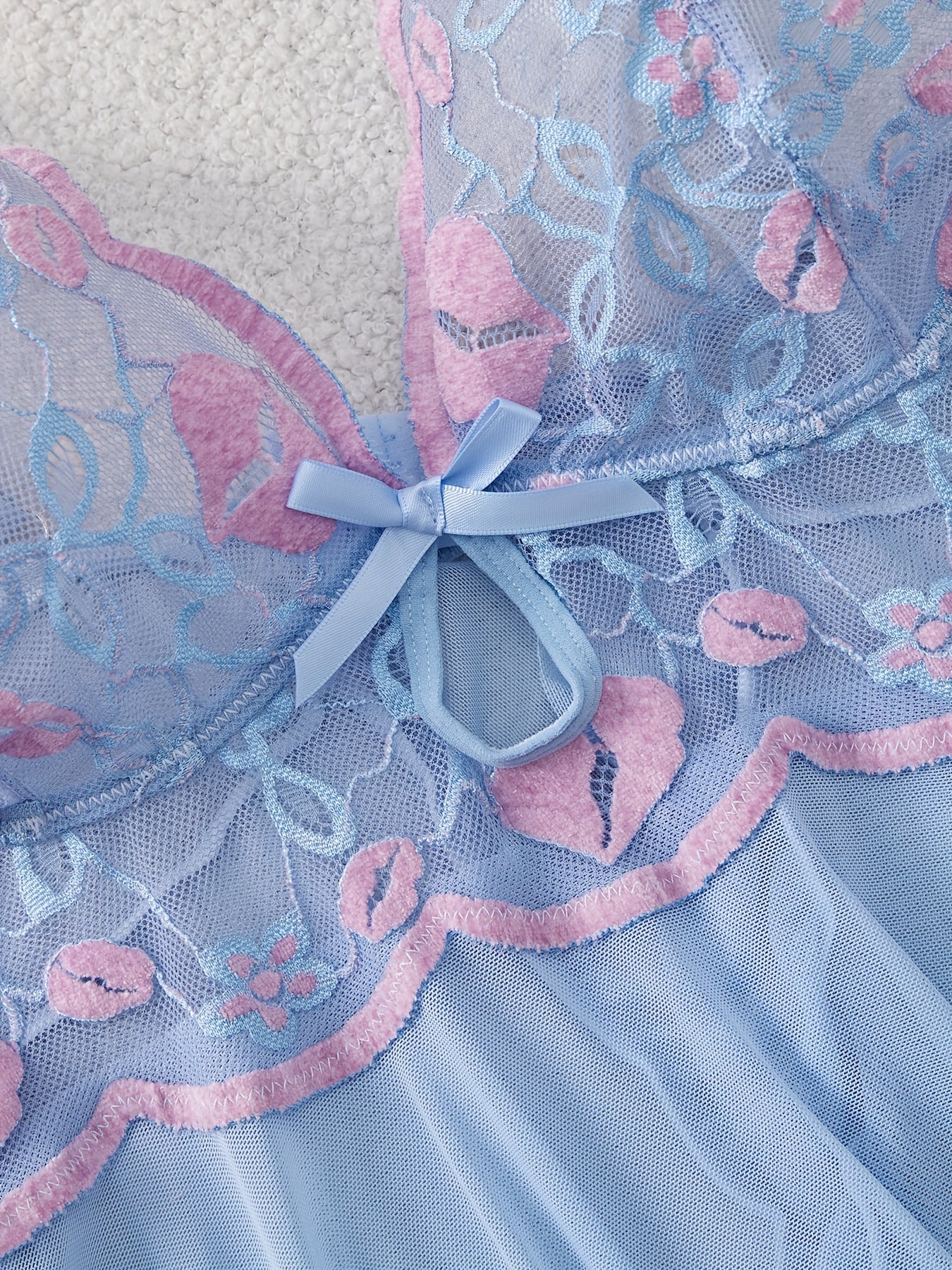 Комплект женского белья больших размеров с платьем, бэби-долл, рюшей, бантом и вышивкой