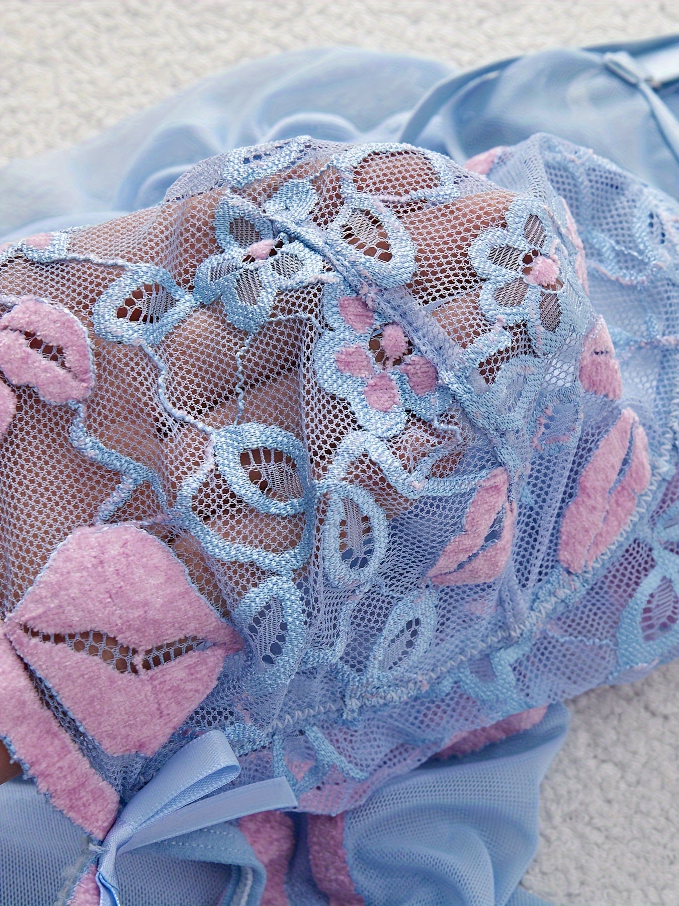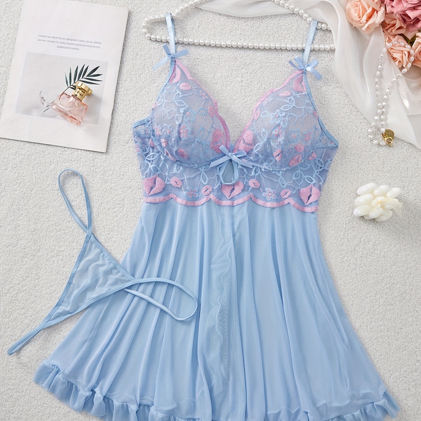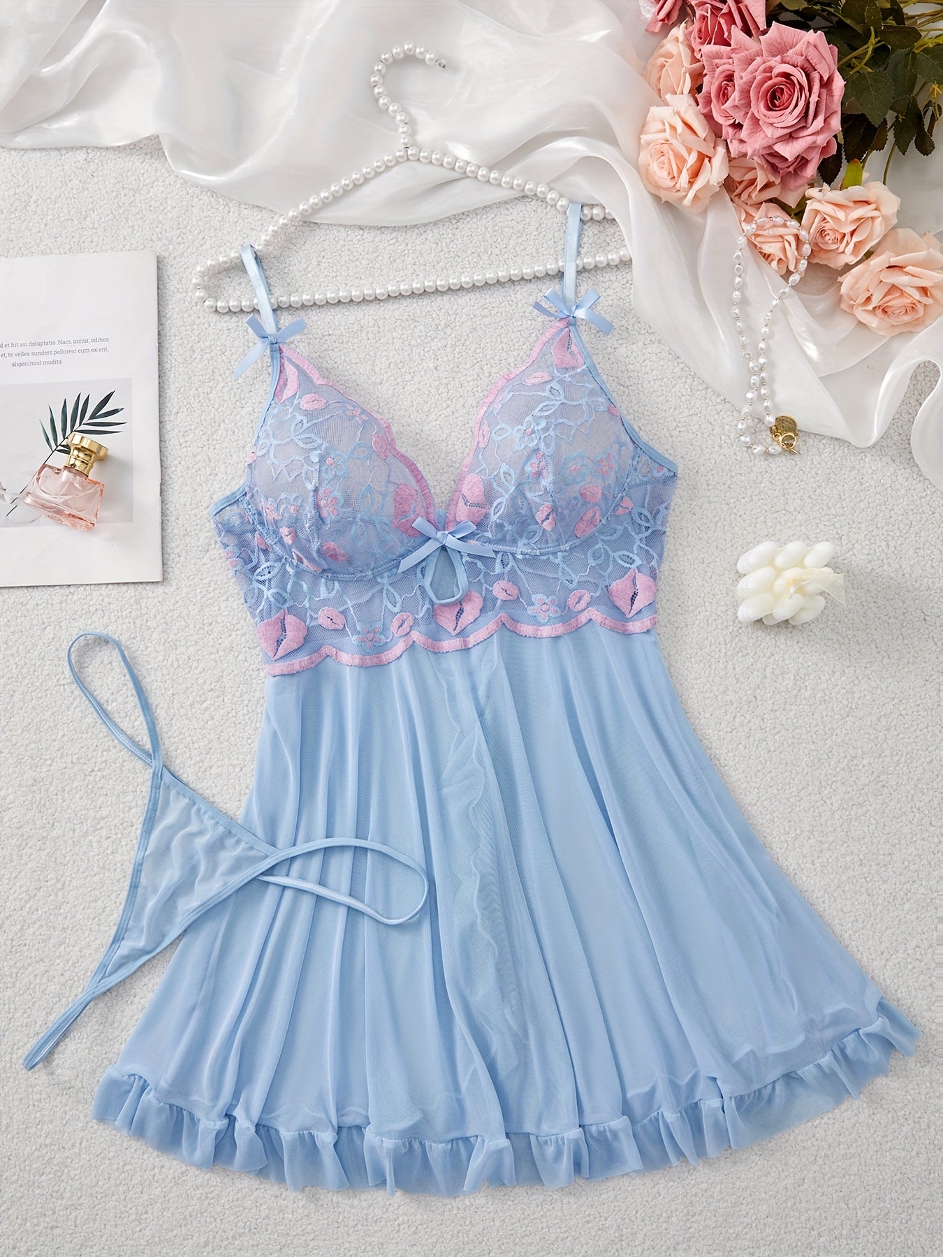 Комплект женского белья больших размеров с платьем, бэби-долл, рюшей, бантом и вышивкой