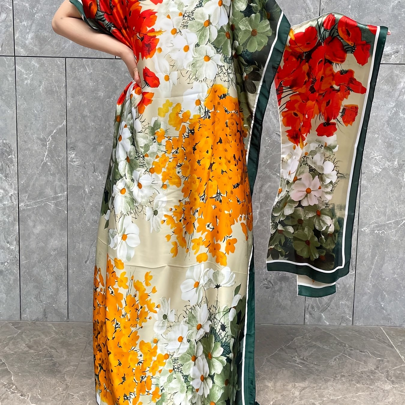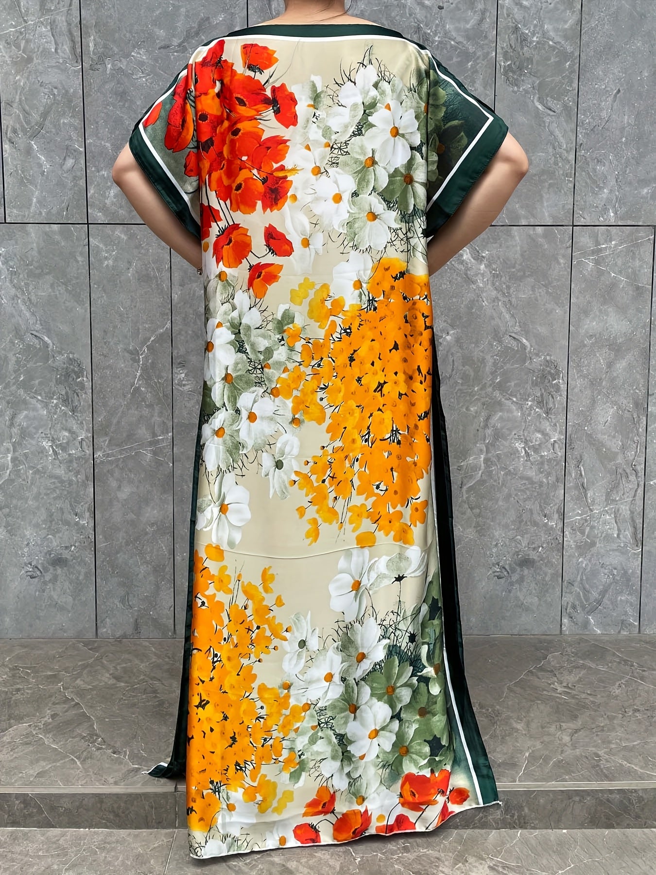 Плюс сайз женское макси платье-кафтан с цветочным принтом для лета, пляжное, повседневное