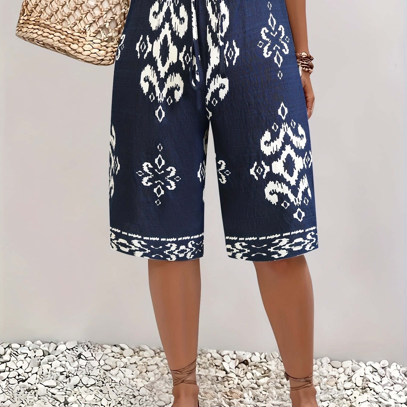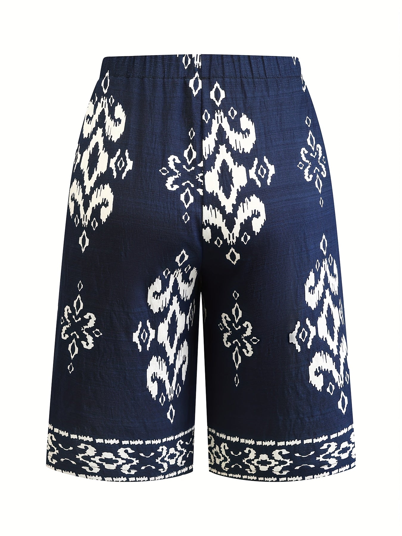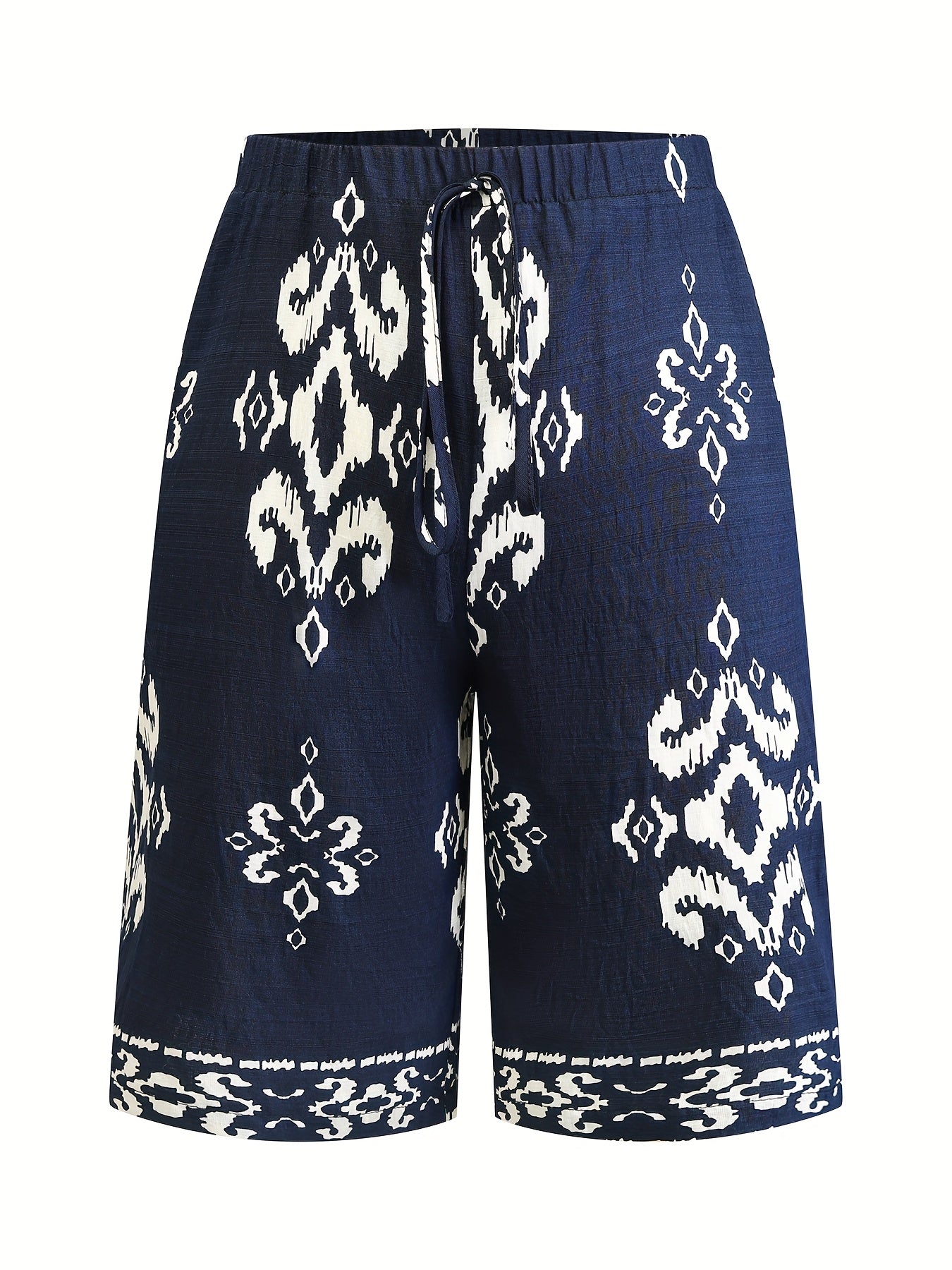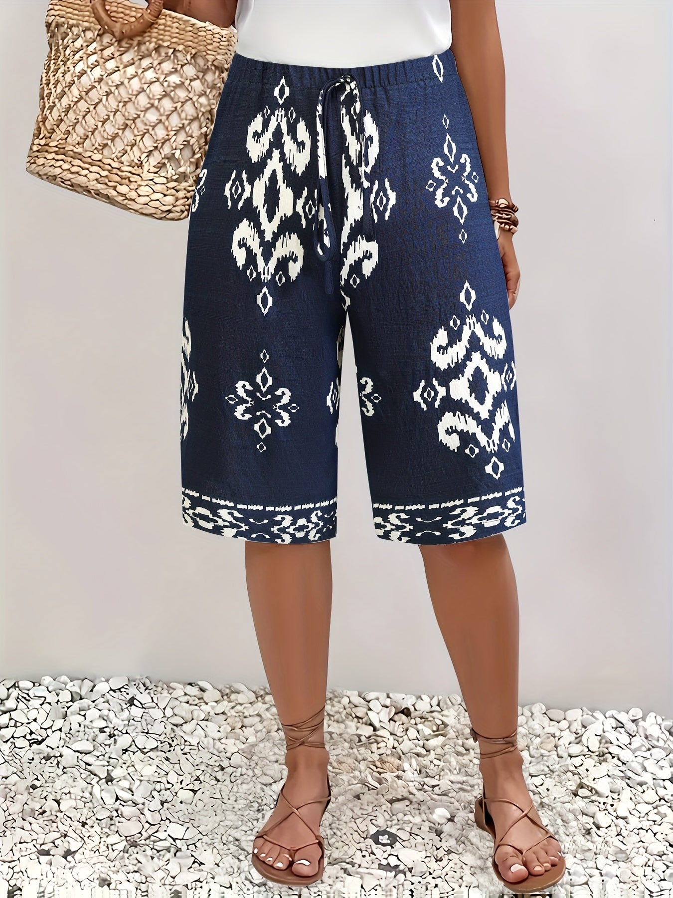 Широкие женские шорты макси с цветочным принтом Navy White, повседневные, летние, для пляжного отдыха