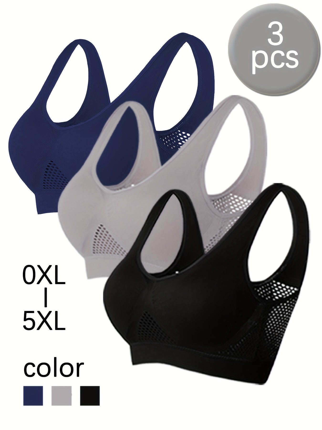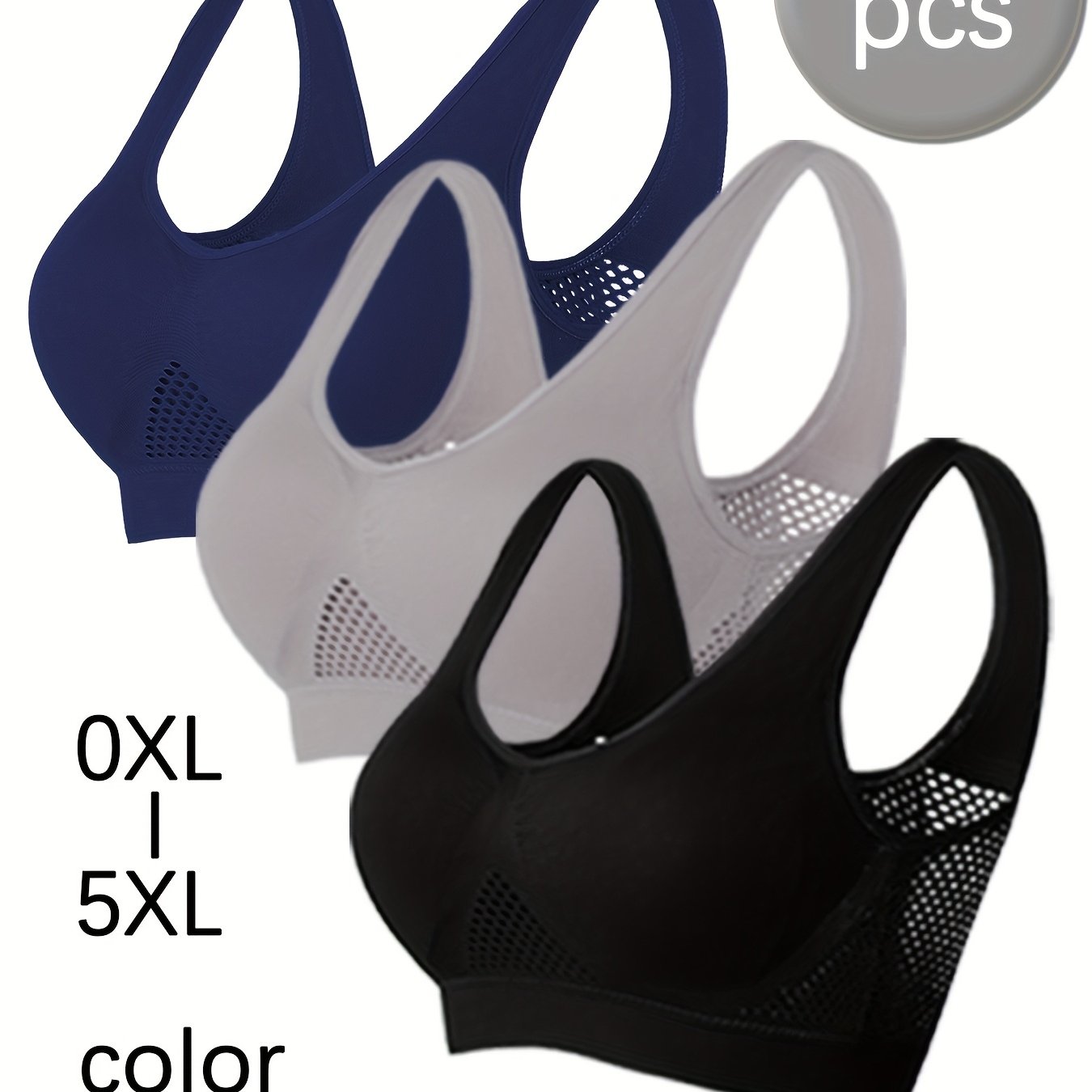 Комплект спортивных топов-бра с мягкой сеткой для полных женщин