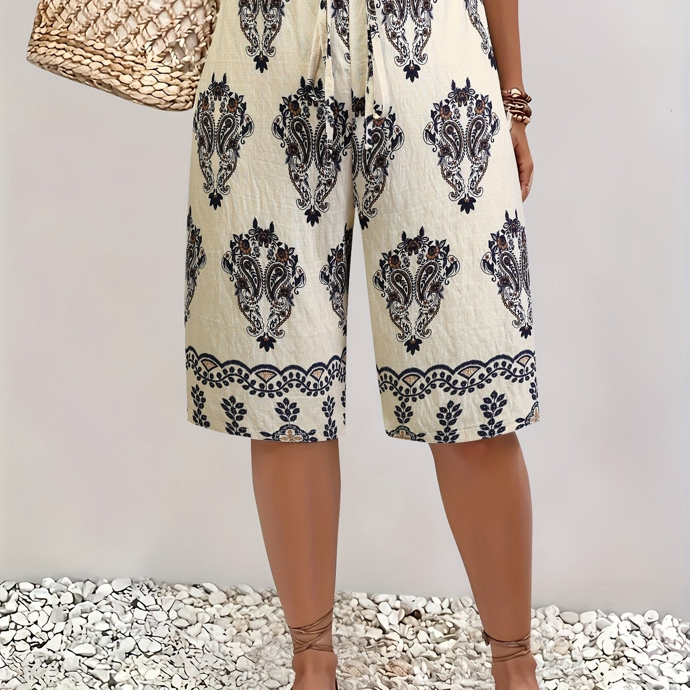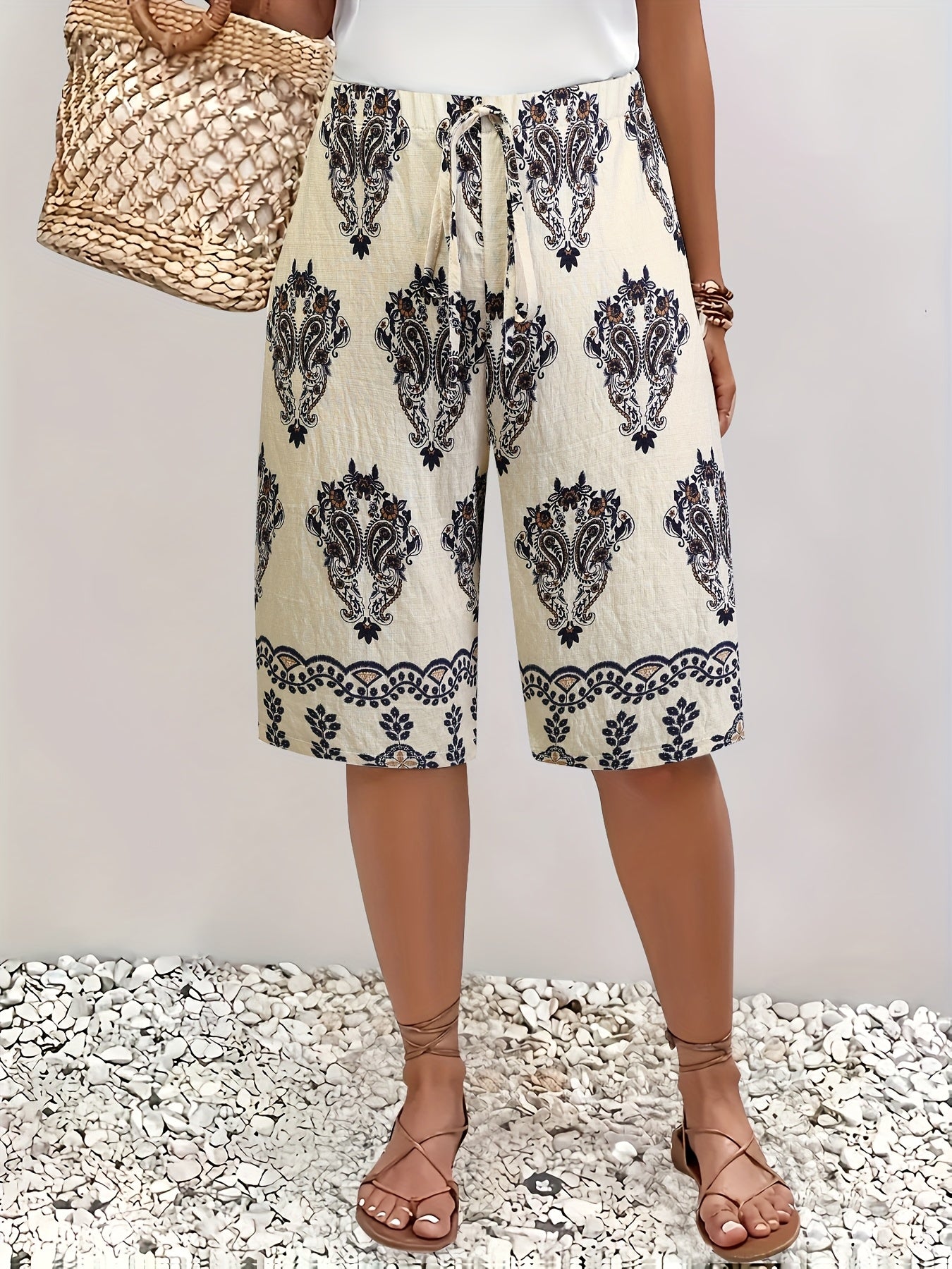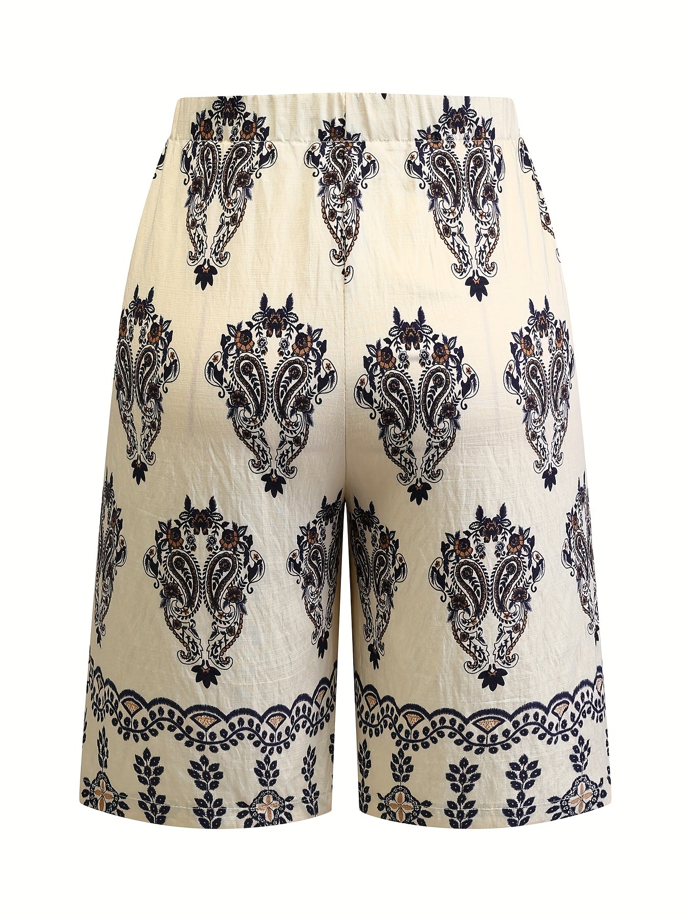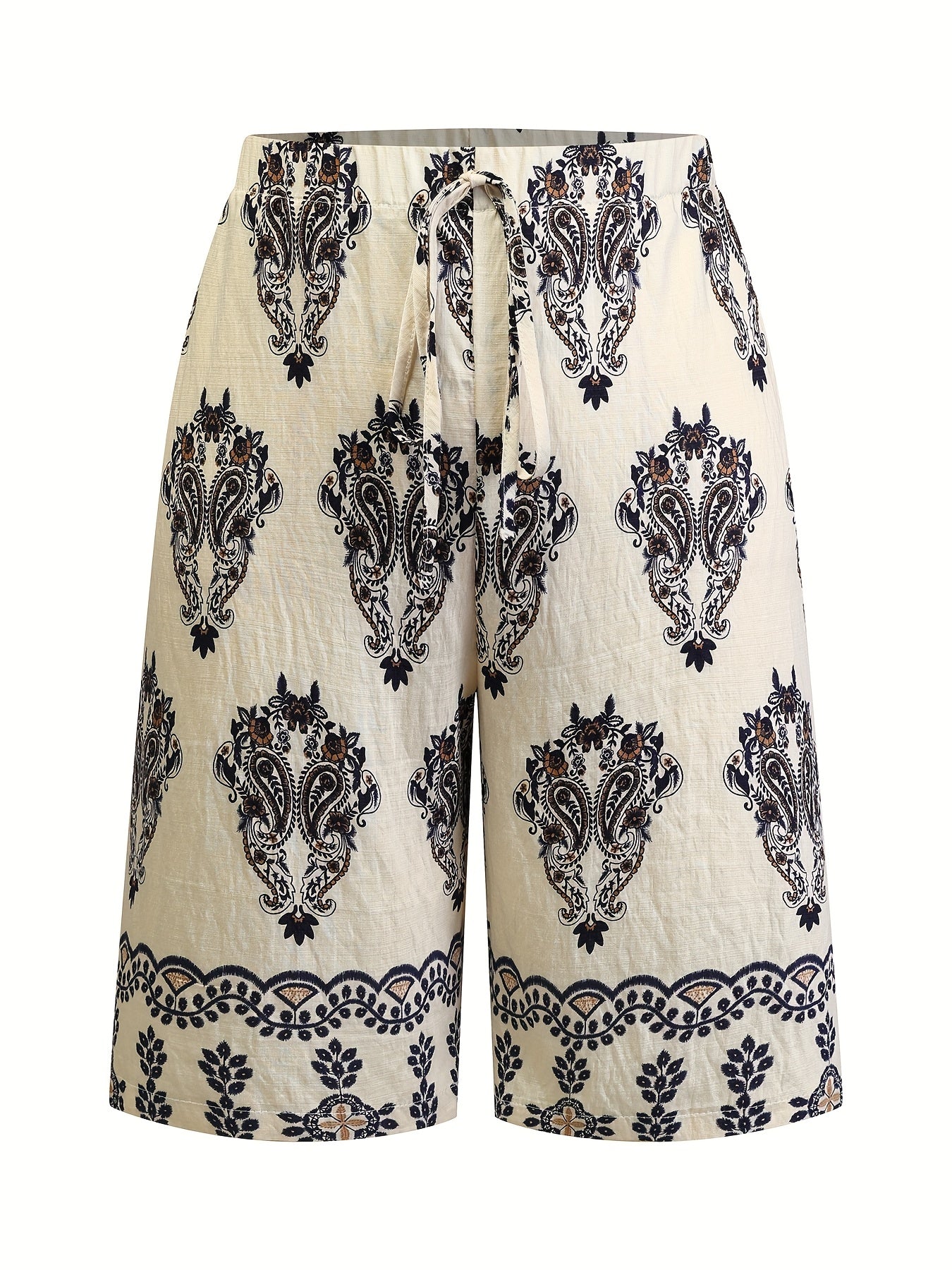 Бермуды для женщин больших размеров с принтом, повседневный стиль для отпуска, ткань без растяжения