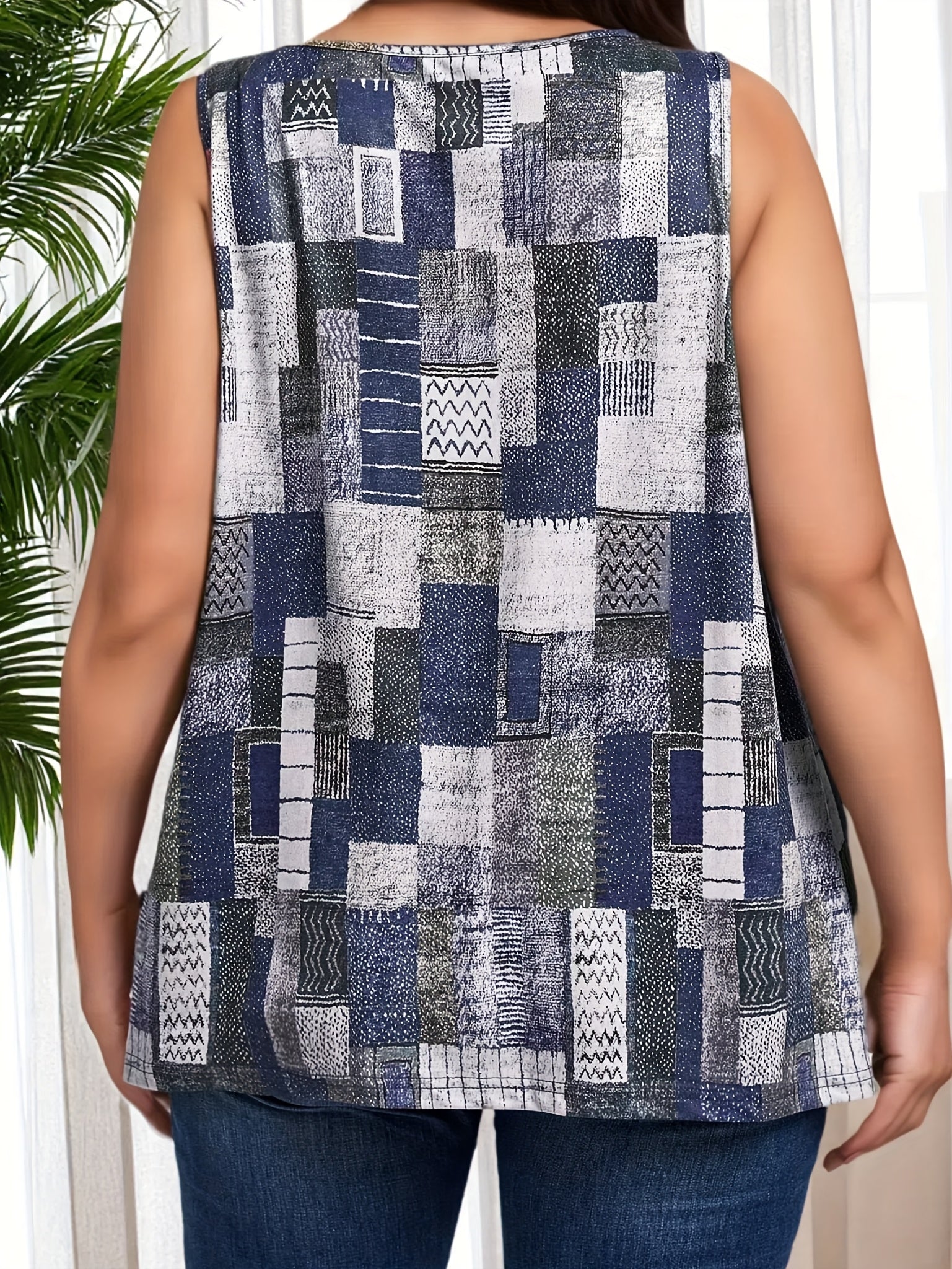 Топ без рукавов для женщин больших размеров с пэчворком и эластичной тканью, синий и белый в клетку
