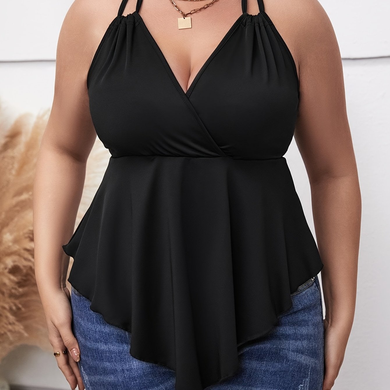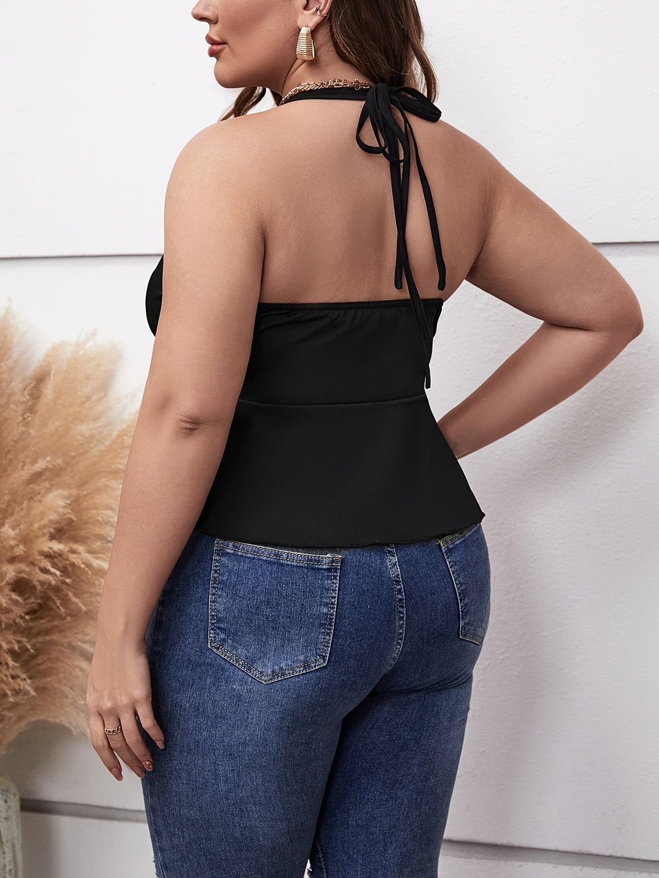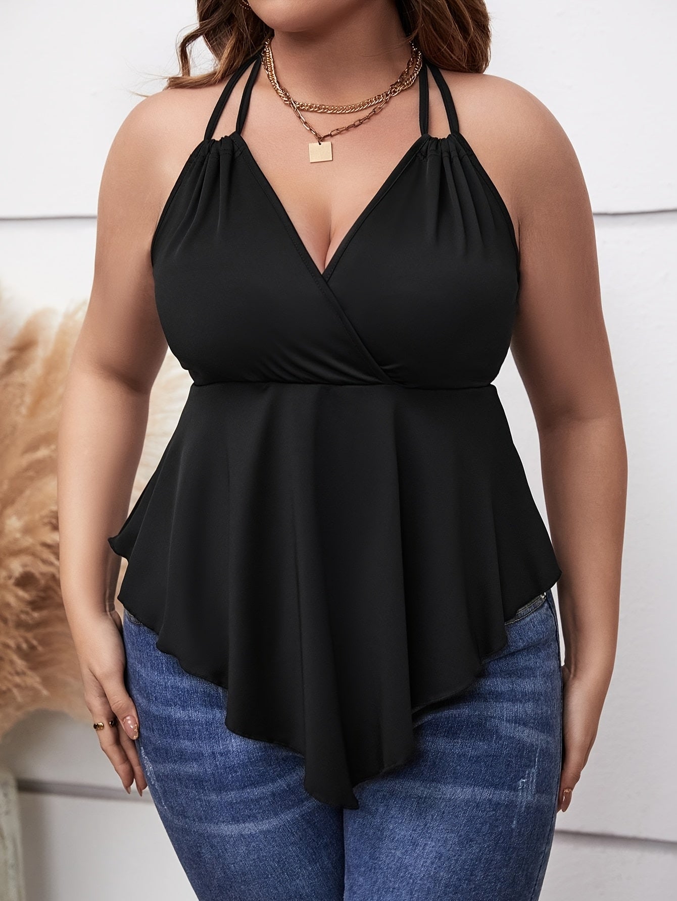 Топ без рукавов для женщин больших размеров на лето с завязками и сборчатым лифом