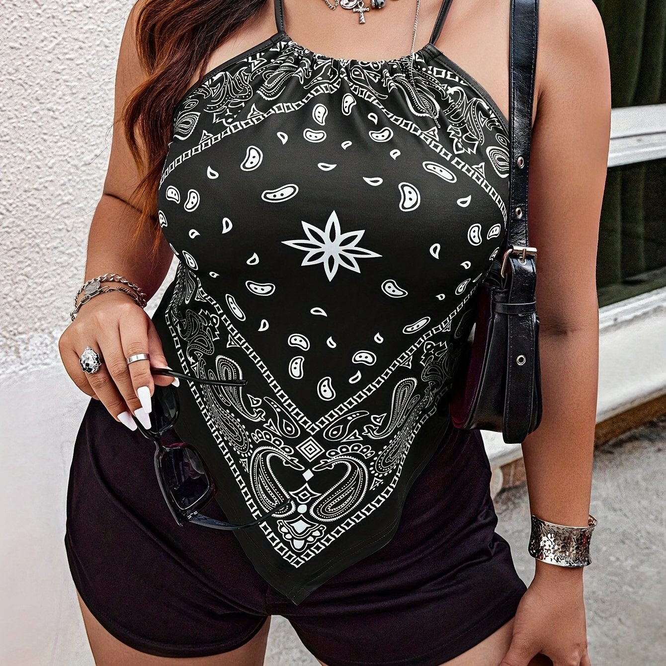 Топ без рукавов для женщин больших размеров черный и белый пейсли летний повседневный