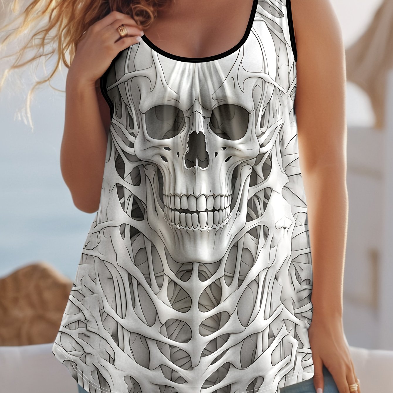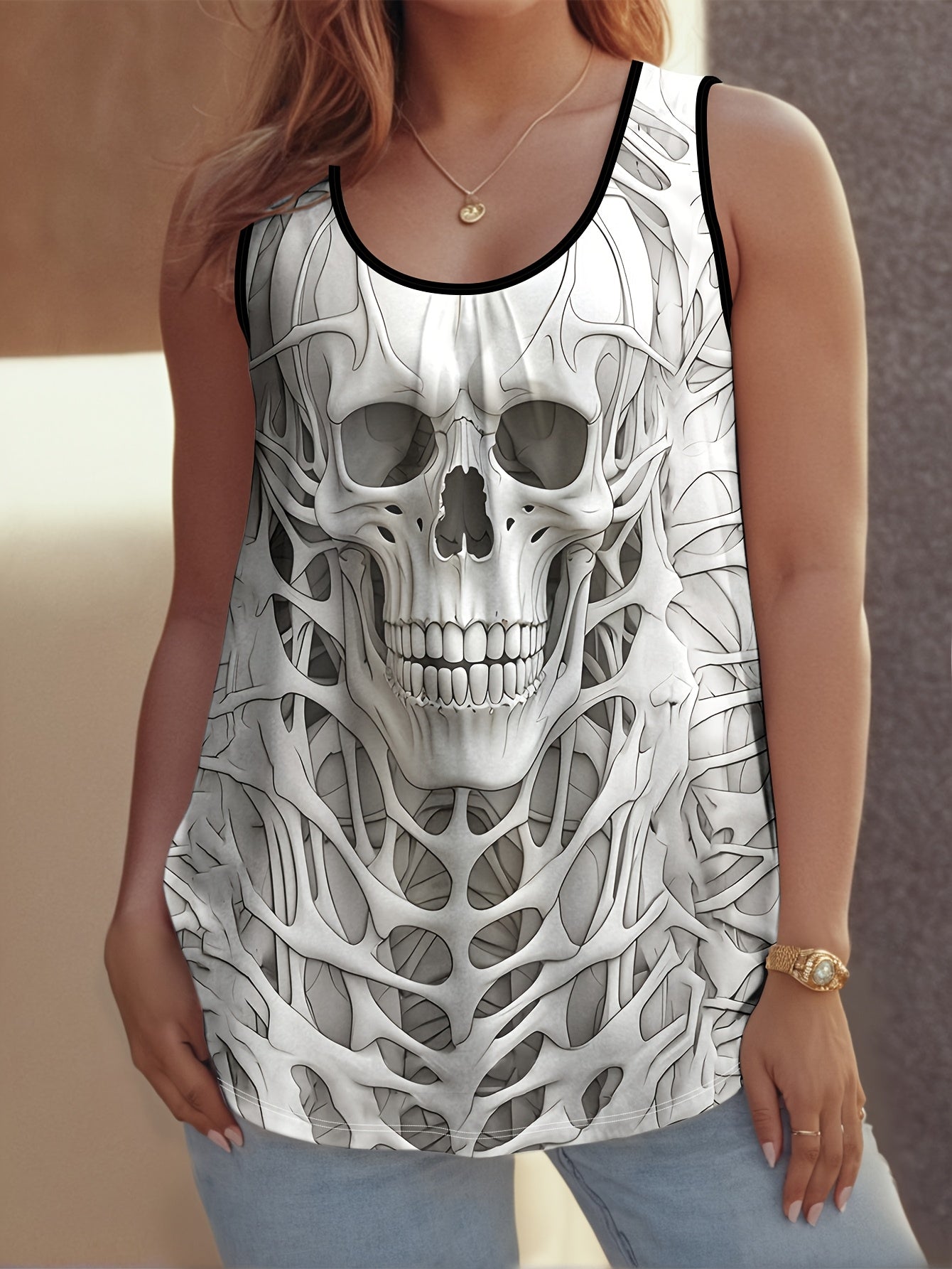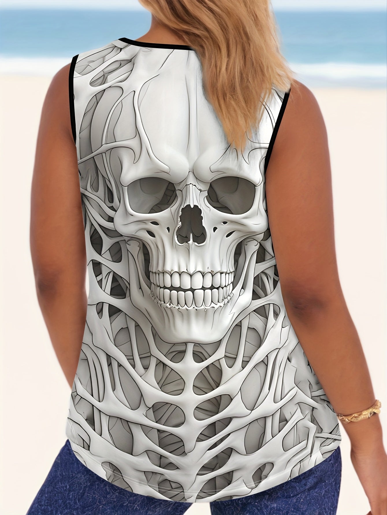 Топ без рукавов для женщин больших размеров, дышащий из полиэстера, с принтом черепа и цветов, летняя пляжная одежда