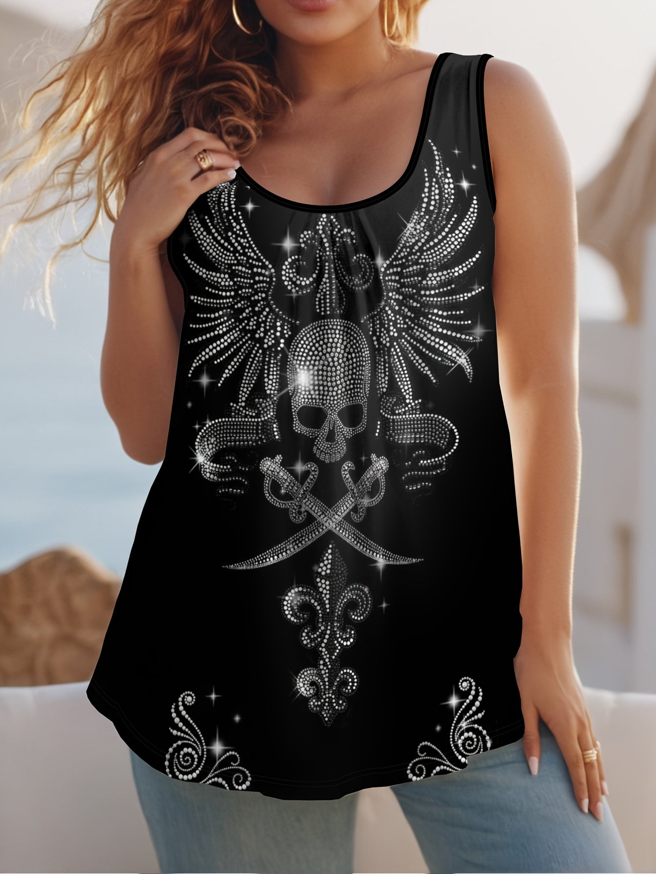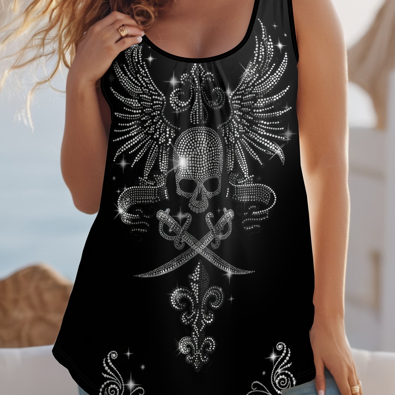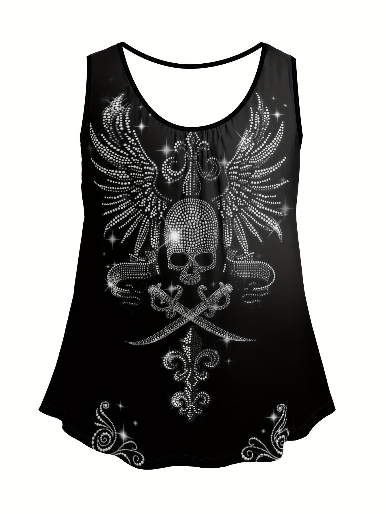 Топ без рукавов для женщин больших размеров из полиэстера с 3D-принтом черепа, летний жилет