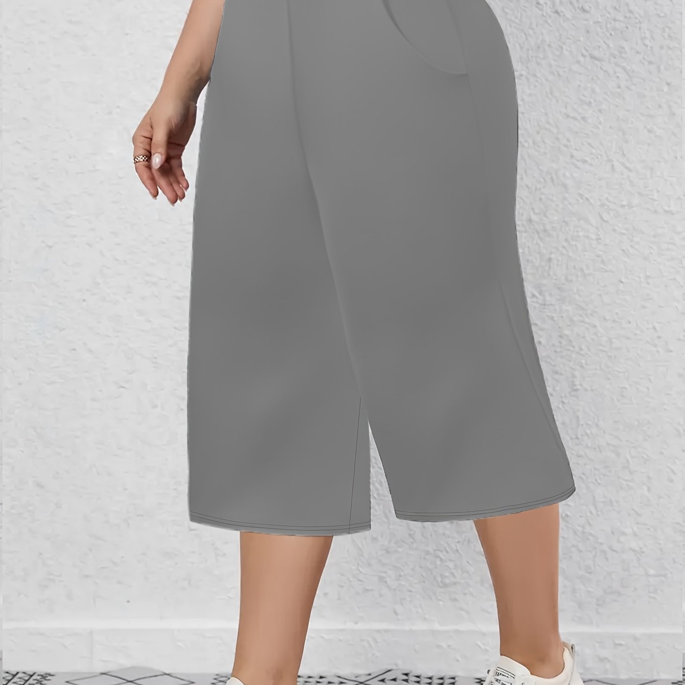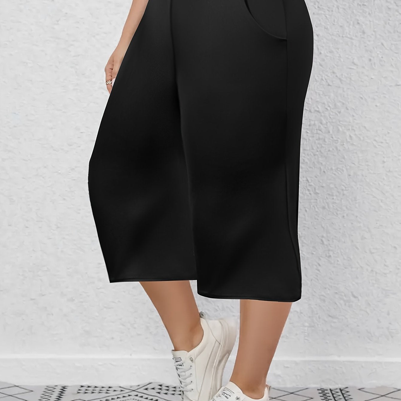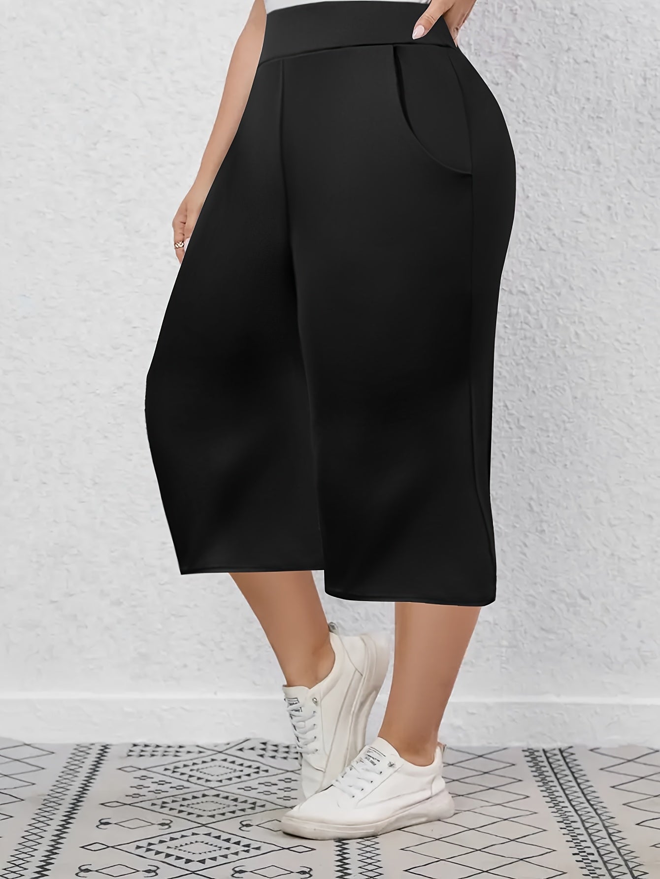 Капри для женщин больших размеров с эластичной тканью, однотонные, повседневные, средней посадкой, с карманами
