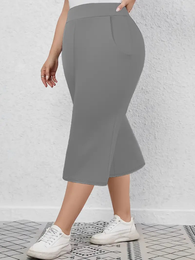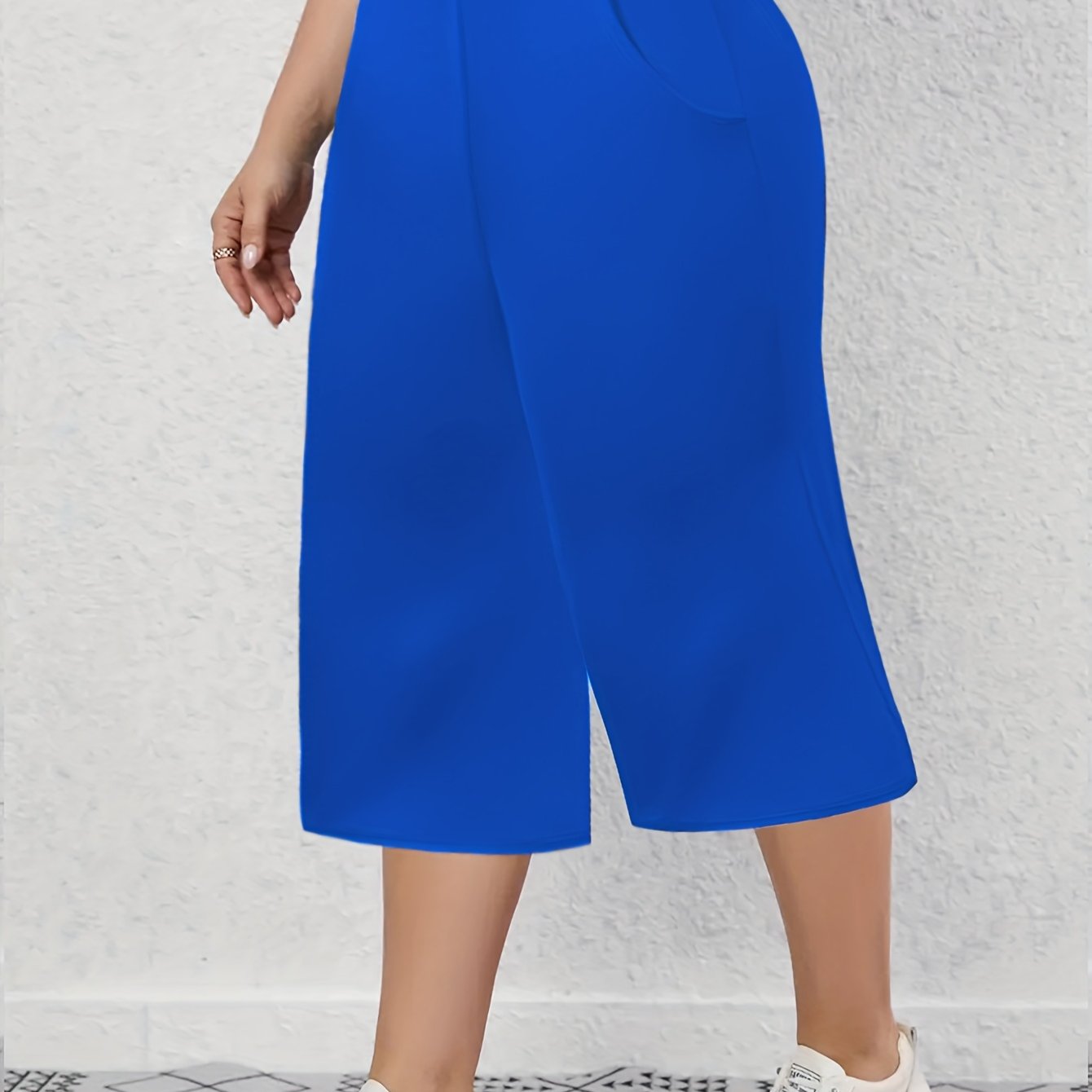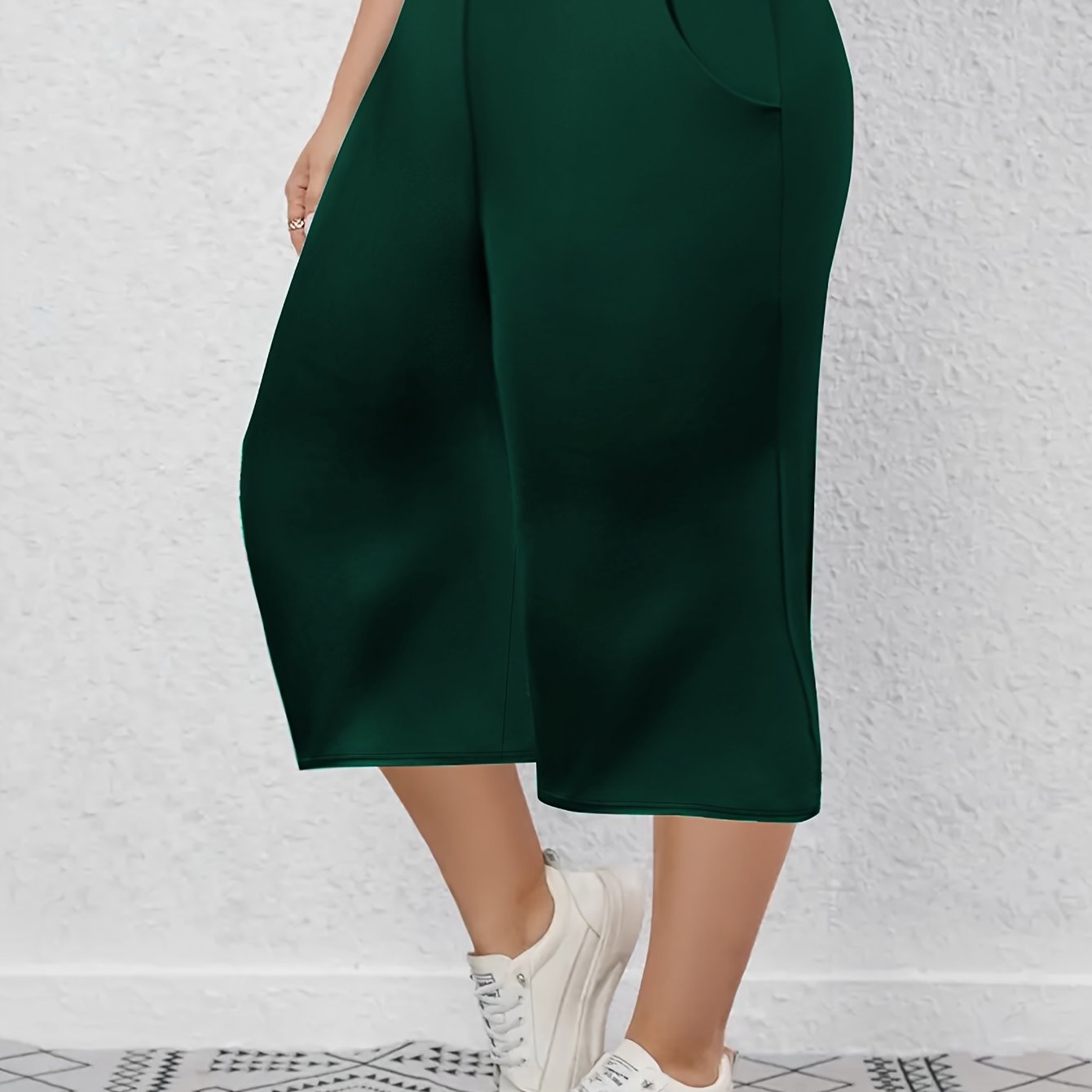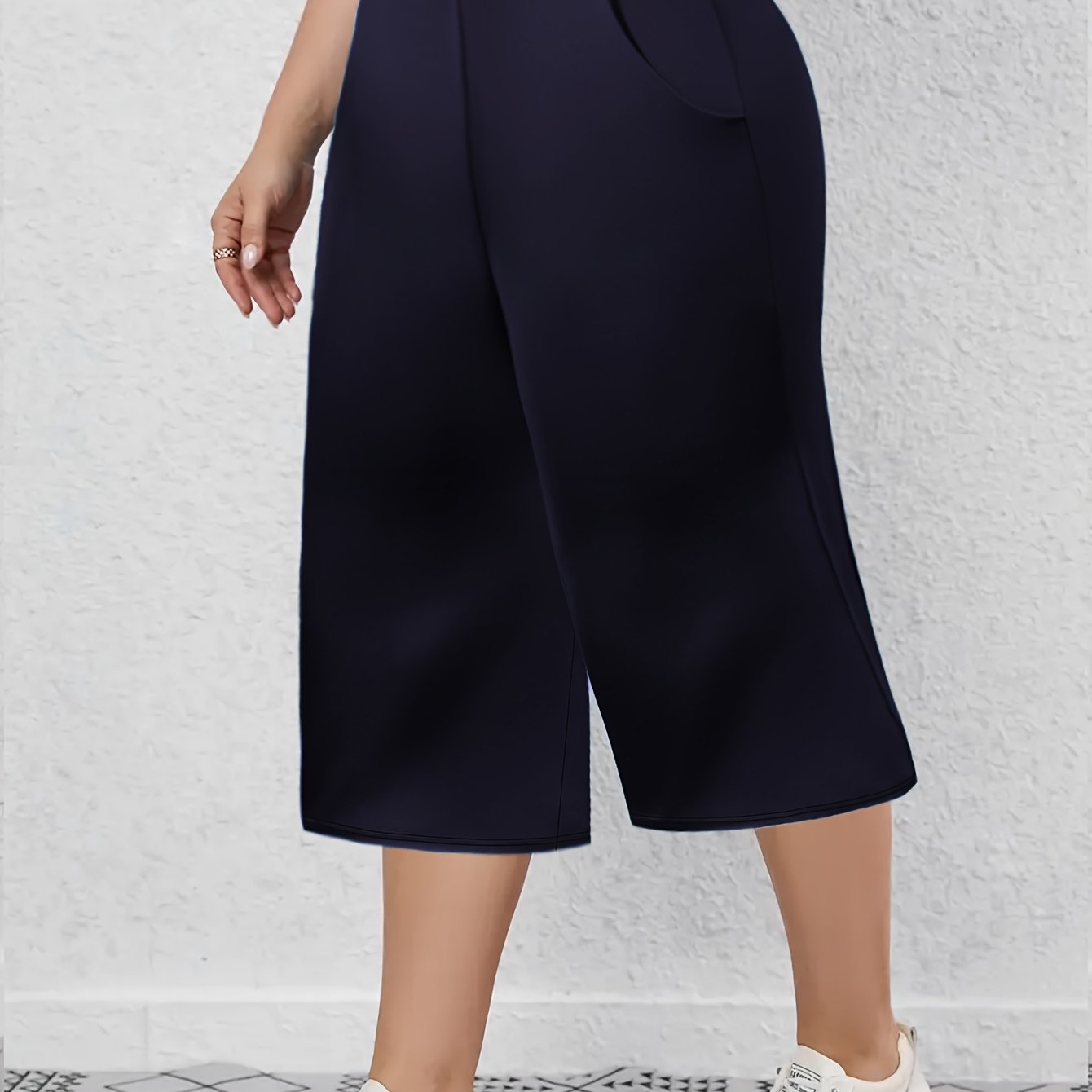 Капри для женщин больших размеров с эластичной тканью, однотонные, повседневные, средней посадкой, с карманами