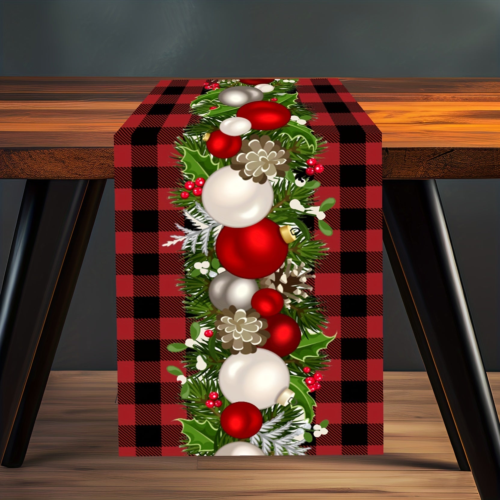 Полиэстеровая скатерть для стола "С Рождеством" в красно-черной клетке для праздничного декора и подарков