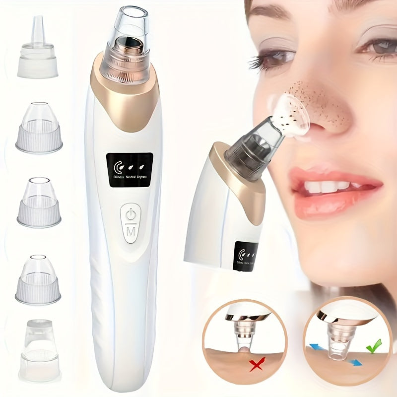 Вакуумный очиститель пор лица с 3 уровнями всасывания и 5 насадками, перезаряжаемый через USB