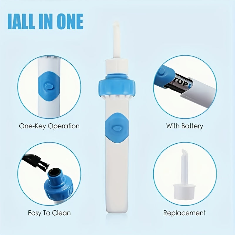 Портативное электрическое устройство для удаления ушной серы с мягким наконечником и всасывающим устройством, работащее на батарейках