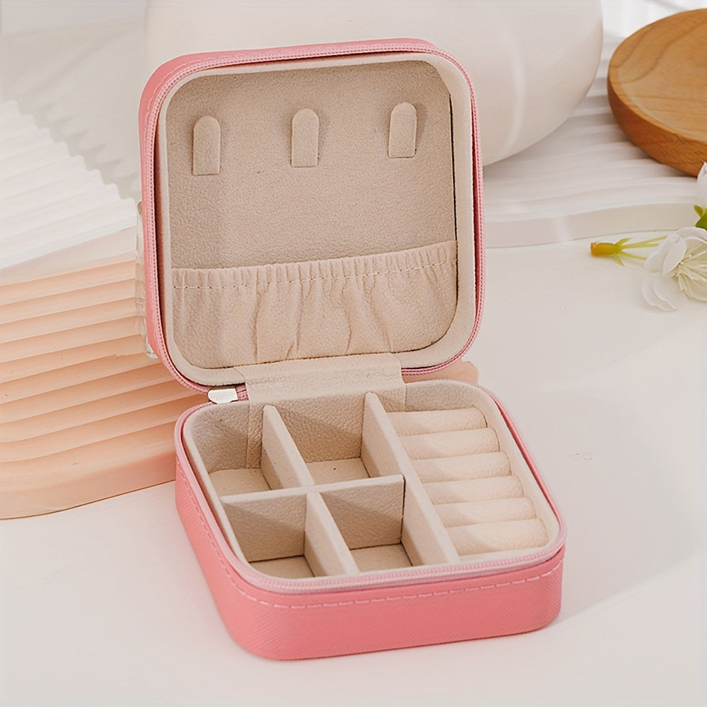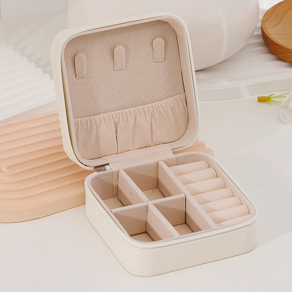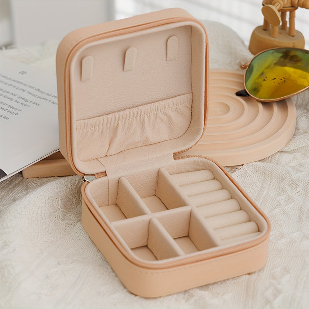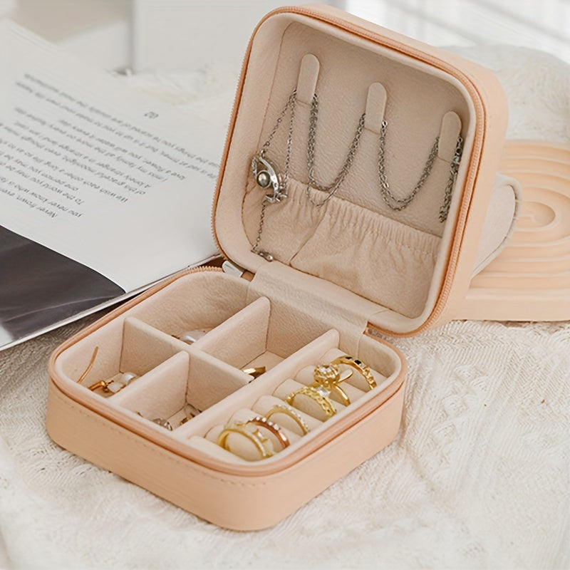 Портативный органайзер для украшений из искусственной кожи с застежкой-молнией, компактный дорожный кейс для колец, серег и ожерелий