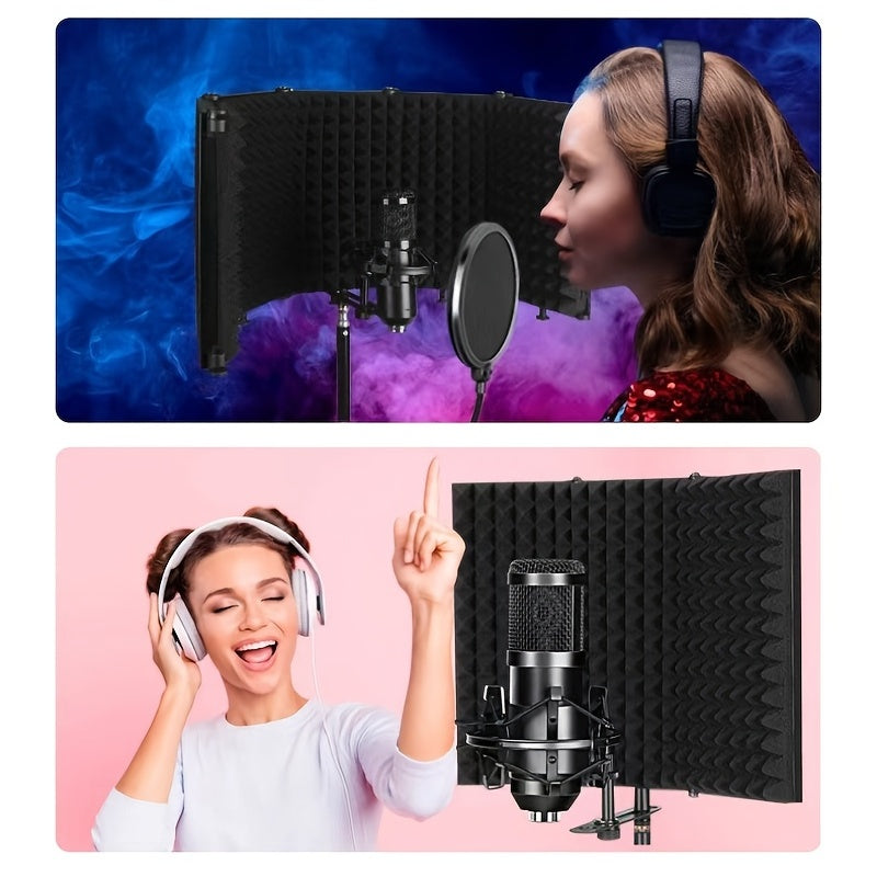 Портативная студия для записи пения с ветрозащитными, звукопоглощающими и шумоподавляющими функциями. Включает профессиональный микрофонный чехол и складной звукопоглощающий экран. Идеально подходит для Ид.