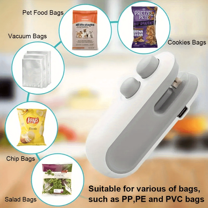 Портативный машинка для запечатывания продуктов с Cutter, перезаряжаемый USB, литиевая батарея 150 мАч