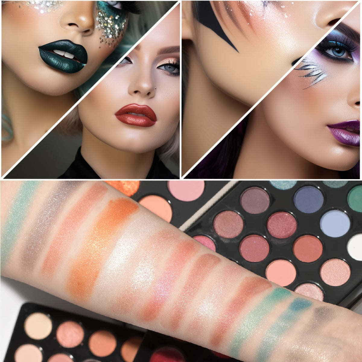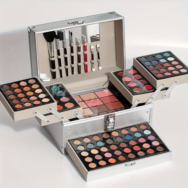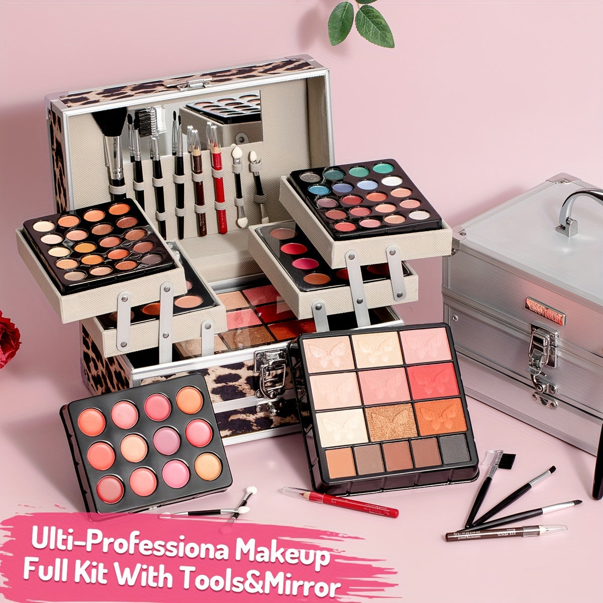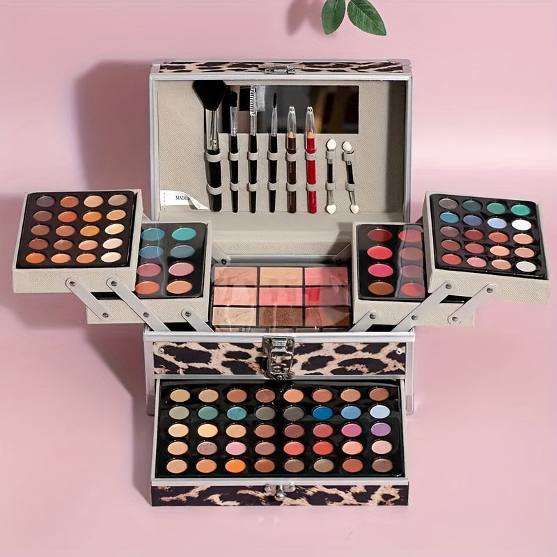 Портативный дорожный набор косметики для лица с леопардовым принтом, матовым велюром, кремовой текстурой, с высоким блеском и блестками. Включает румяна, тени для век, контур и