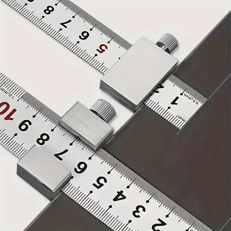 Прецизионный угольник из углеродной стали с локатором из алюминиевого сплава и разметочной шкалой для точного измерения.