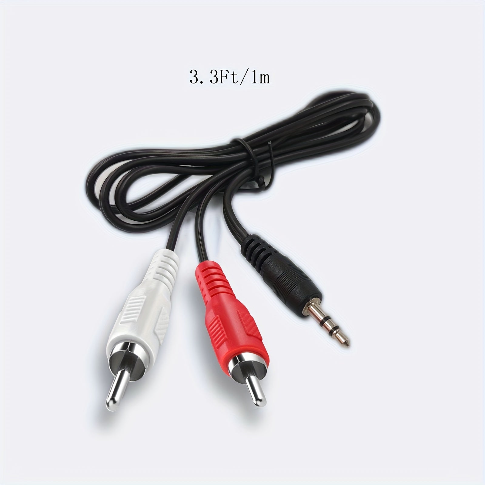 3.3фт Черный плоский аудиокабель 3,5 мм стерео к двойному RCA для домашнего кинотеатра и MP3-плееров