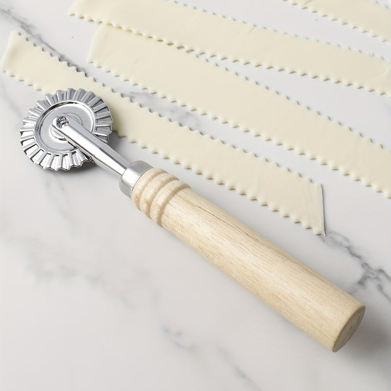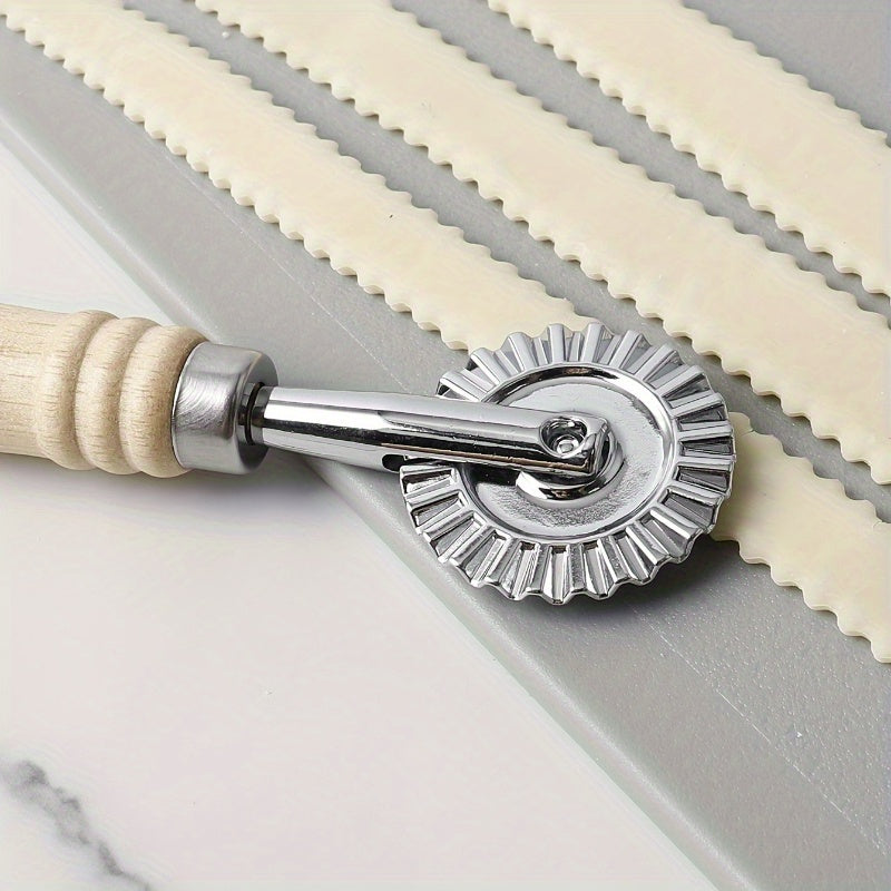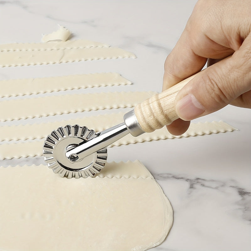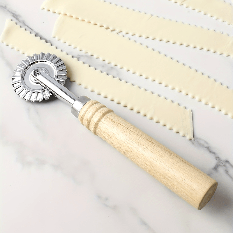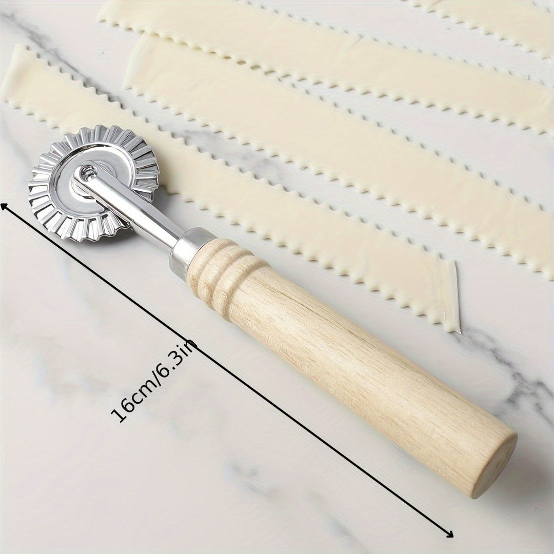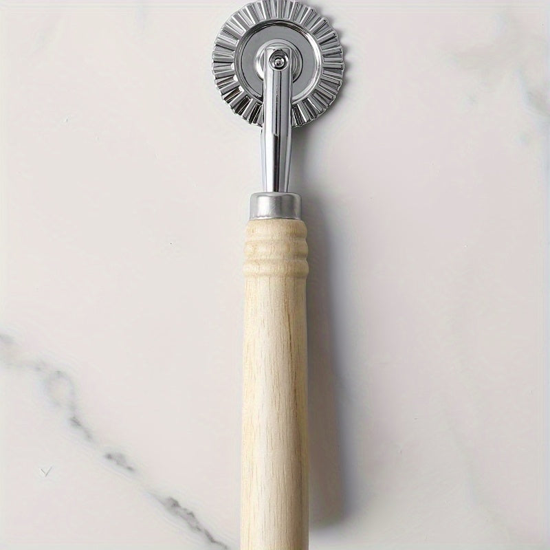 Премиум резак для пасты и равиоли с длинной деревянной ручкой, изготовленный из прочного цинкового сплава с полированной металлической отделкой, безопасен для использования в домашней кухне.