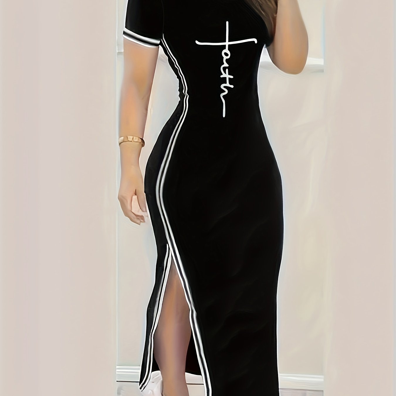 Печатное платье с круглым вырезом и открытыми боками, идеально подходящее для весны и лета.