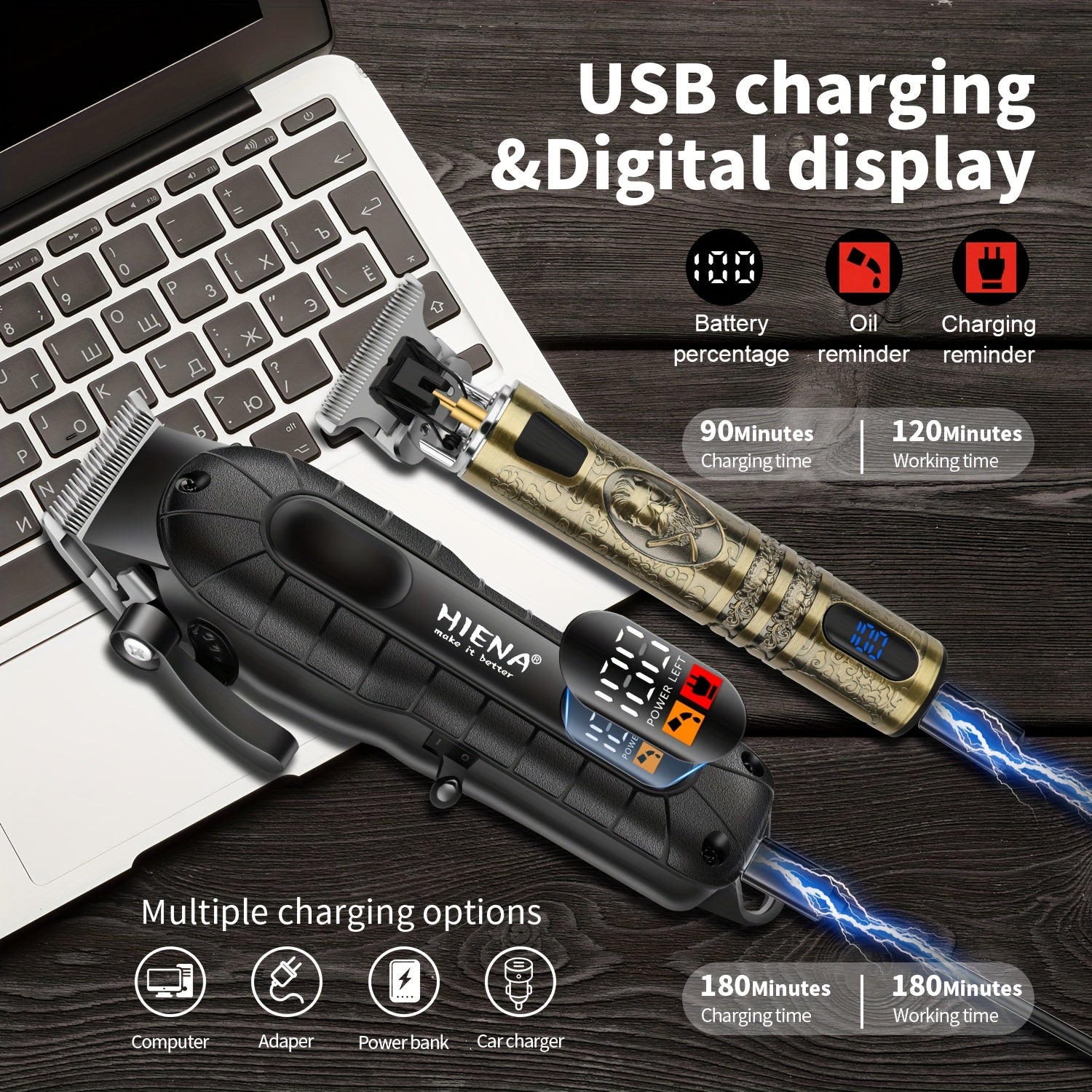 Беспроводной набор для стрижки волос для мужчин, аккумуляторные машинки и триммеры, LED-дисплей