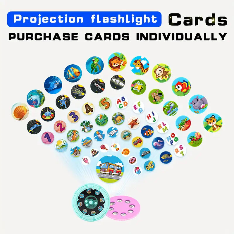 Проекционные фонарики: Для фонарей 3,2 см, 18 карточек с 144 узорами для детей от 3 лет и старше. Дизайны включают животных, транспортные средства, домашних животных, динозавров, океаны и птиц.