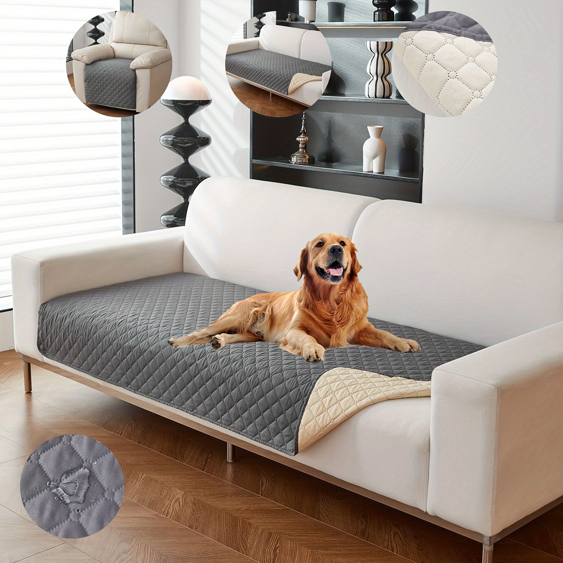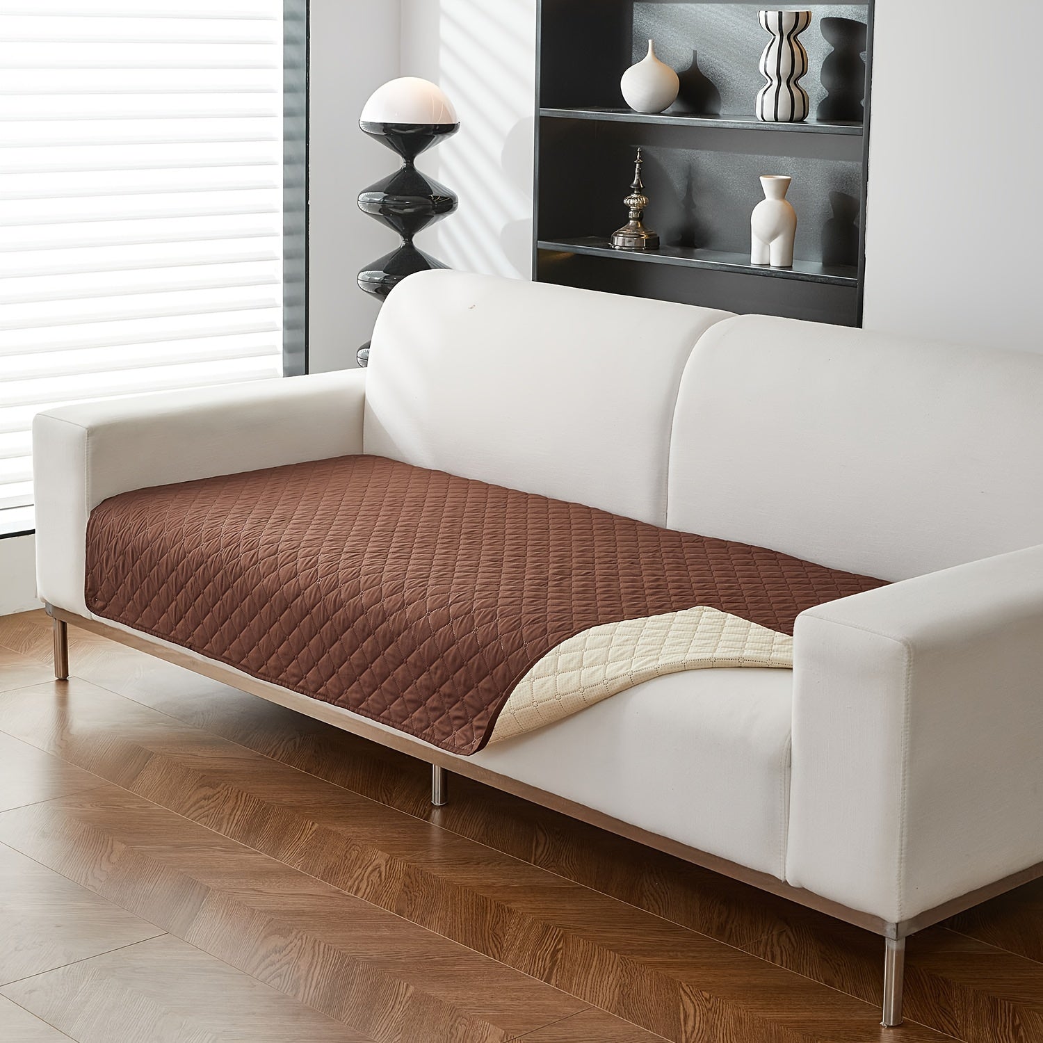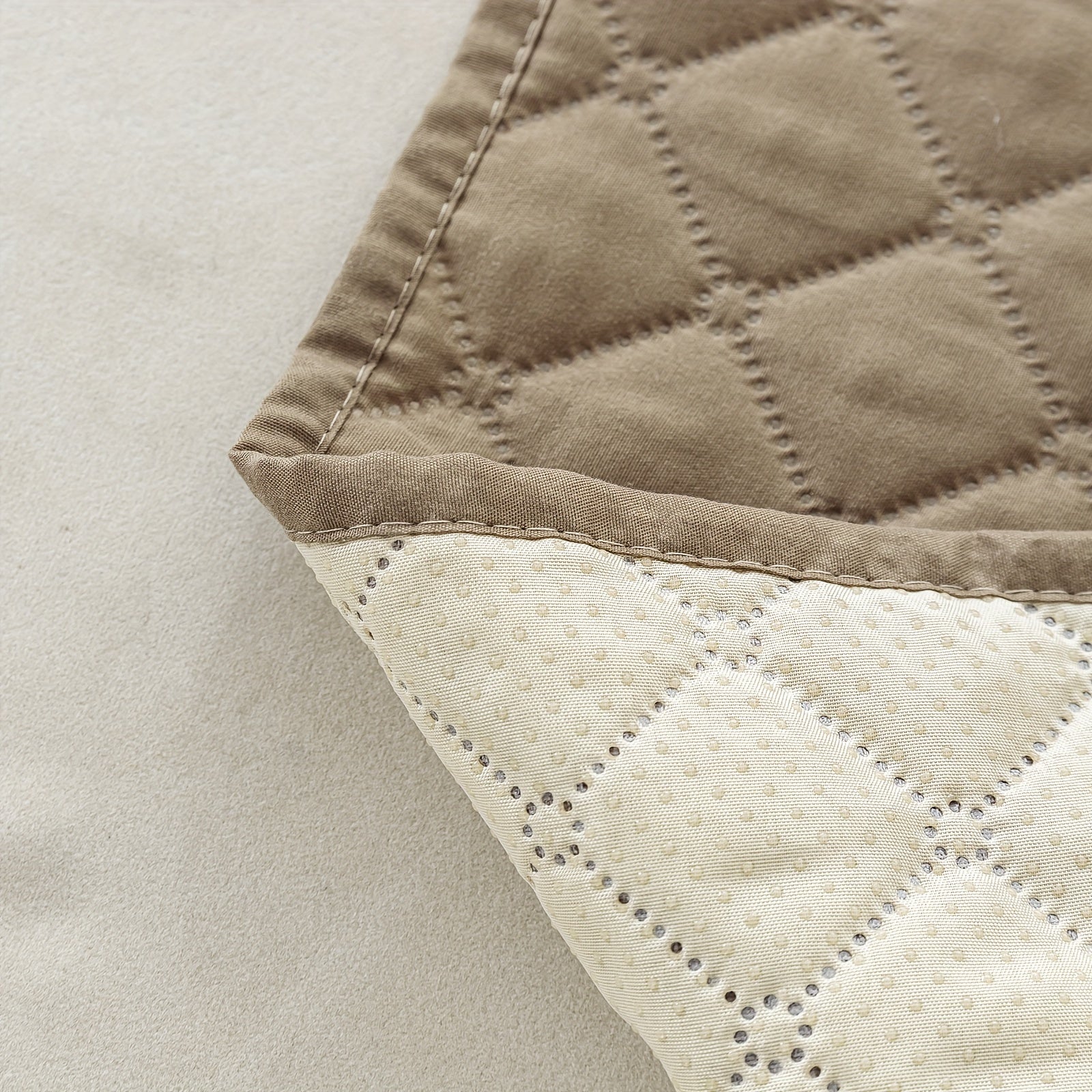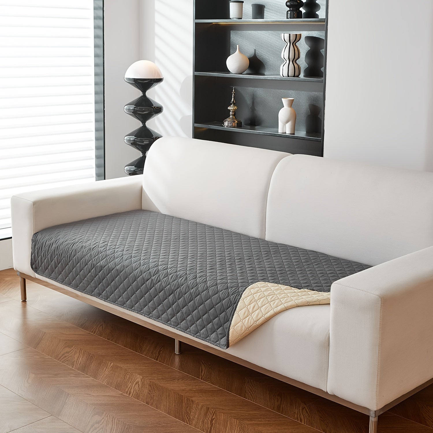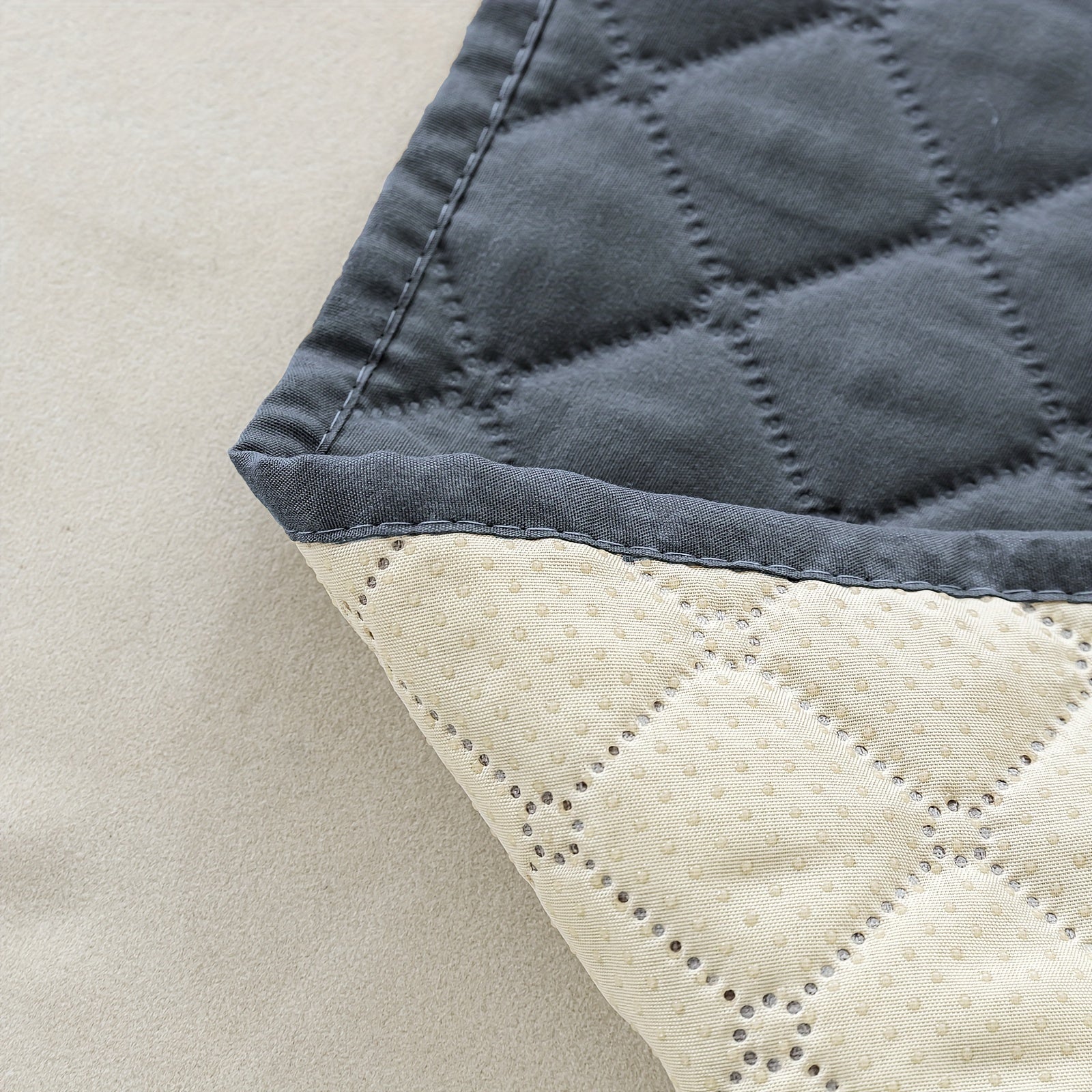 Коврик для дивана с стеганым узором в сером и белом цветах, с ромбовидной строчкой и технологией защиты от проливаний. Подходит для всех сезонов, подходит для диванов от одного до четырех мест. Машинная стирка для легкого ухода.