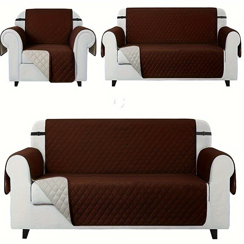 Квилтированный водоотталкивающий чехол для дивана коричневого и белого цвета, подходит для диванов на 1/2/3 места, washable с противоскользящими и эластичными ремнями, идеален для владельцев домашних животных, подходит для диванов в гостиной.