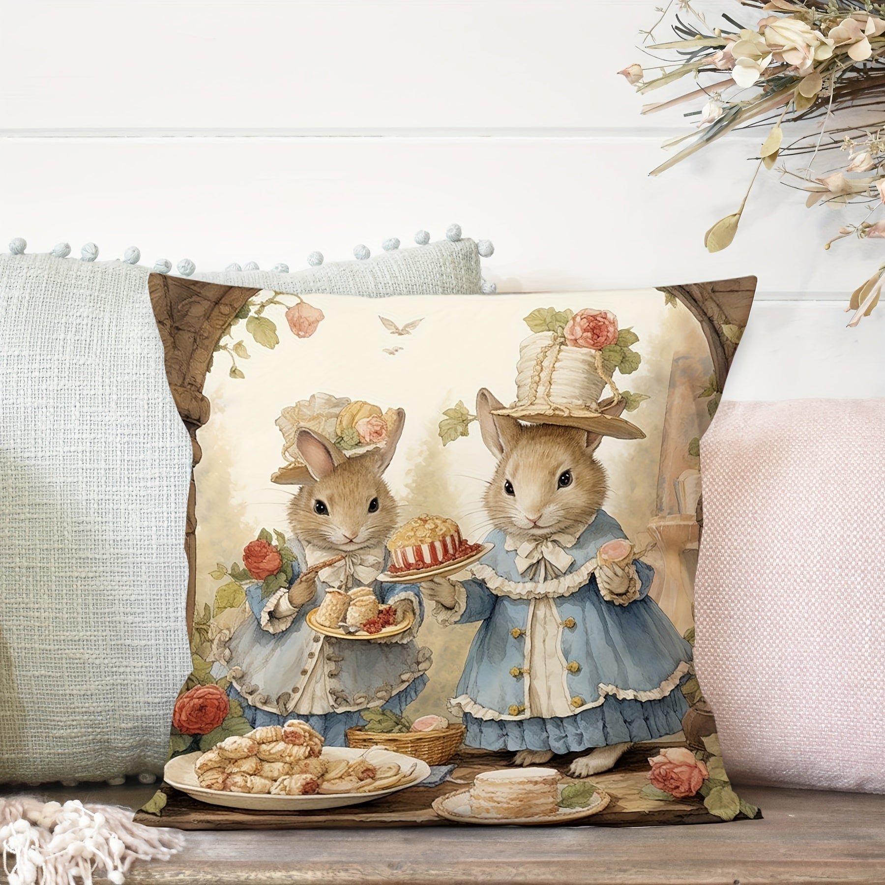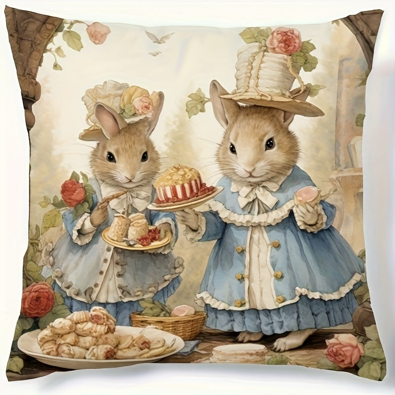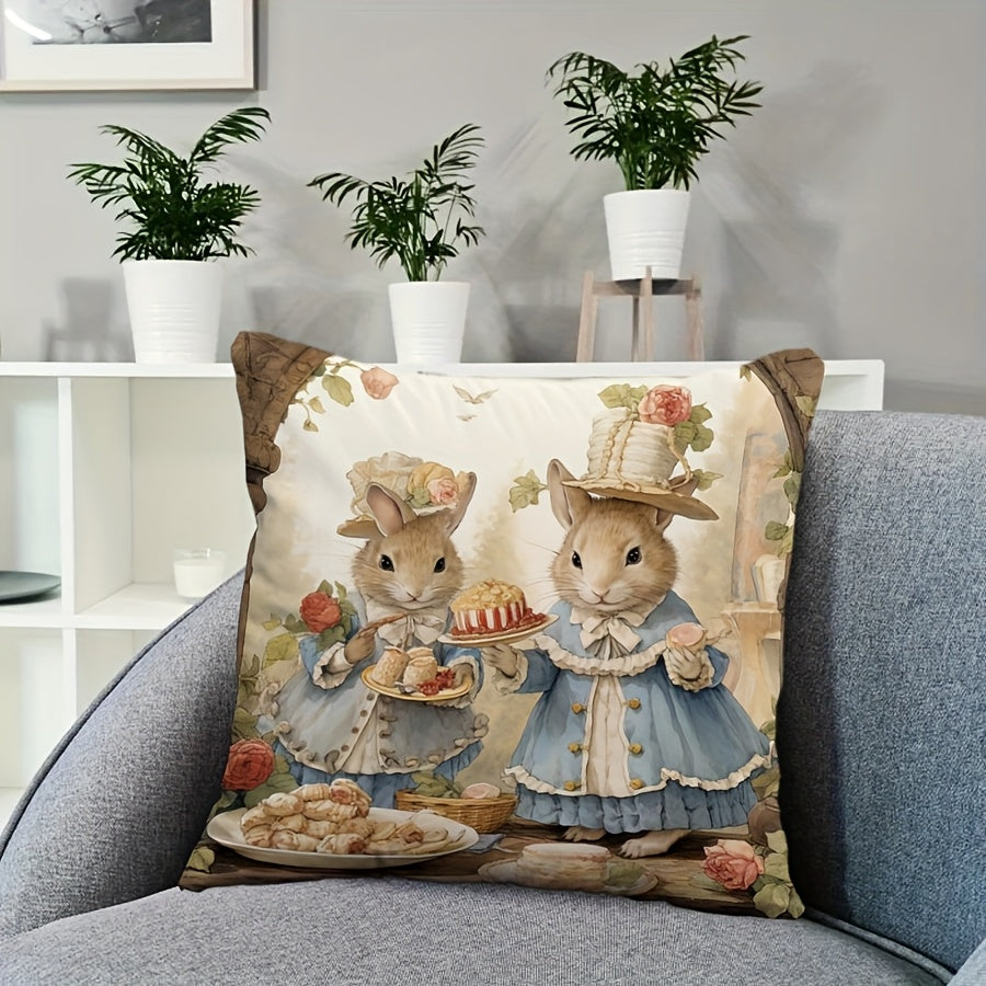 Наволочка для подушки с принтом кролика, изготовленная из мягкого полиэстера, с застежкой на молнии. Машинная стирка. Идеально подходит для декора дома и автомобиля. Подушка не включена.